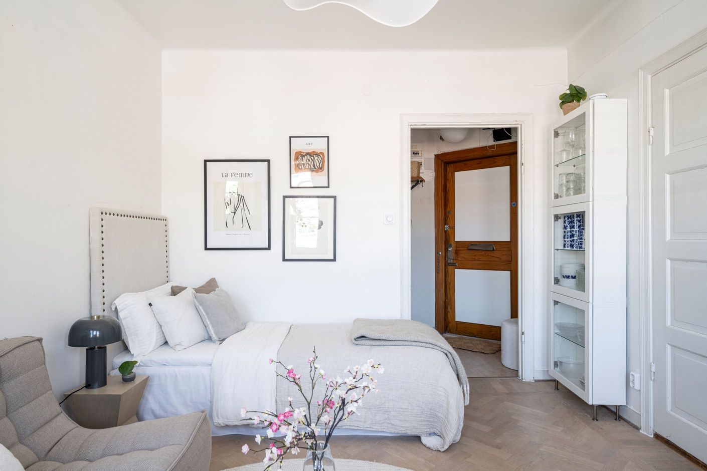 Låt oss presentera denna charmiga och väldisponerade etta belägen i vacker fastighet byggd i 20-talsklassicism. En etta i viss renoveringsbehov med originalcharmen bevarad och vacker parkett som pryder golven. Denna charmiga etta erbjuder en välplanerad planlösning med ett luftigt allrum med stort fönsterparti och där det ger plats för både säng, tv-möbel samt matbord. Kokvrå i anslutning till allrummet med fönster och tidstypiska kökskåp. Helkaklat badrum med duschhörna samt en rymlig hall och garderob med gott om förvaringsmöjligheter.