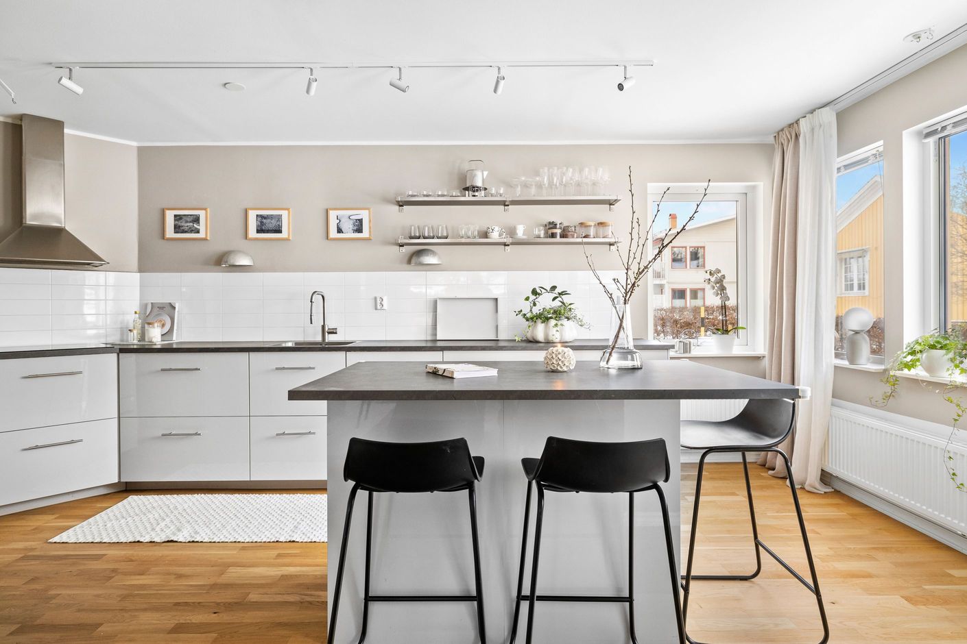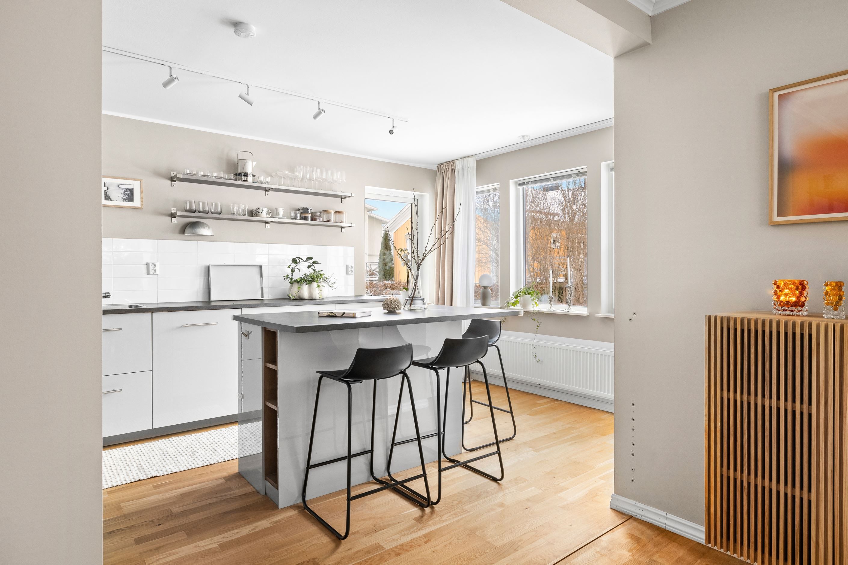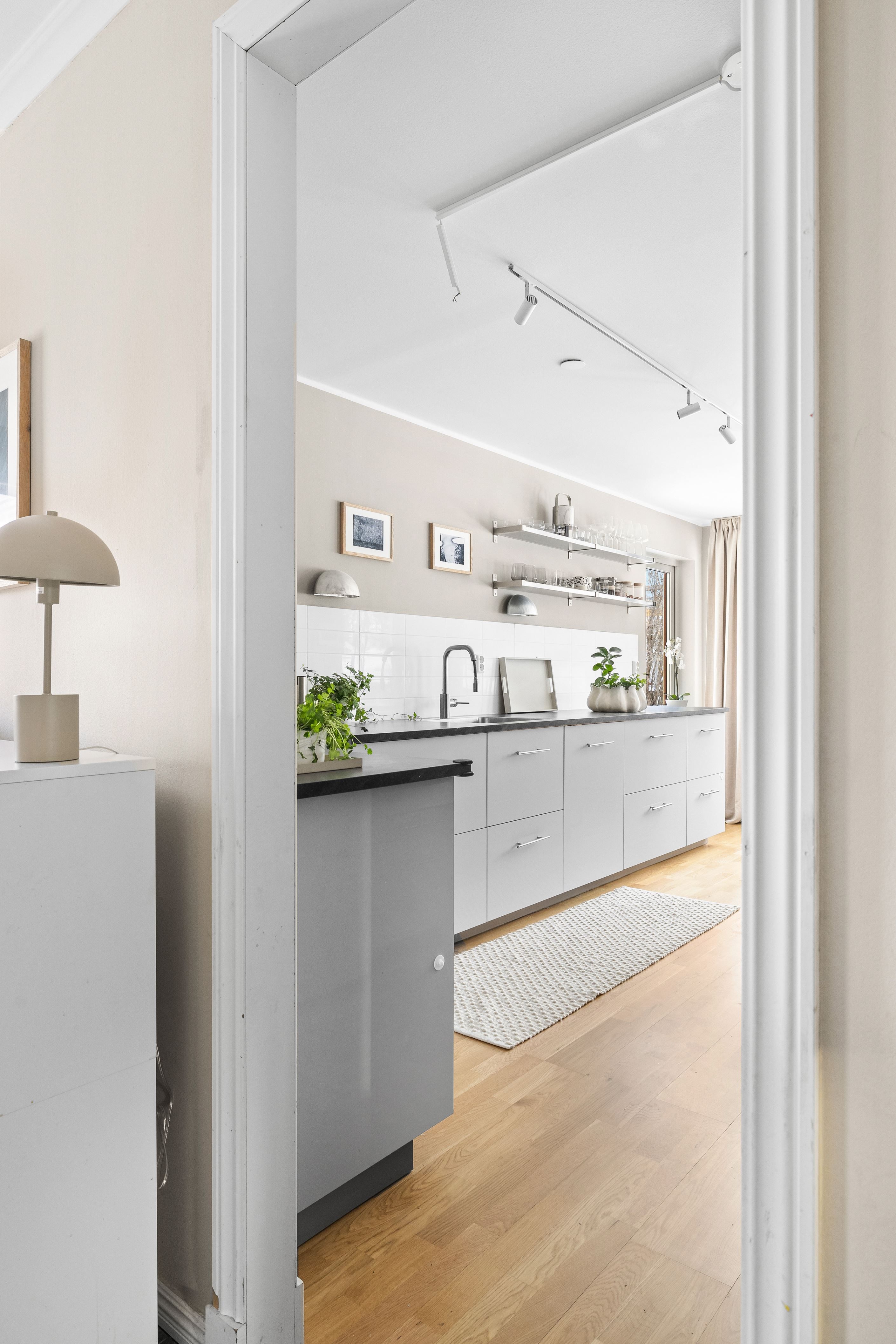 Tillfälle att förvärva denna välskötta lägenhet med med ljusa fräscha färgsättningar i fullständig harmoni. Nytt kök från -21 inkl. vitvaror bortsett från dubbla enheter kyl/frys från -24. Stort badrum & duschrum med helkaklade väggar, golvklinker med värmegolv, badkar och separat duschhörna, ny tvättmaskin och torktumlare från -22.. Genomgående ekparkettgolv som är slipbara.