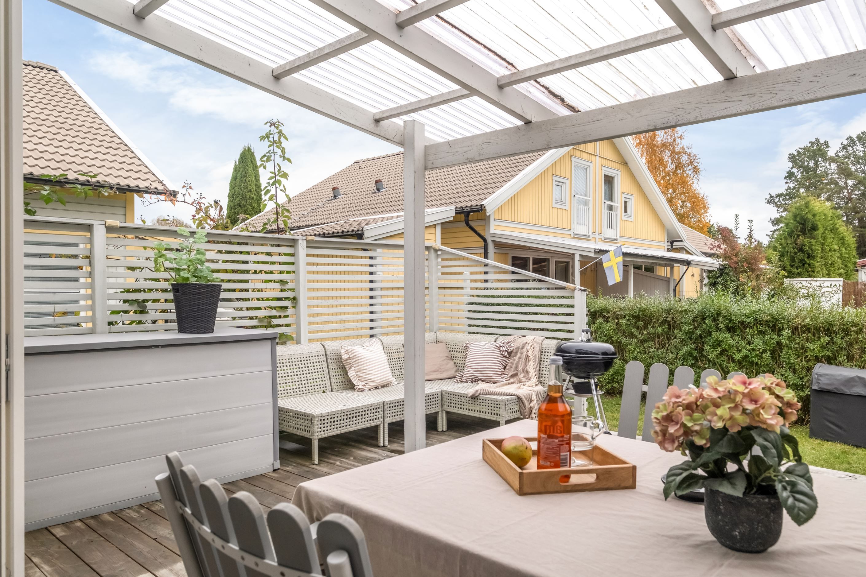 Nu är det dags för detta unika parhus med fantastisk tomt och grönskande trädgård att byta ägare. Baksidan, dom två stora altanerna, gräsmatta och läget är en av dom bästa i området. Vallvägens och Hagvägen gemytliga parhus inbjuder till ett liv i stillhet med lugnet som omringar dig. Här parkerar du bilen på din egen uppfart, som faktiskt rymmer två st bilar, efter en lång arbetsdag och känner lugnet infinna sig. Väl hemma är det rimligt att tro att middagen grillas på den mysiga baksidan och sen serveras vid matbordet under markisen.