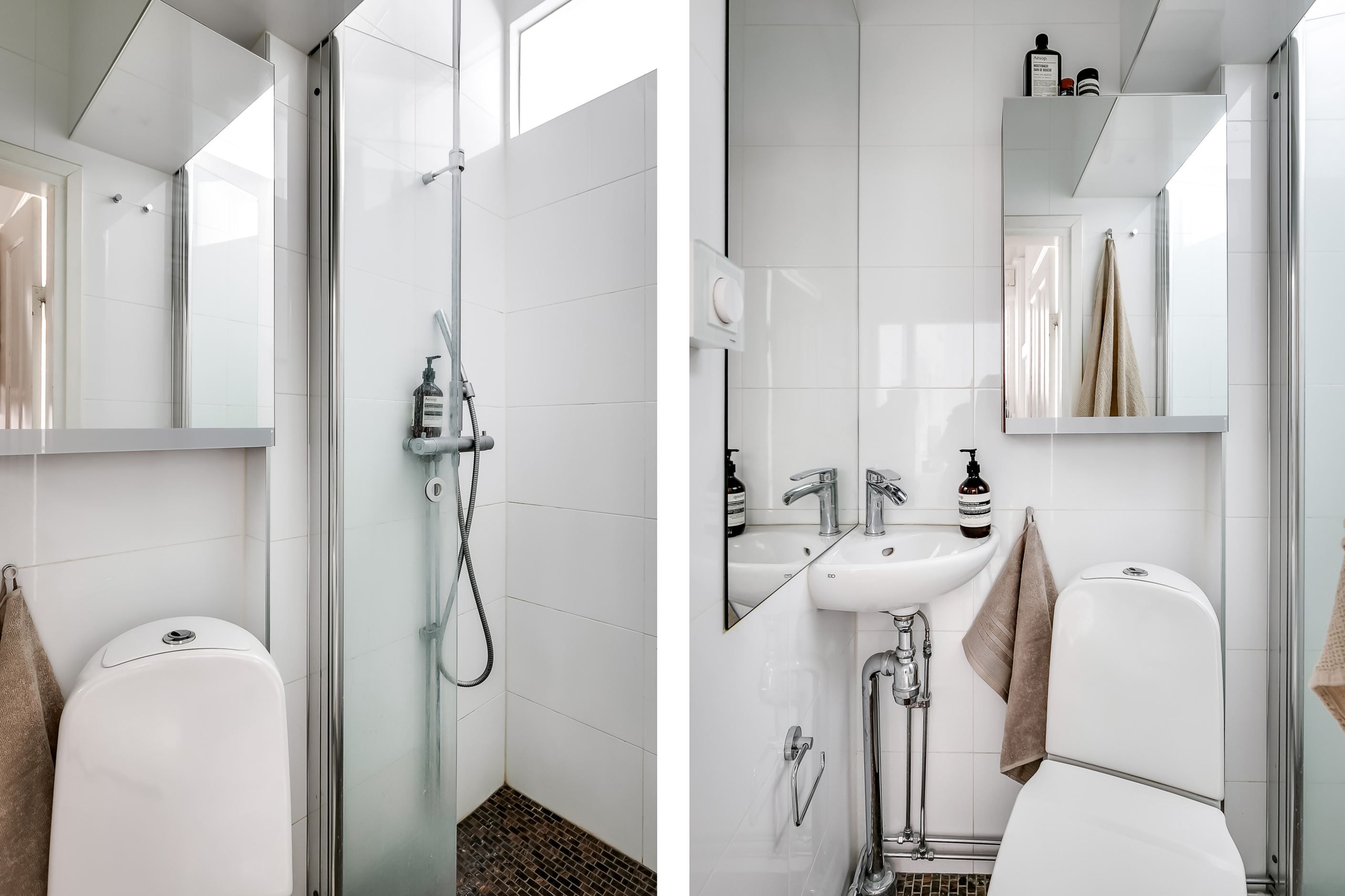 Det stilrena och fullutrustade köket ligger i öppen anslutning till vardagsrummet – en perfekt yta för middagar, umgänge och sociala tillställningar. Sovrummet rymmer utan problem en bred säng och erbjuder goda förvaringsmöjligheter. Det helkaklade badrummet är smakfullt utformat och utrustat med dusch.