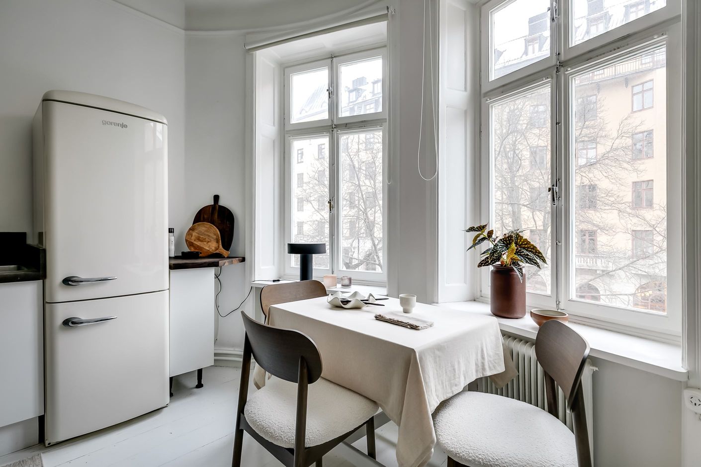 I ett av Vasastans allra mest eftertraktade kvarter väntar denna karaktärsstarka tvåa om 32 kvm – ett hem där sober elegans möter kaxig sekelskiftescharm. Med nära tre meters takhöjd och en öppen, luftig planlösning upplevs bostaden betydligt större än sina kvadratmeter och kan mäta sig med många lägenheter på 38–40 kvm.