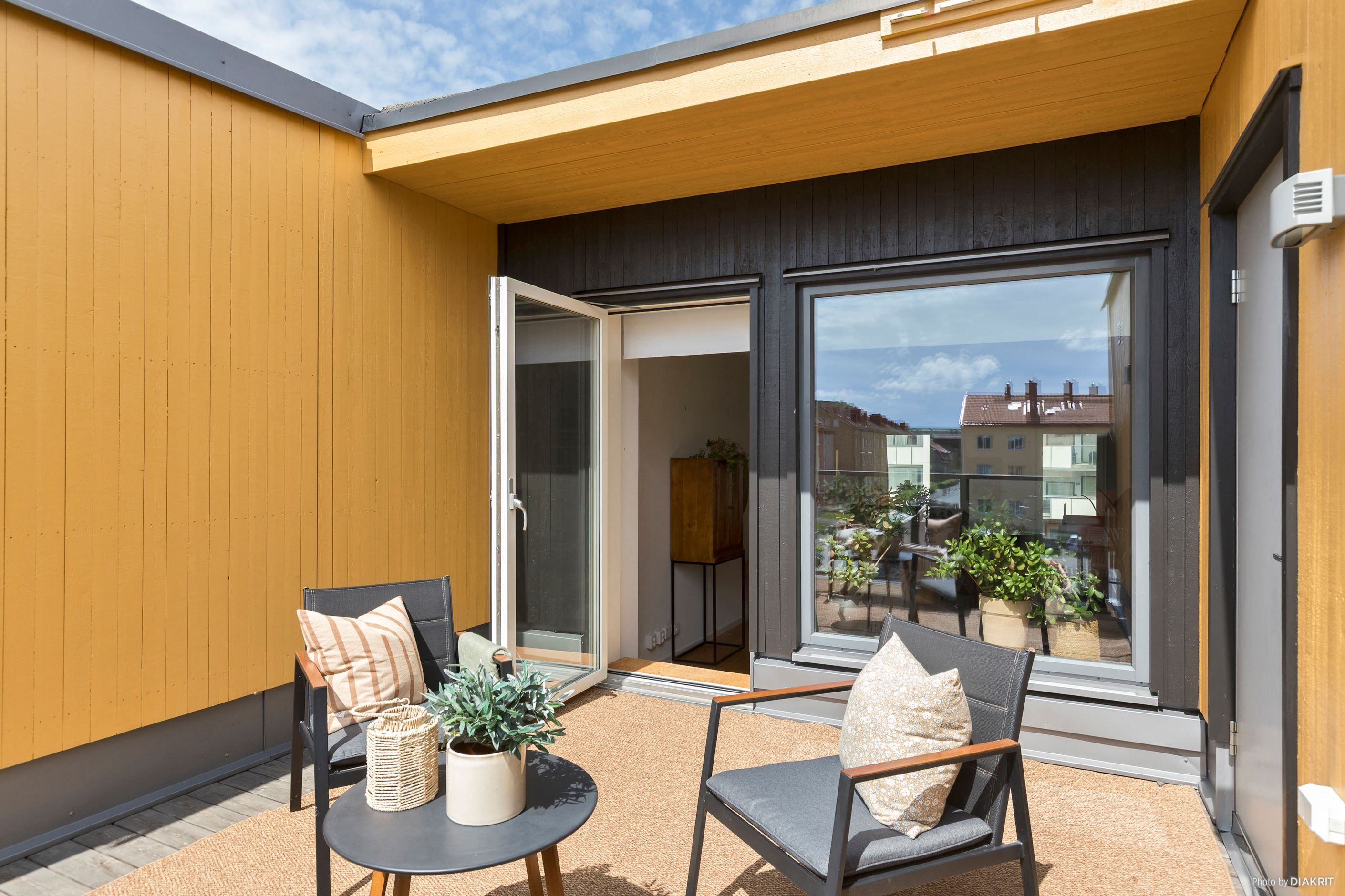 Högst upp väntar hemmets verkliga höjdpunkt: ett underbart allrum med generöst ljusinsläpp som ger en härlig rymd och karaktär. Härifrån kliver du rakt ut på takterrassen i soligt söderläge – en oas med utsikt över takåsarna där du kan njuta av både morgonkaffet och ljumma sommarkvällar i avskildhet - En lyx utöver det vanliga!