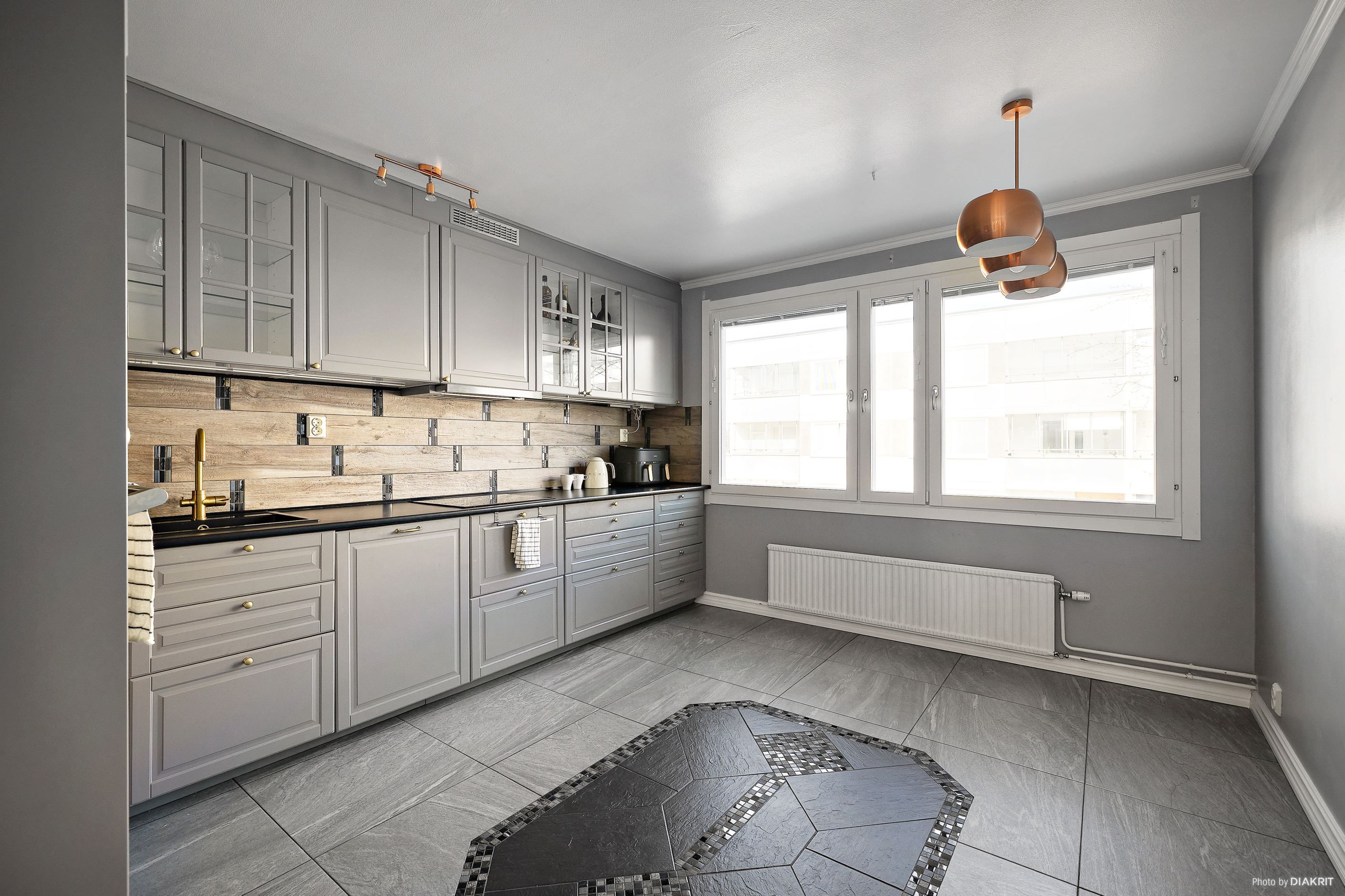 Köket renoverades även det 2017 och erbjuder klinkergolv samt full maskinell utrustning i form av kyl/frys, diskmaskin, ugn, mikro, fläkt och spishäll – här finns allt du behöver för både vardag och sociala tillställningar.