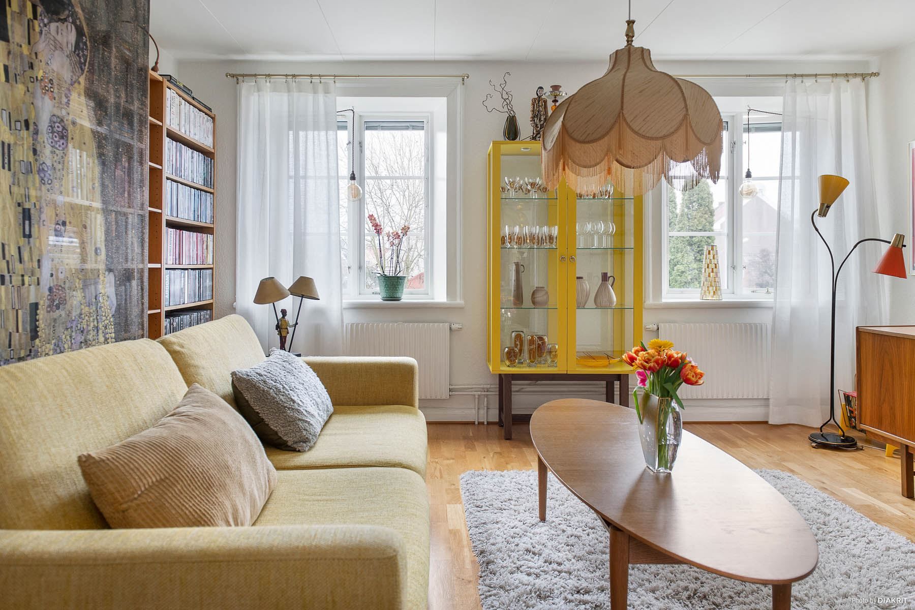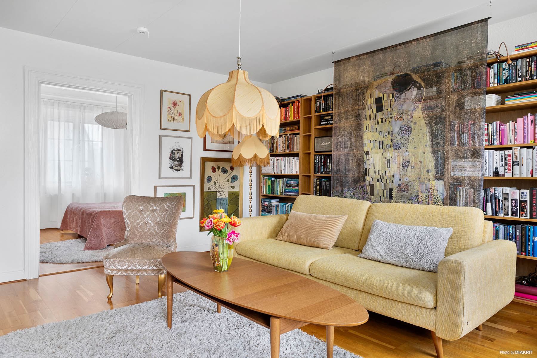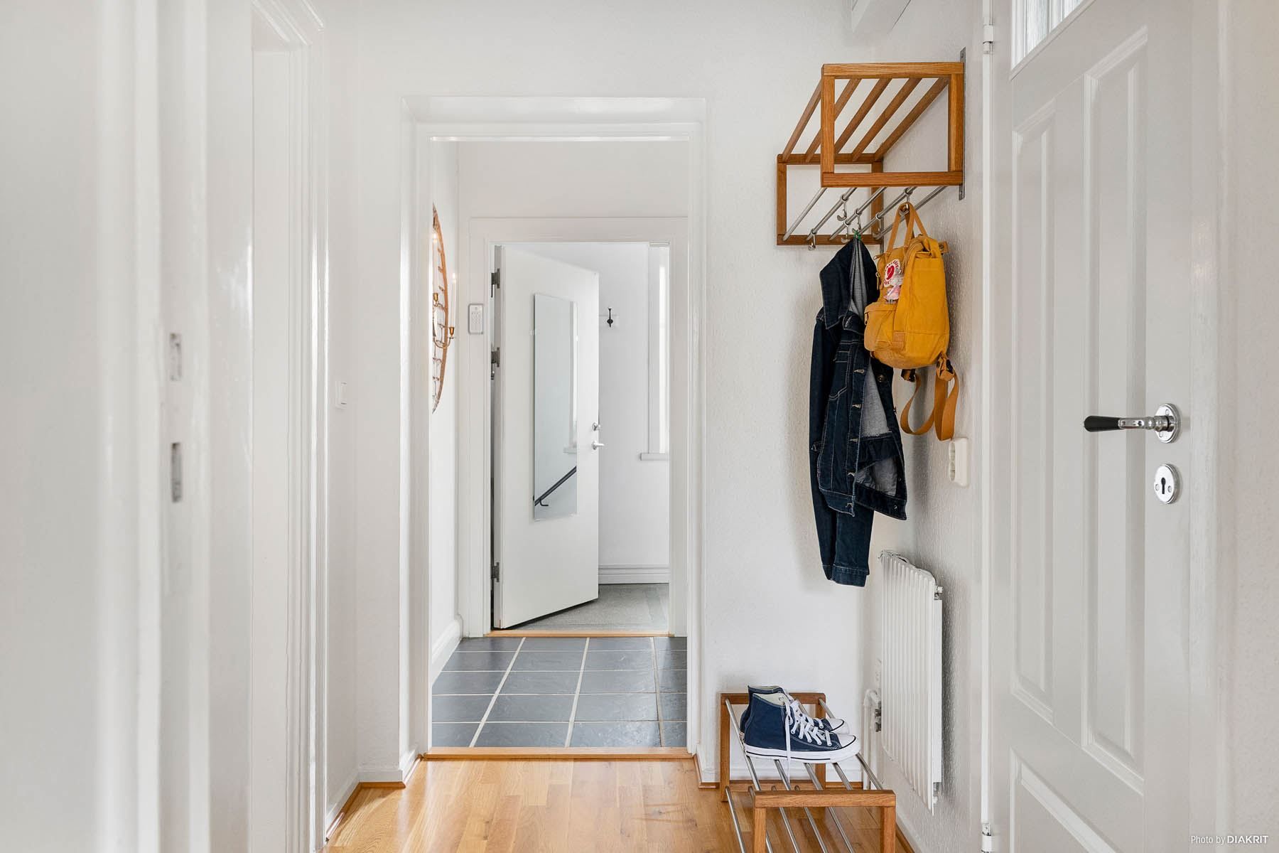 Vardagsrummet blir en naturlig samlingsplats med gott ljusinsläpp från fönster i söderläge. Härifrån når vi även bostadens ena sovrum, där vi erbjuds smidig förvaring i klädkammare samt inbyggt linneskåp. Det helkaklade badrummet nås från korridoren och är utrustat med wc, vask, kommod, dusch med glasväggar, golvvärme samt tvättmaskin och torktumlare.