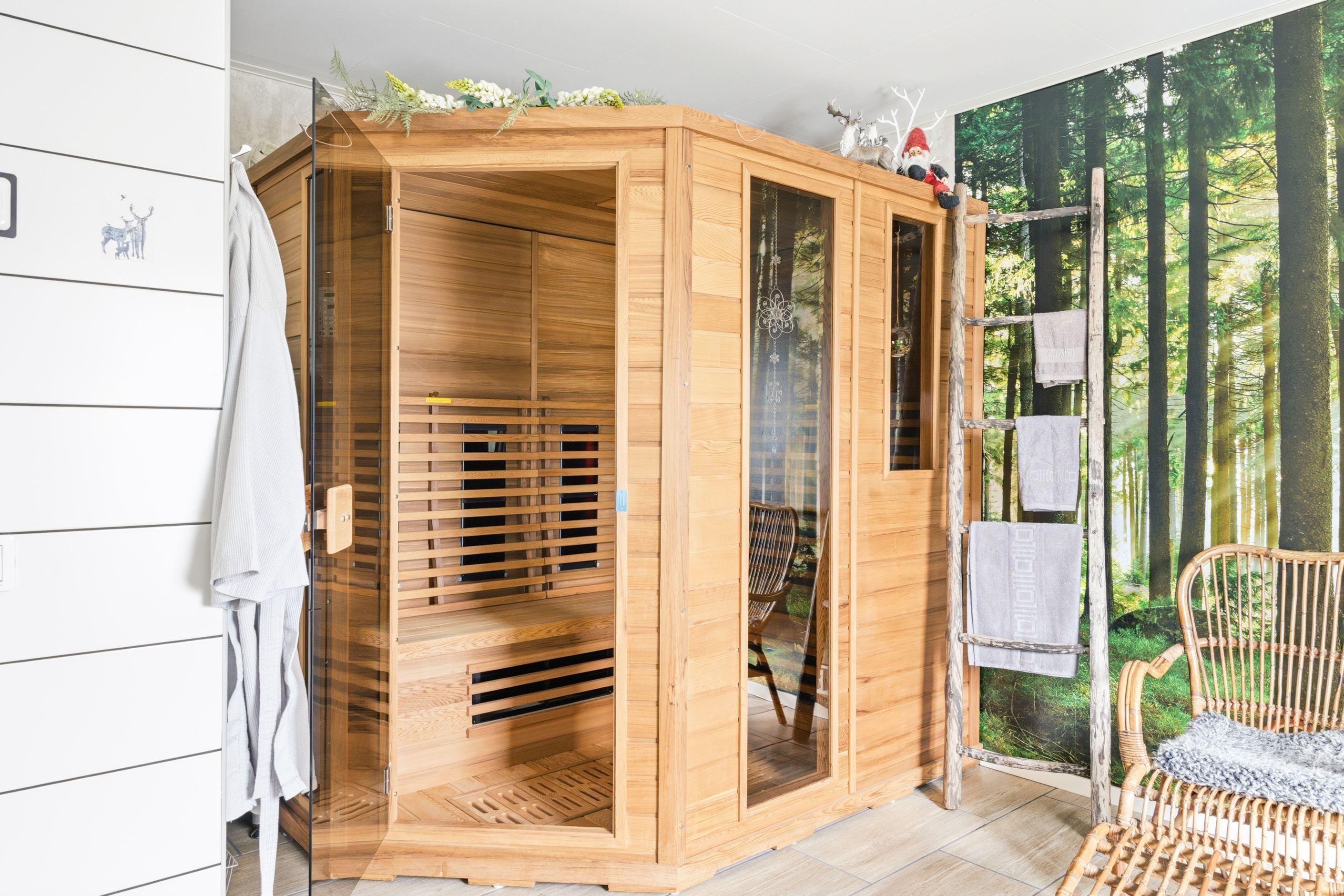 Planlösningen är väl genomtänkt med gott om utrymme för både umgänge och avskildhet. Det rymliga badrummet erbjuder en lyxig känsla med bastu utrustad med infravärme – perfekt för avkoppling efter en lång dag.