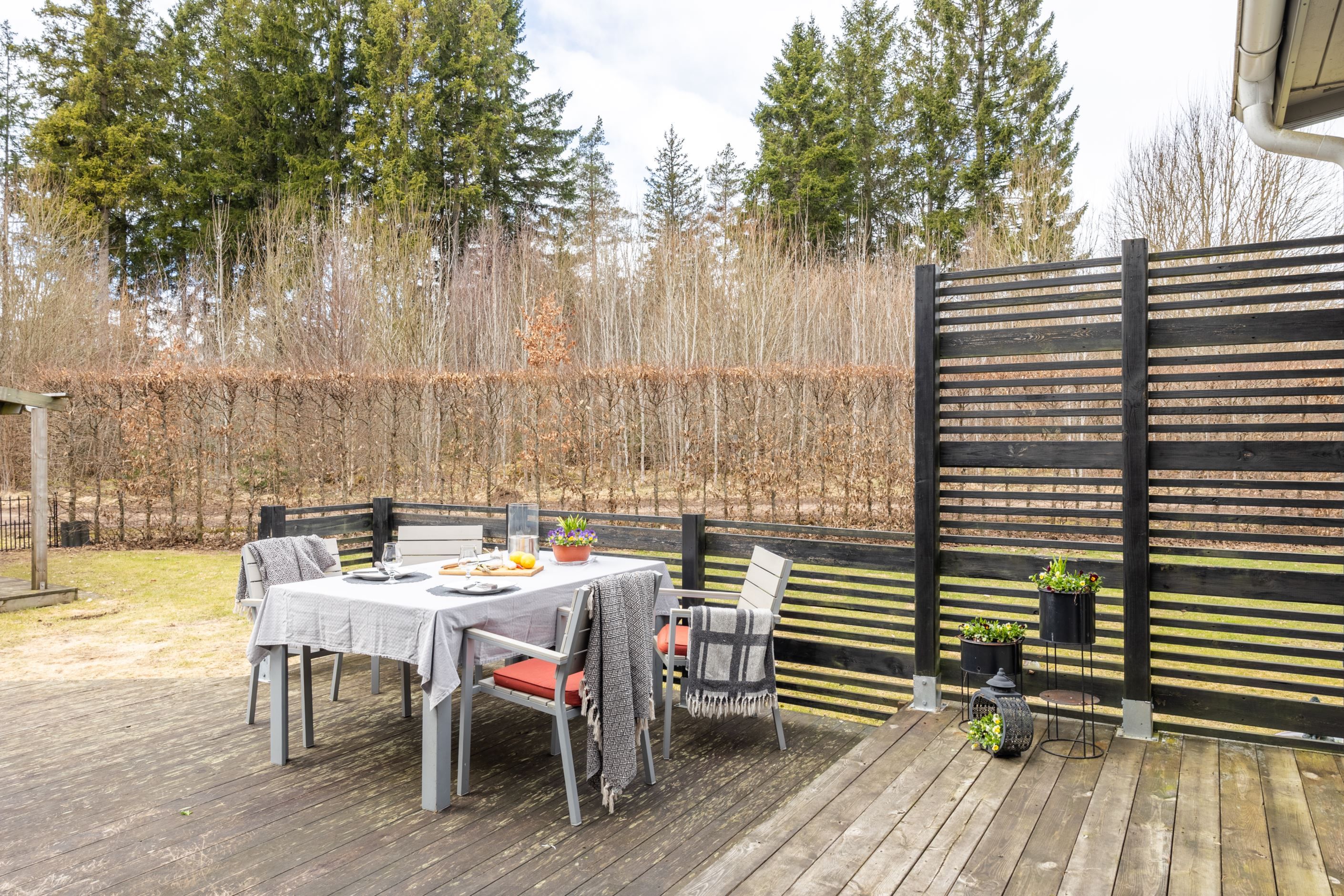 Utomhus väntar en lättskött tomt med naturen bokstavligen bakom knuten, vilket ger en frihetskänsla och en oslagbar närhet till skog och friluftsliv. Samtidigt bor du bekvämt med närhet till service, skolor och allt som underlättar vardagen.