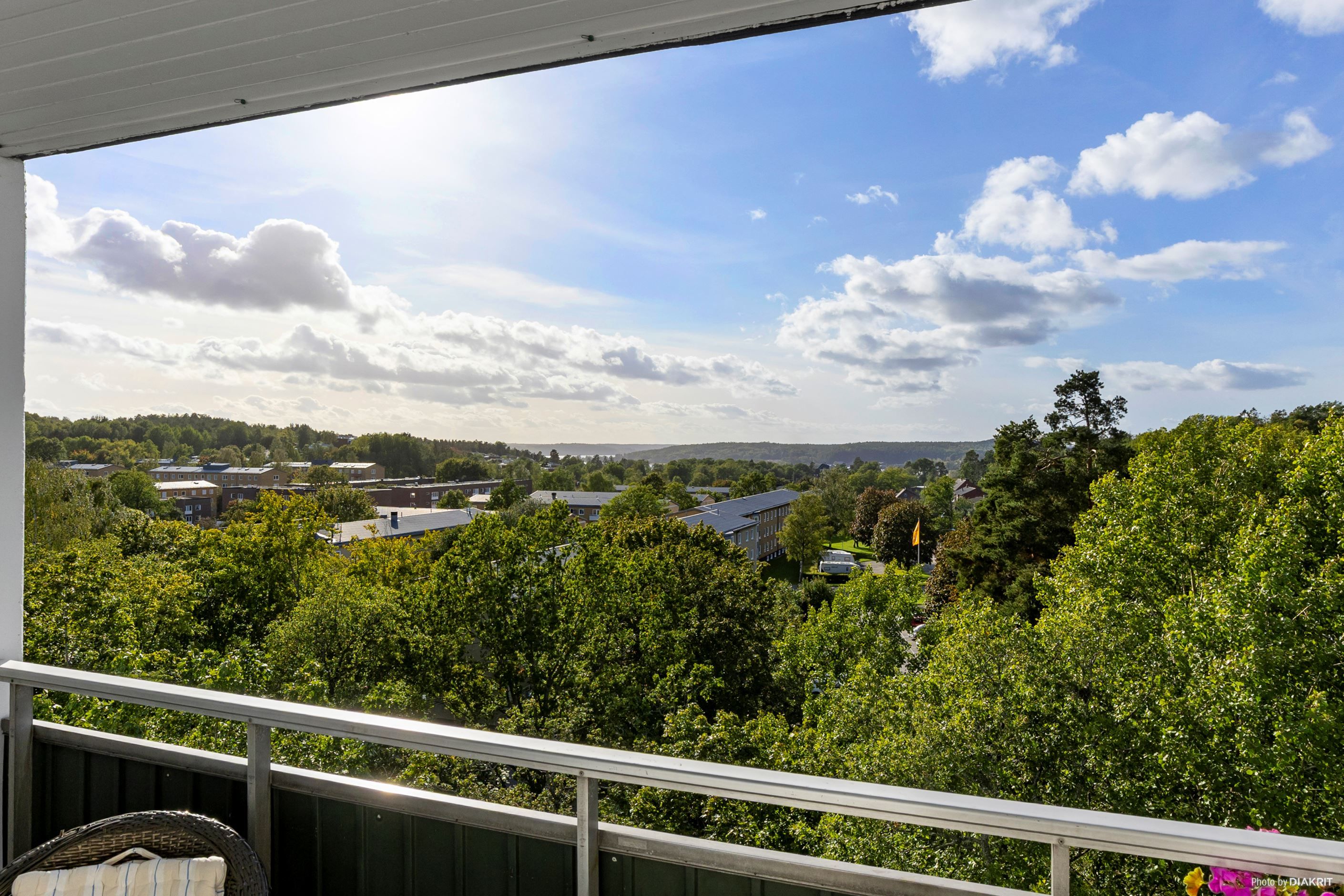 Milsvid utsikt över grönska och Mälaren! Gavellägenhet högst upp i huset med magisk balkong.