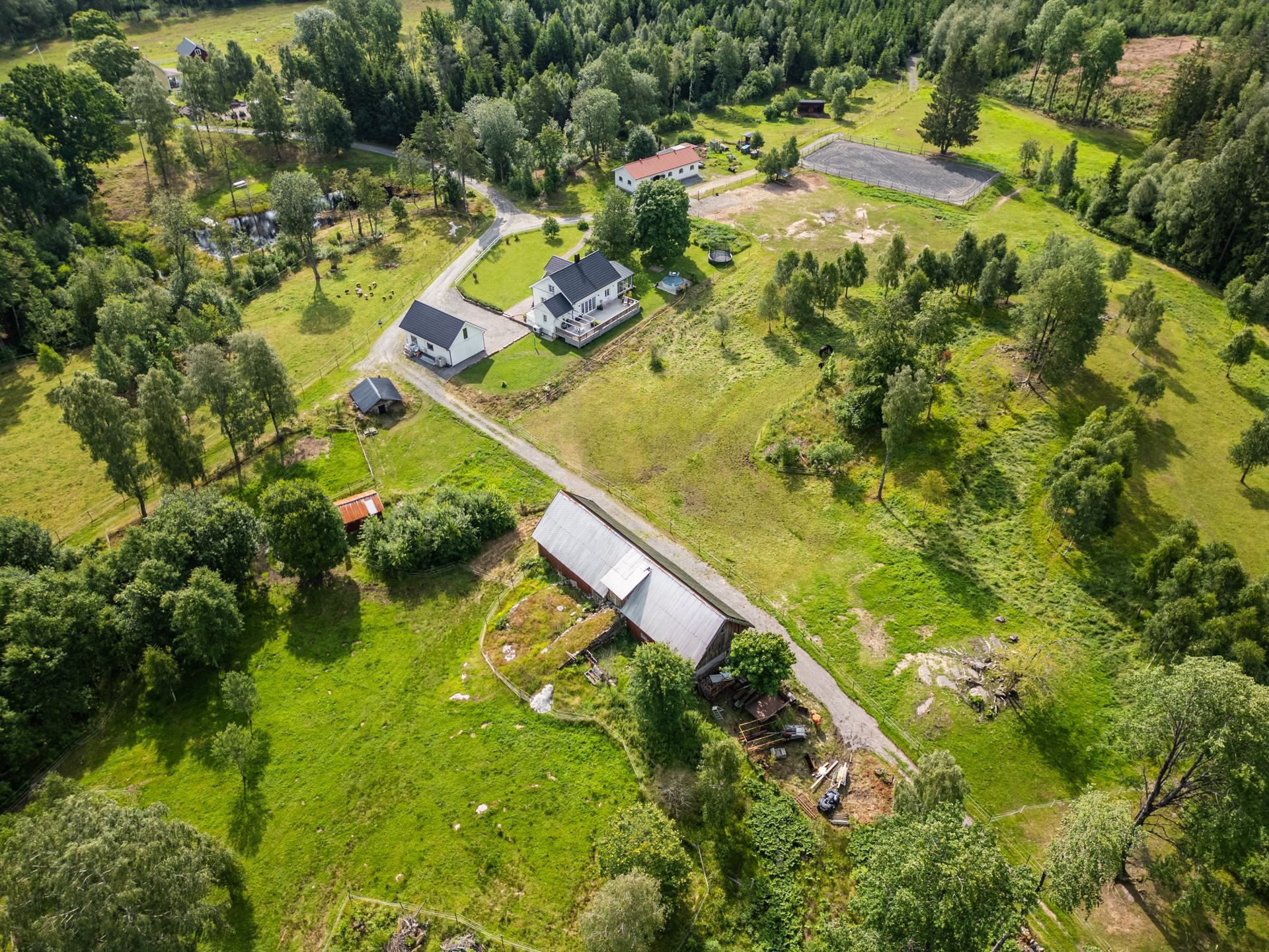 Denna hästgård erbjuder såväl modern komfort som historisk karaktär, idealiskt belägen för den som söker en fridfull tillflyktsort med utmärkta möjligheter för både boende och hästskötsel.