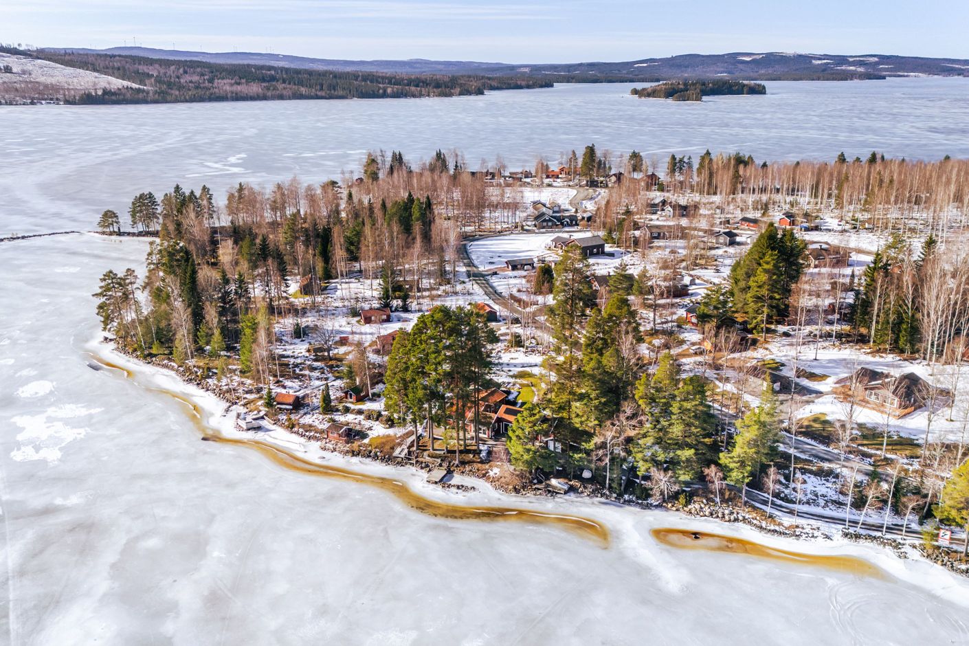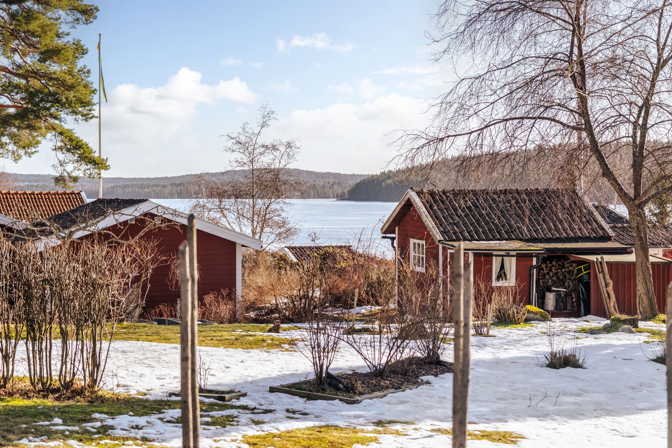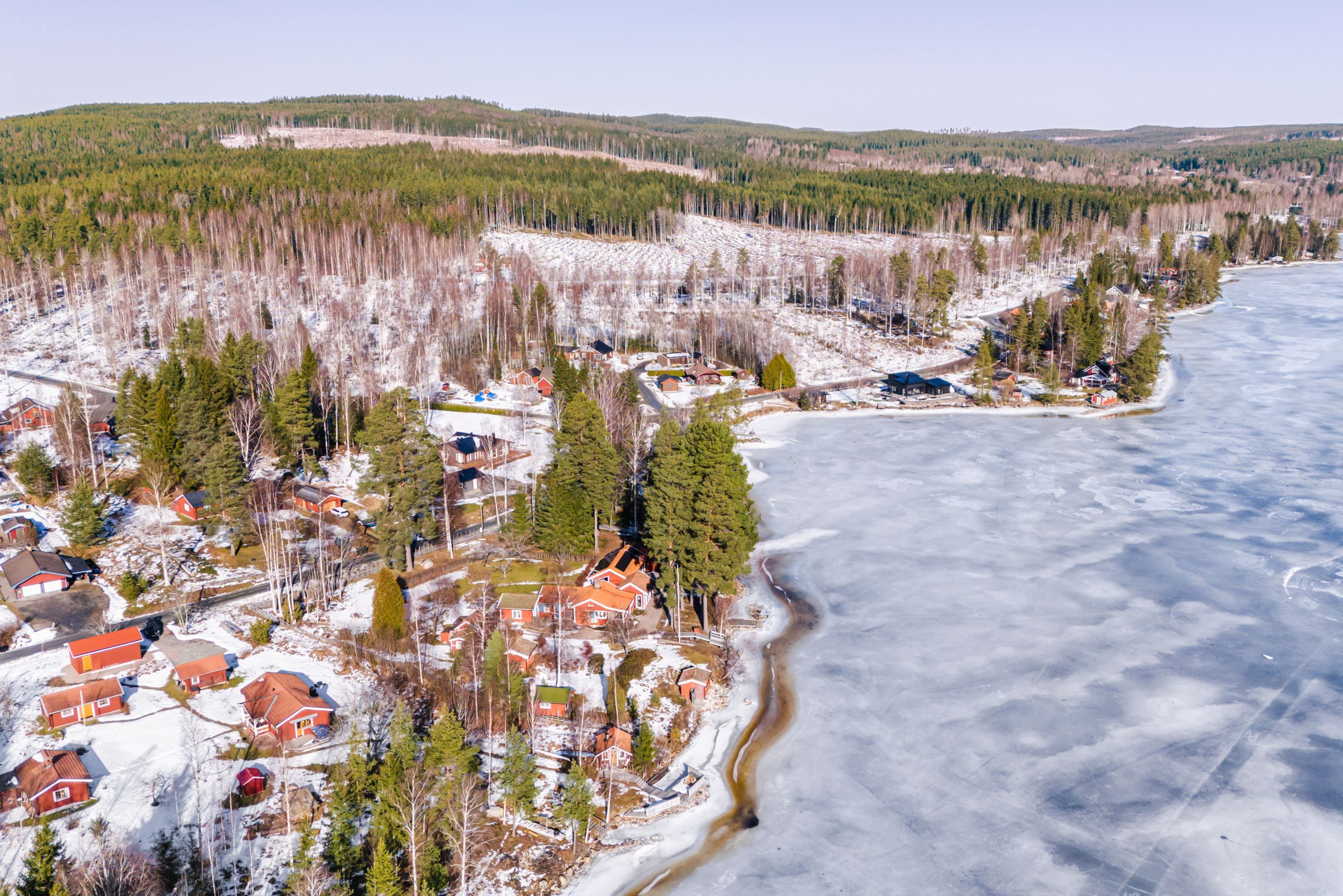 Vid strandkanten finns flera bryggor, båtplats och en mindre strand för bad. Under sommarhalvåret kretsar livet kring vattnet – morgondopp, båtturer och långa kvällar vid bryggan. När vintern kommer förvandlas sjön till ett landskap av is där skridskoåkning, längdskidor och turer över sjön blir en naturlig del av vardagen.