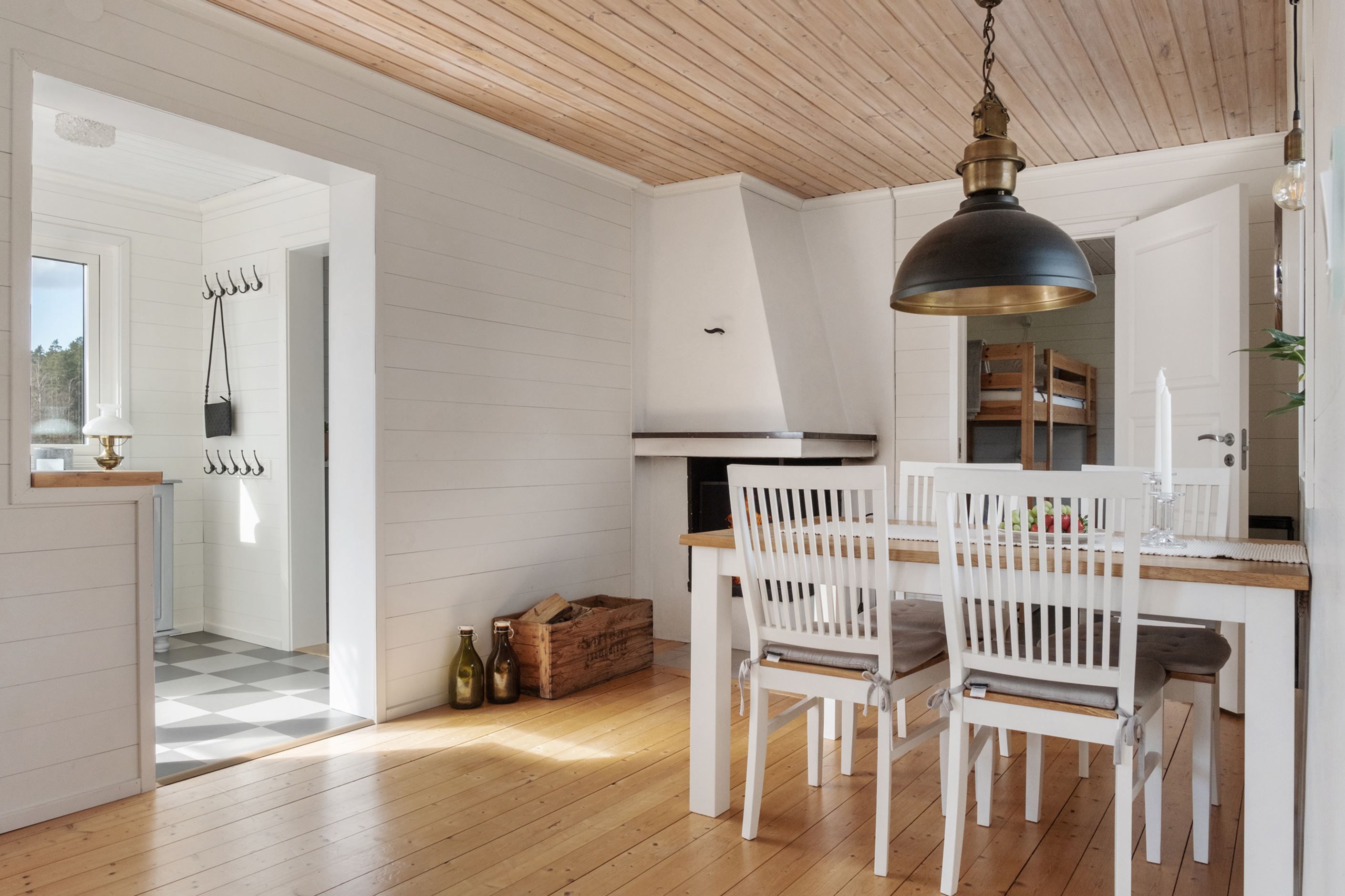 Bostaden har genomgått smakfulla uppdateringar och erbjuder ett modernt kök, en stämningsfull eldstad samt ett nyrenoverat badrum. Planlösningen är väl genomtänkt med två sovrum, ett trivsamt vardagsrum och en öppen, social köksdel som tillsammans skapar en funktionell och inbjudande helhet – lika väl anpassad för permanentboende som för avkopplande helger.