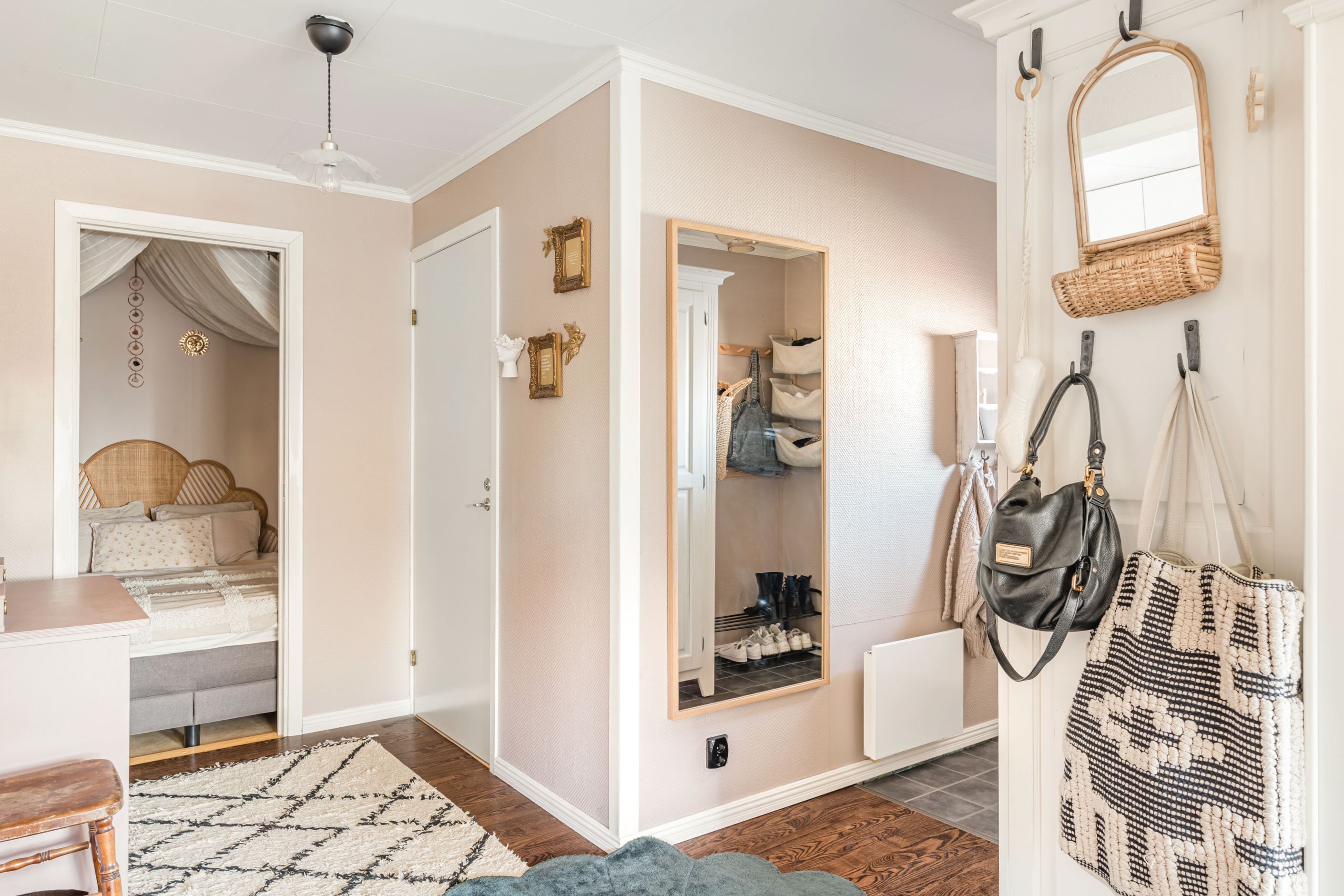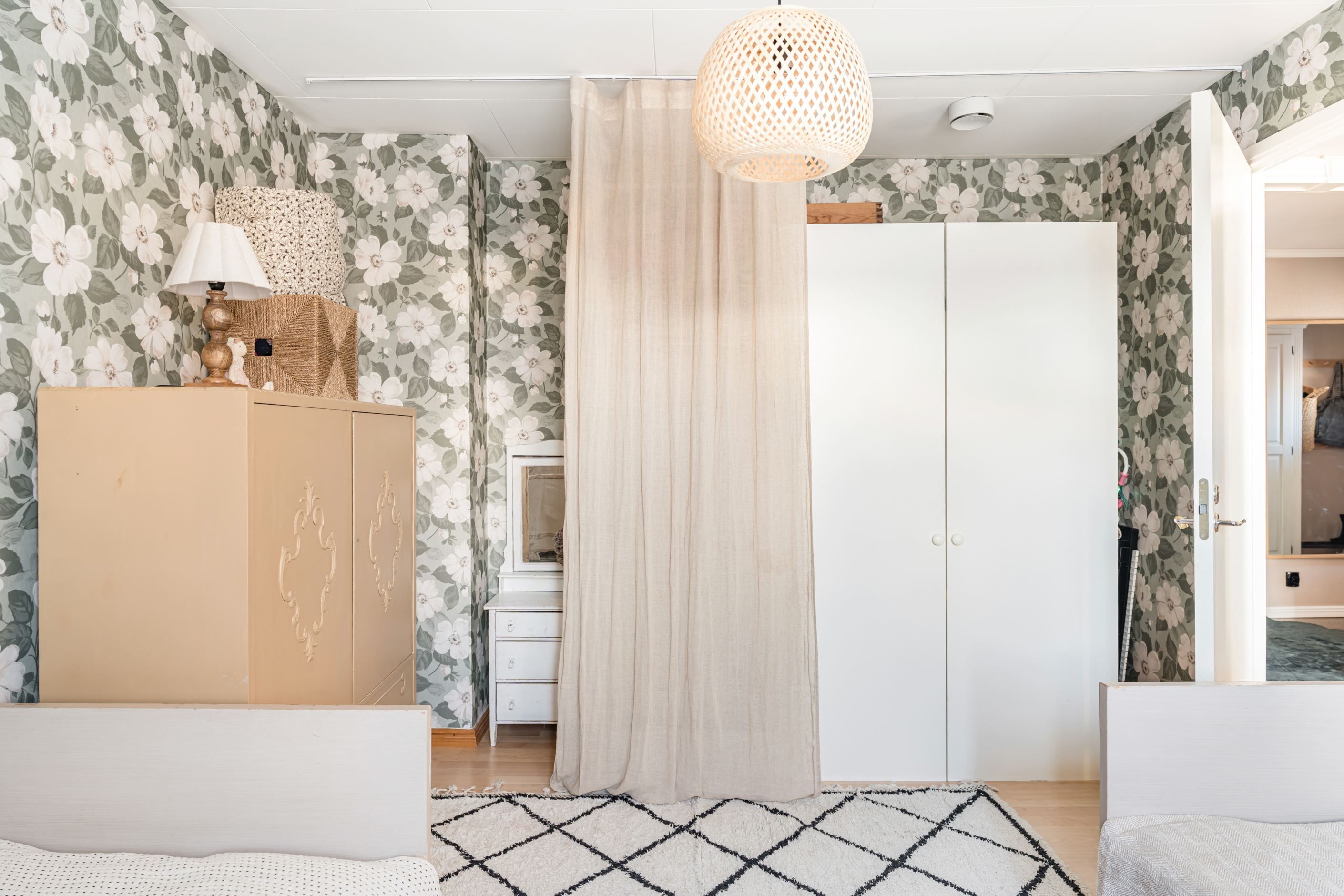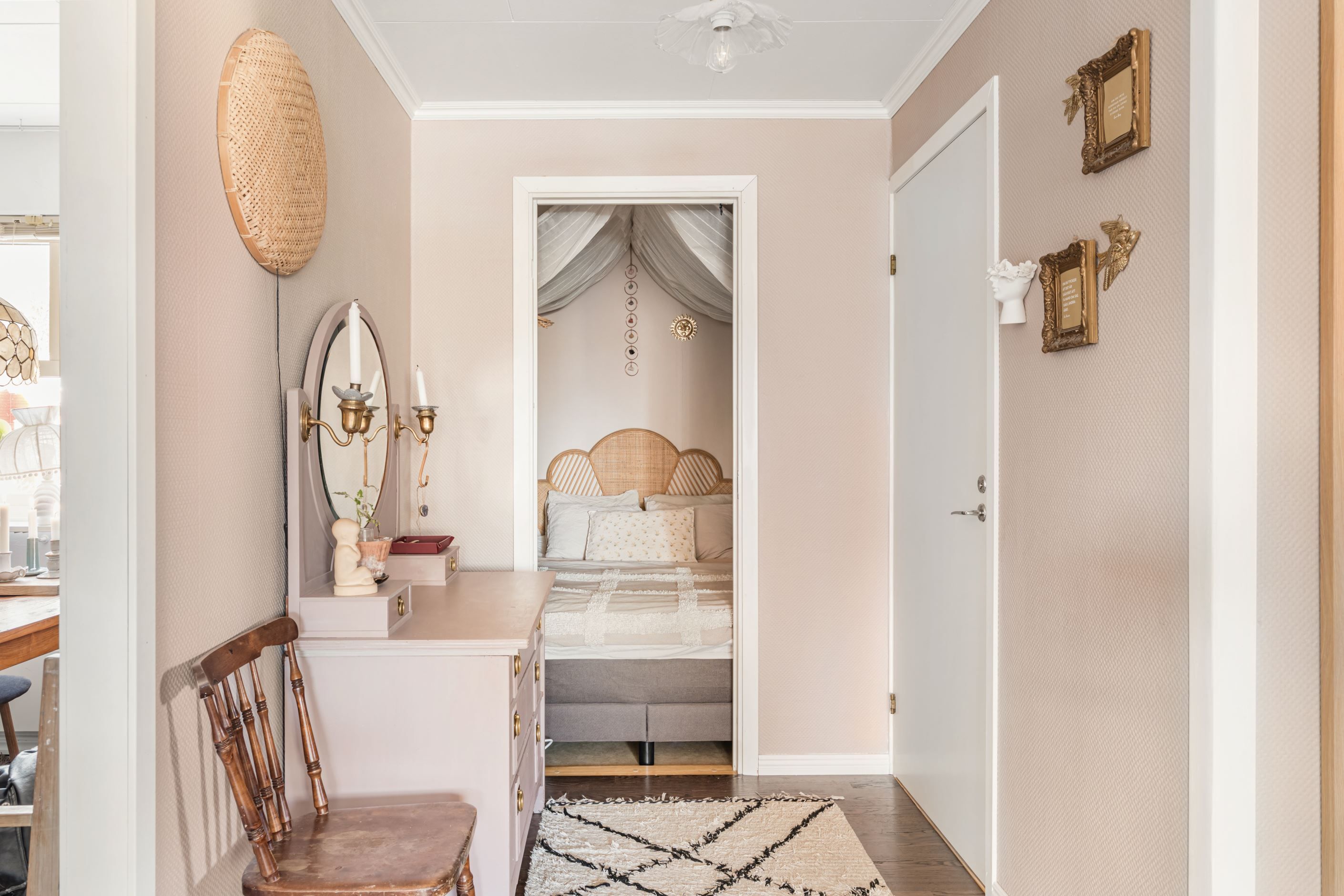 Bostaden erbjuder flera sovmöjligheter – ett rofyllt större sovrum samt en helt unik sovalkov som tidigare varit klädkammare. En liten, ombonad plats som känns nästan sagolik och blir en perfekt reträtt för vila eller lek. Badrummet är fräscht med badkar och intill finns en praktisk tvättdel med god förvaring.
