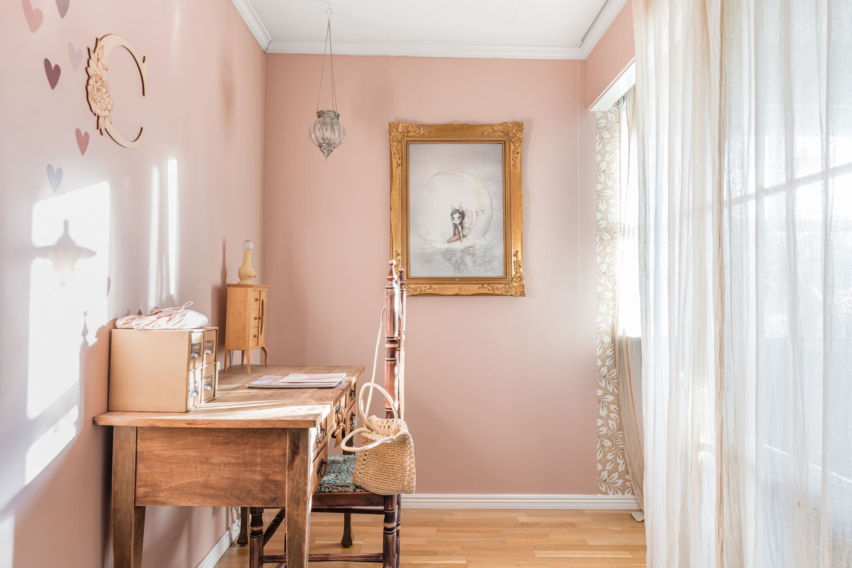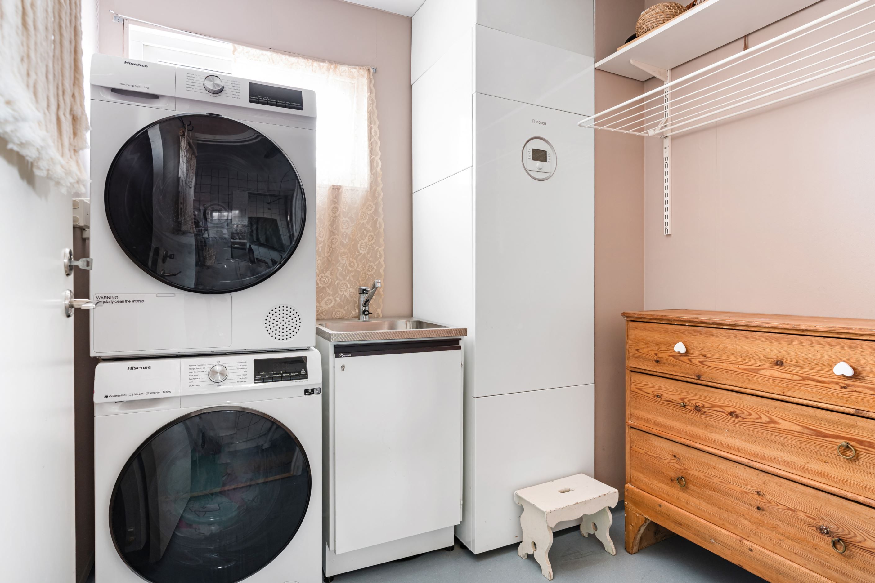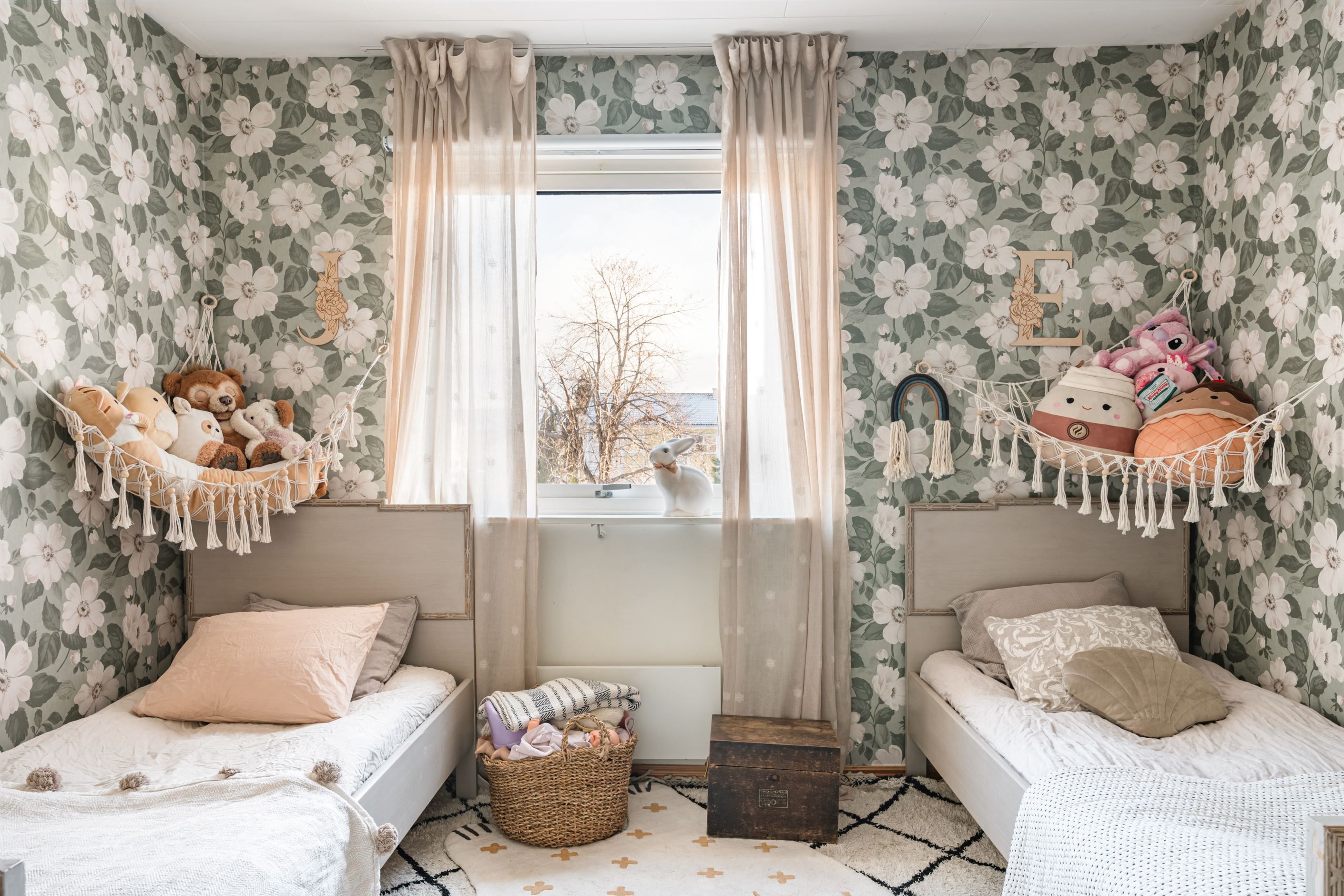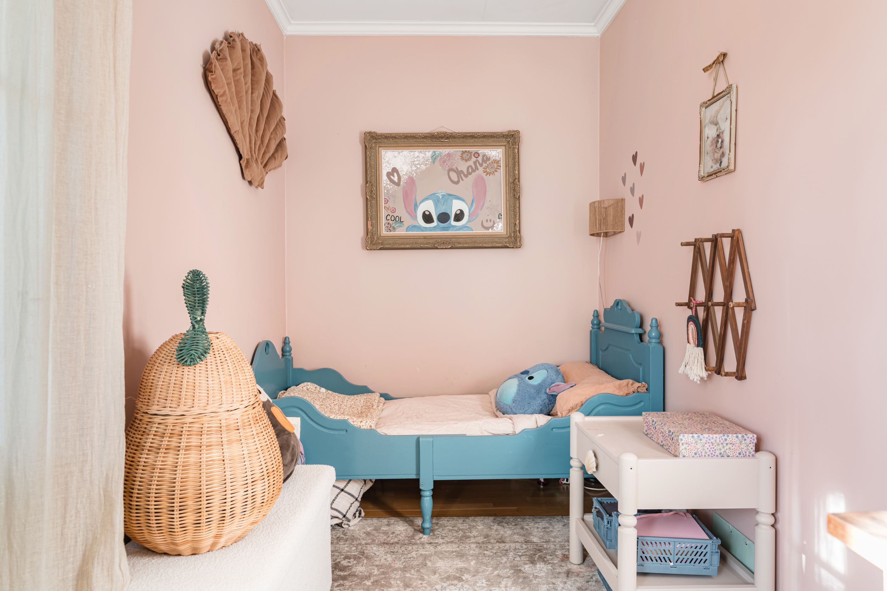 Bostaden erbjuder flera sovmöjligheter – ett rofyllt större sovrum samt en helt unik sovalkov som tidigare varit klädkammare. En liten, ombonad plats som känns nästan sagolik och blir en perfekt reträtt för vila eller lek. Badrummet är fräscht med badkar och intill finns en praktisk tvättdel med god förvaring.