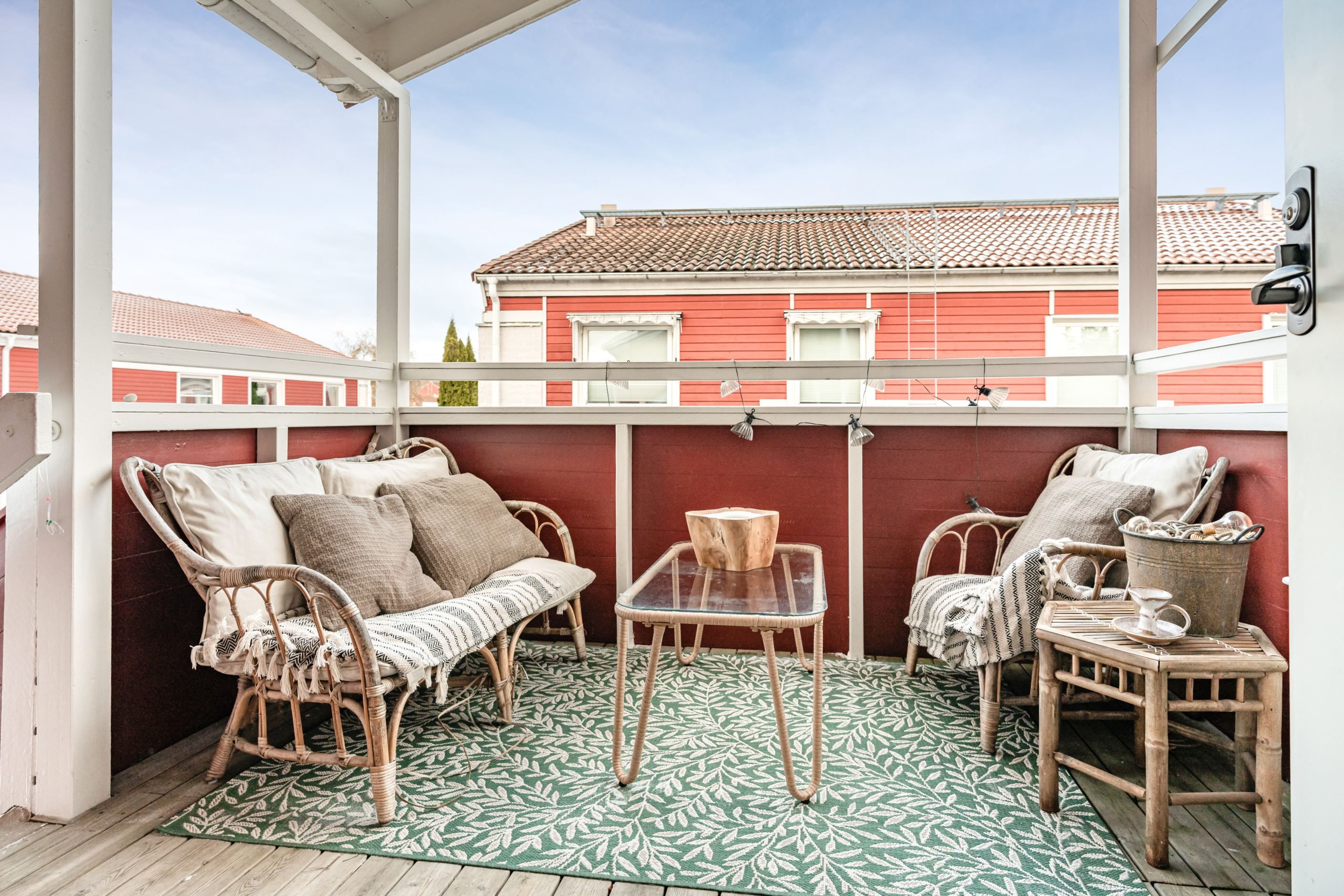 Utanför entrén, en charmig balkong, perfekt för morgonkaffet eller en stunds stillhet med utsikt över gårdens lugna liv. Ljuset leder dig vidare in i bostaden där mjuka färgval, naturliga material och fina detaljer skapar en harmonisk helhet.