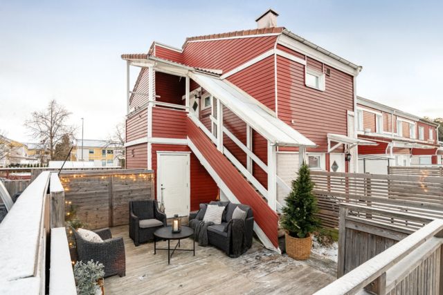 Som kronan på verket finns en stor uteplats på markplan – en egen grön oas med fantastiska möjligheter för odling, lek, lounge och sommarens middagar i kvällssolen. Här förstärks känslan av radhusliv snarare än lägenhet.