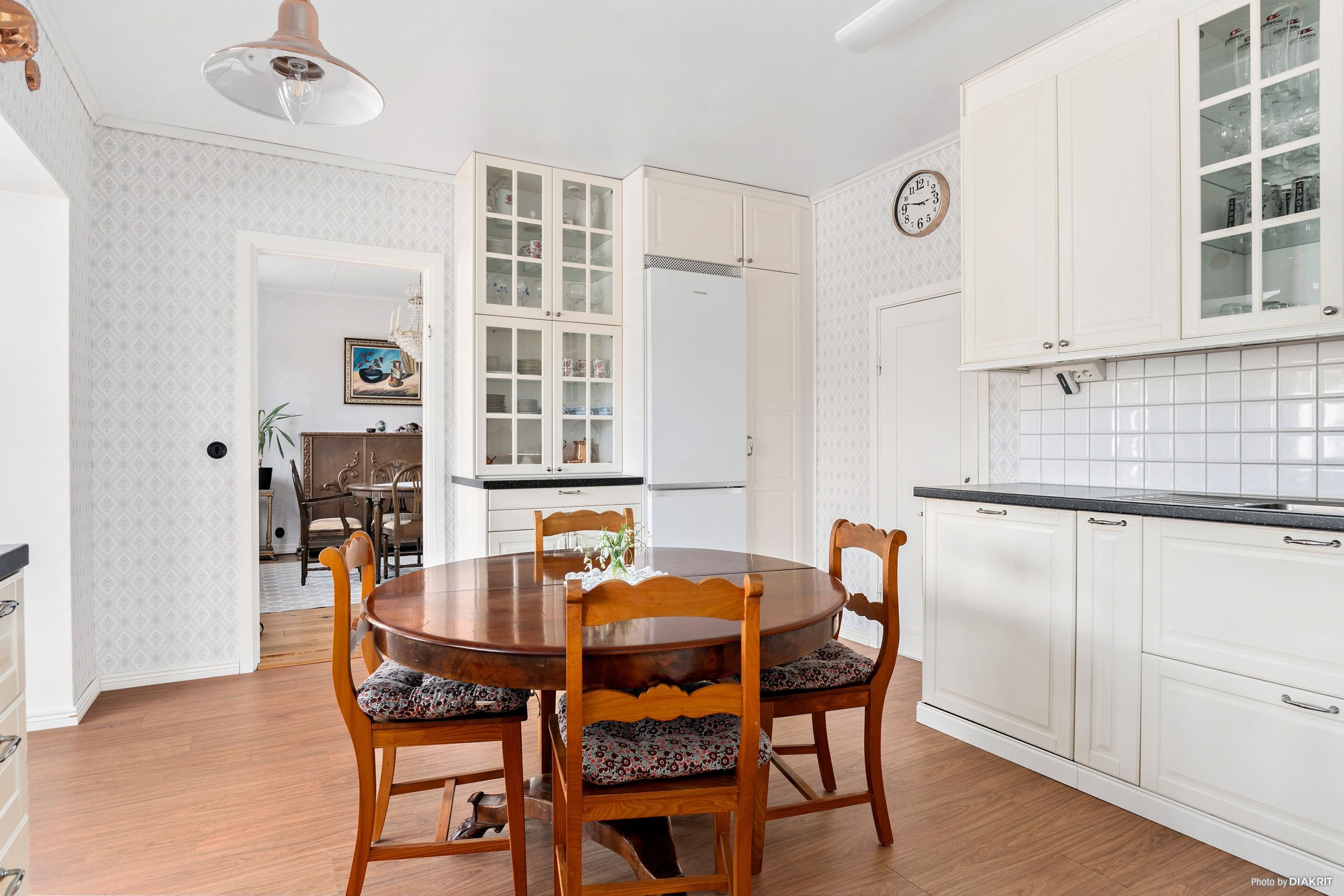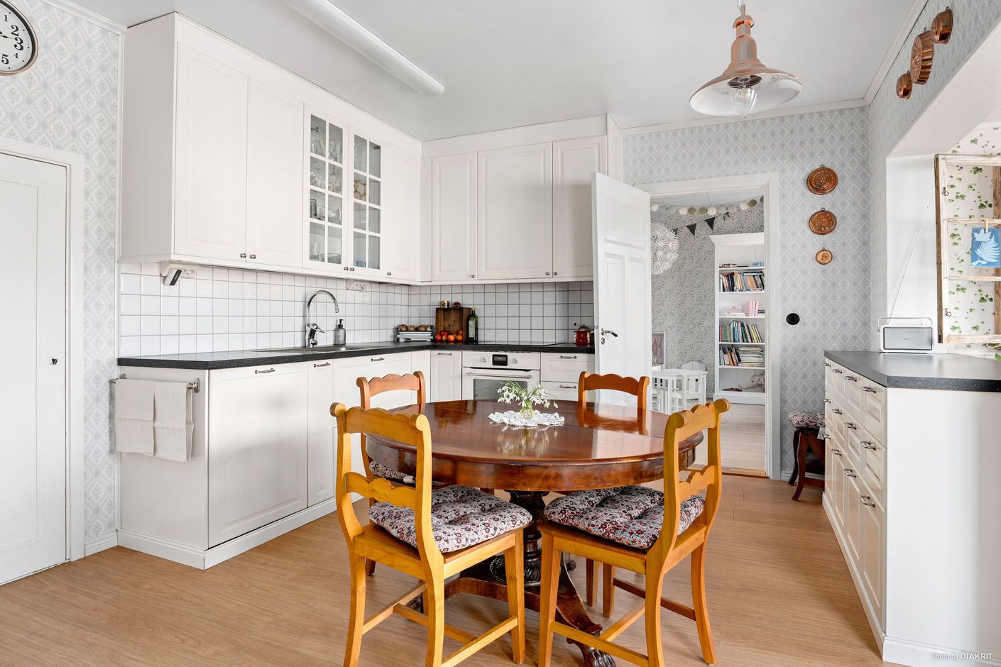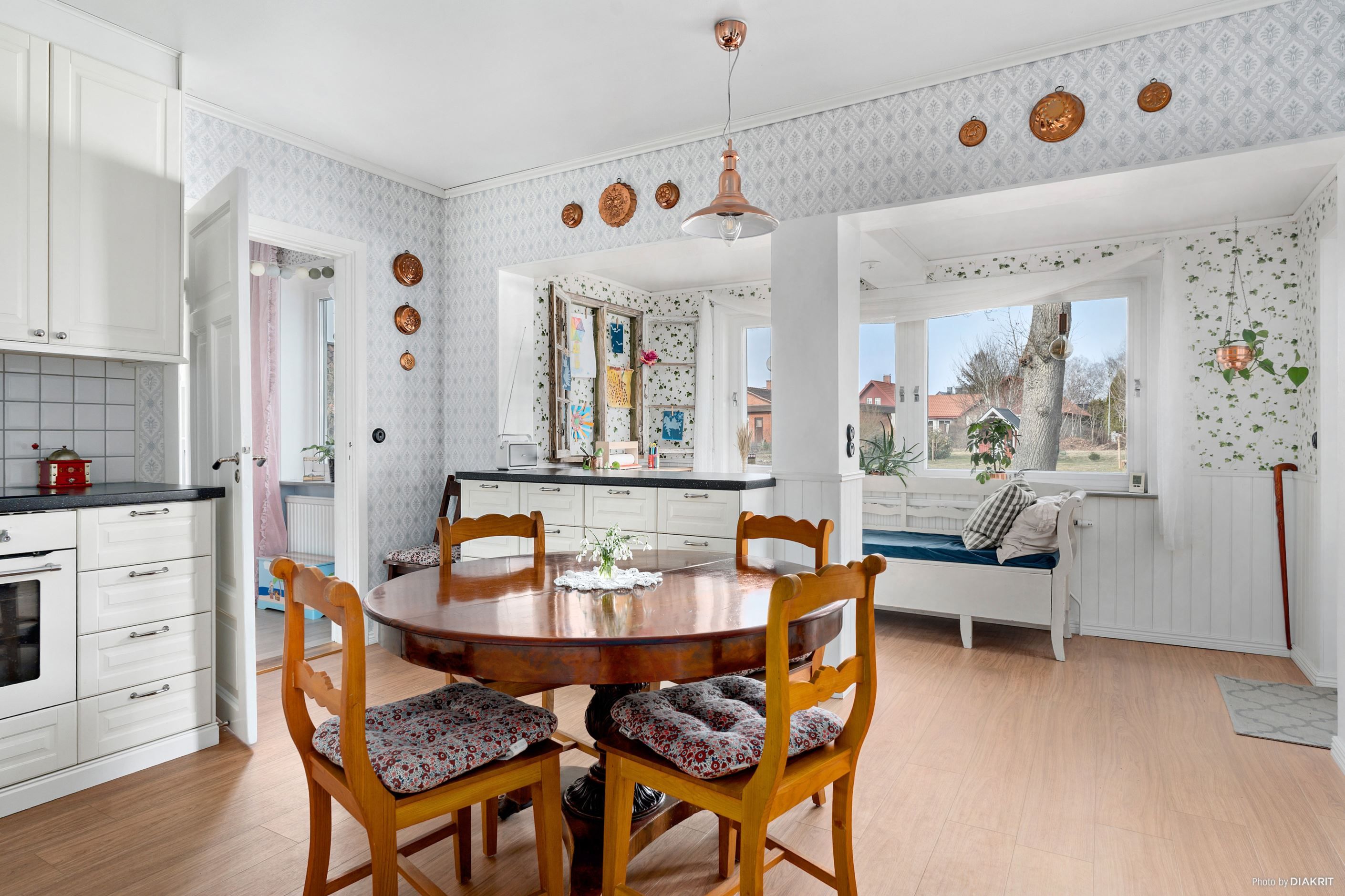 Villan är centralt belägen med närhet till skolor, affärer och utmärkta kommunikationer, vilket gör den idealisk för både familjeliv och pendling. Det vackra lantköket är hjärtat av hemmet, perfekt för både vardagsmiddagar och större tillställningar.