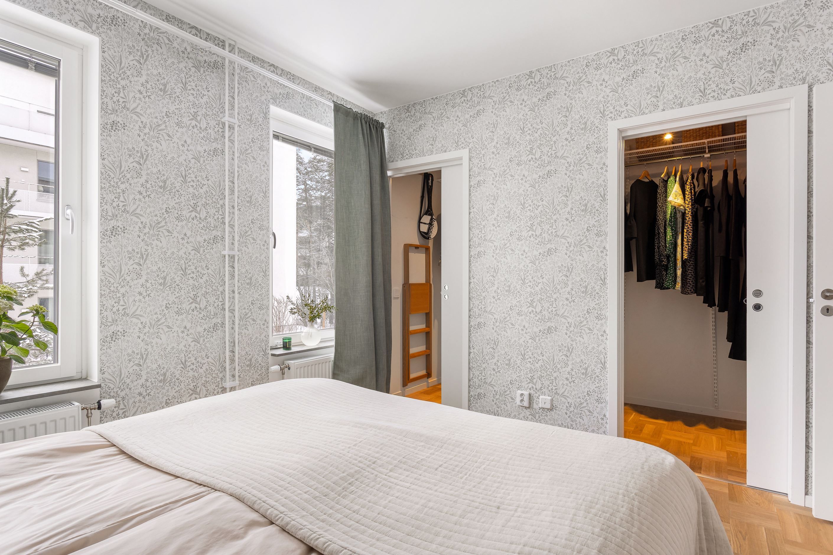 Sovrummen ligger i den privata delen av lägenheten, bortom vardagsrummet. Här finns tre väl tilltagna sovrum med generösa förvaringsmöjligheter, både i walk-in closet och garderober.