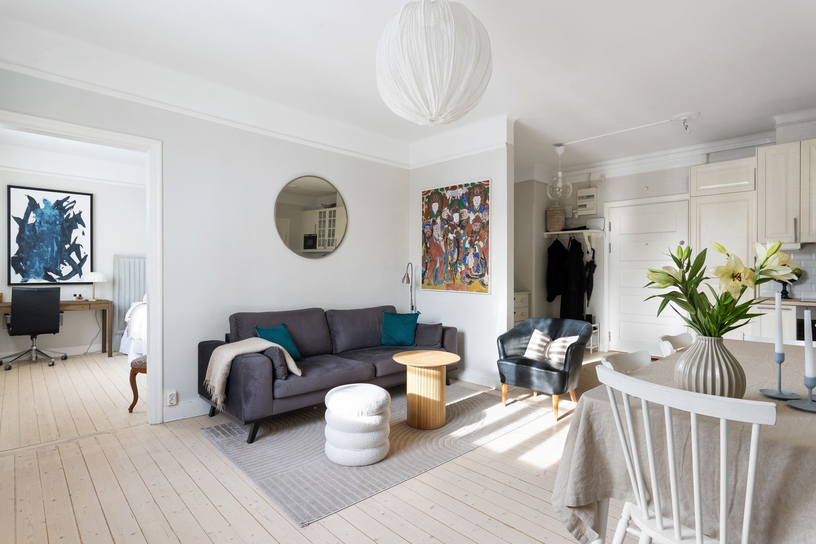 Öppen planlösning - Renoverat badrum med tvättmaskin - Belägen mitt i villaidyllen - Möjlighet till parkeringsplats med laddning - Välskött brf med låga avgifter - Stort sovrum samt ytterligare ett "rum" som kan användas som sovrum/arbetsrum eller walk-in-closet - Bara att flytta in!