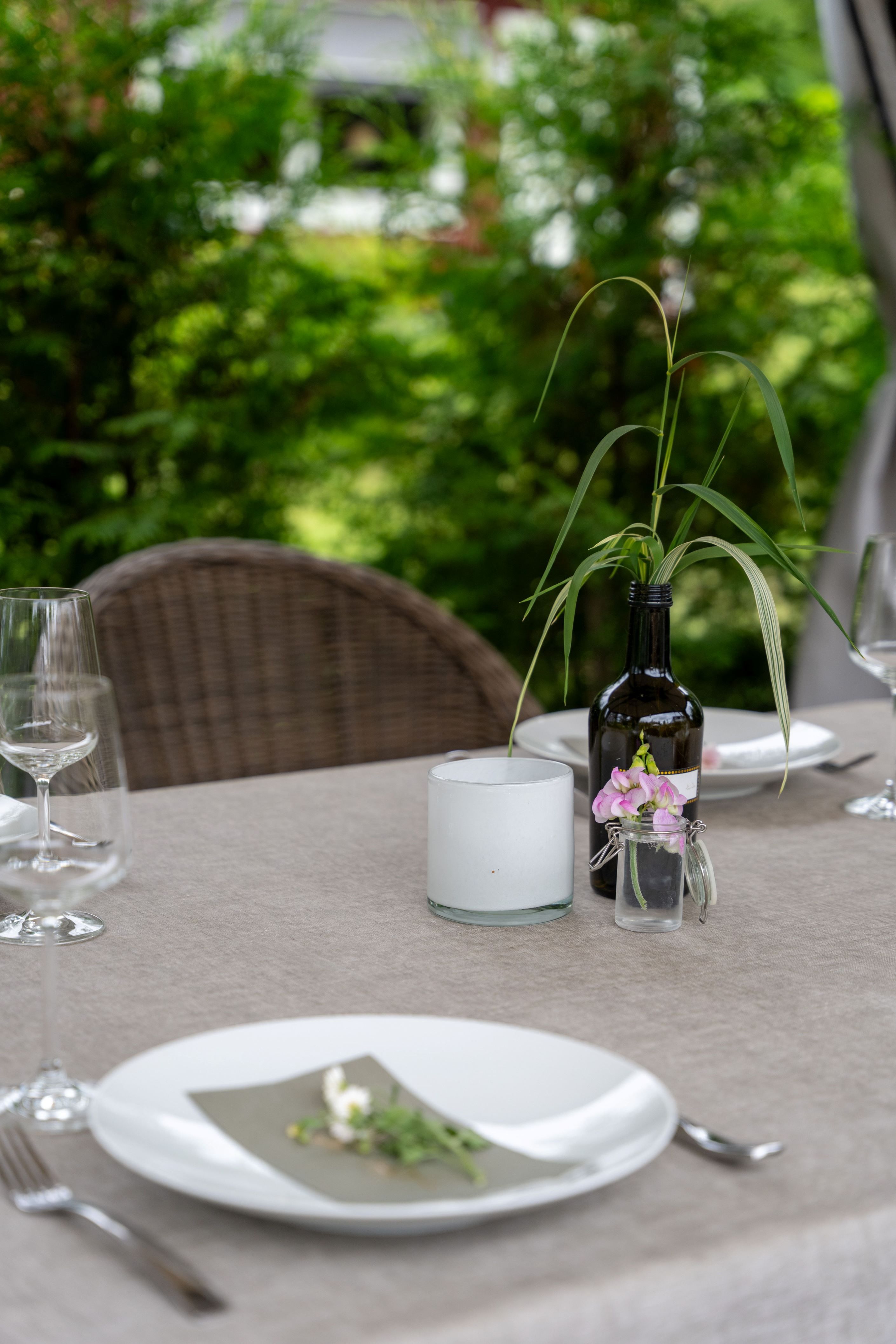 Fastigheten disponeras över en stor tomt med naturområden och trädgård. För den med grönare fingrar är det en perfekt plats att sätta sin egen prägel och skapa sin egna oas. På tomten finns både ett större attefallshus som är varmbonat och optimalt för både långväga främmande som familjsens äldre barn dessutom en länga med en gammal garagedel som idag används som förråd. I andra delen av längan finns ett större rum där surströmmingskivan kan hållas eller som ett optialt hobbyrum.