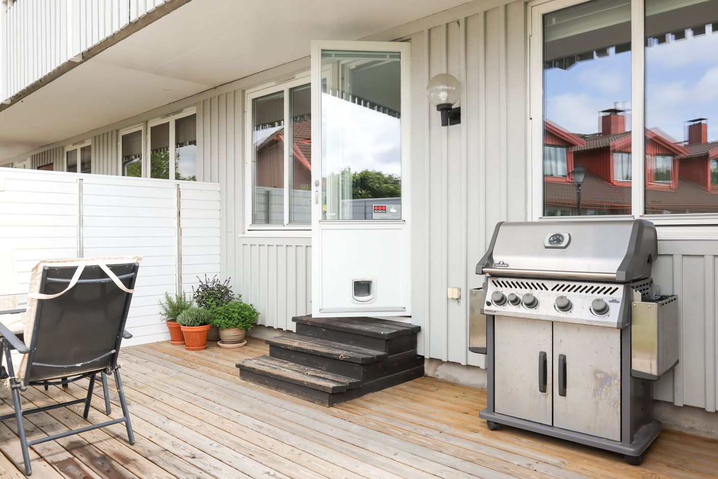 Altan med utsikt över grönområde – lugnt och insynsskyddat läge.