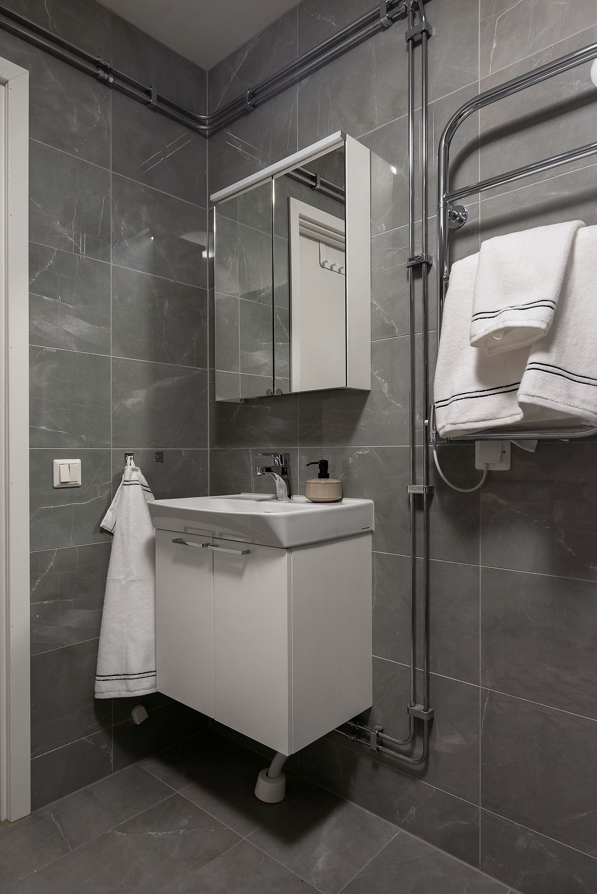 Badrummet med dess helkaklade härlighet och smarta lösningar förhöjer känslan av exklusivitet.