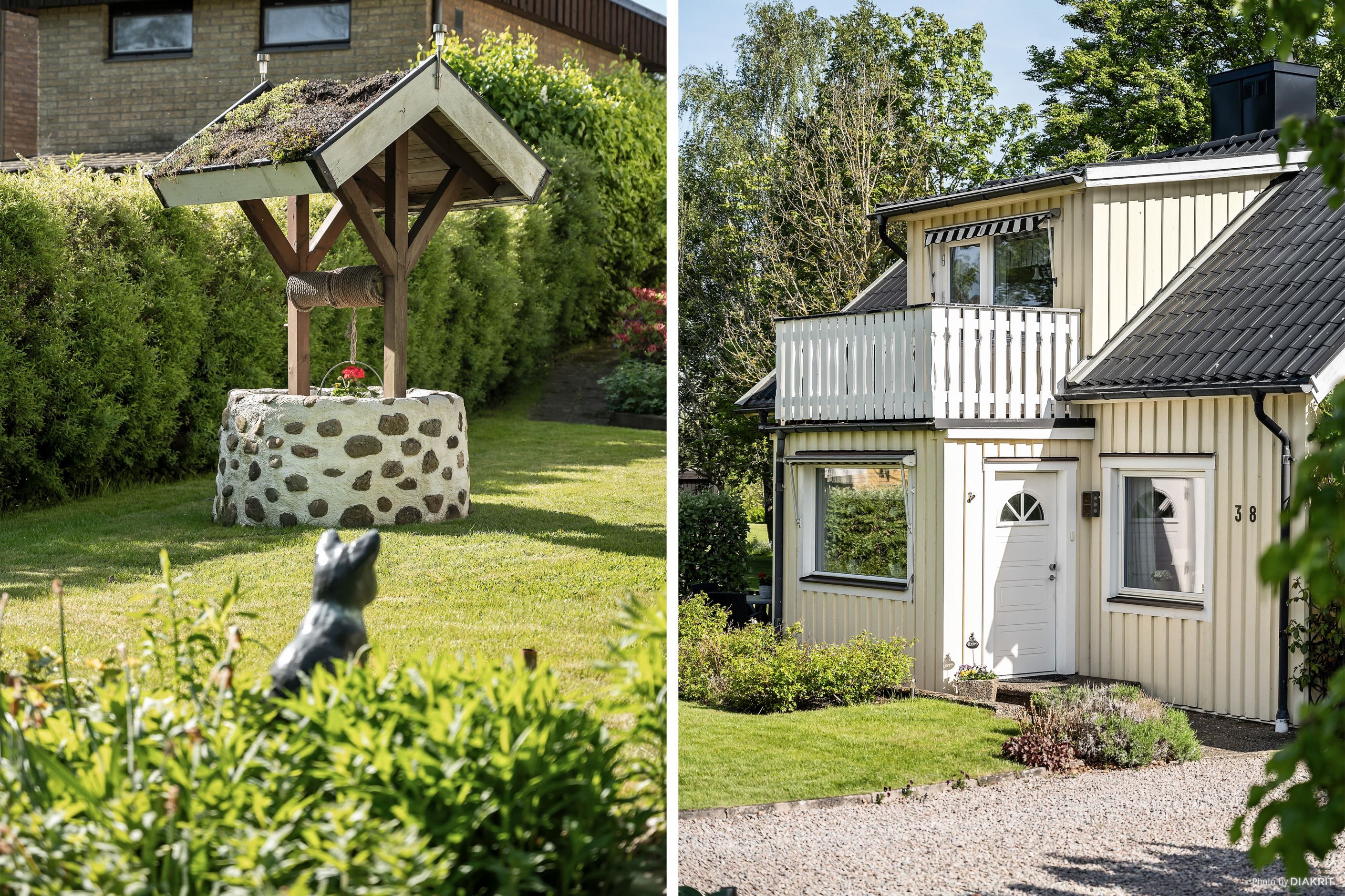 Charmig 1½-plansvilla med källare och lummig trädgård mot allmänning