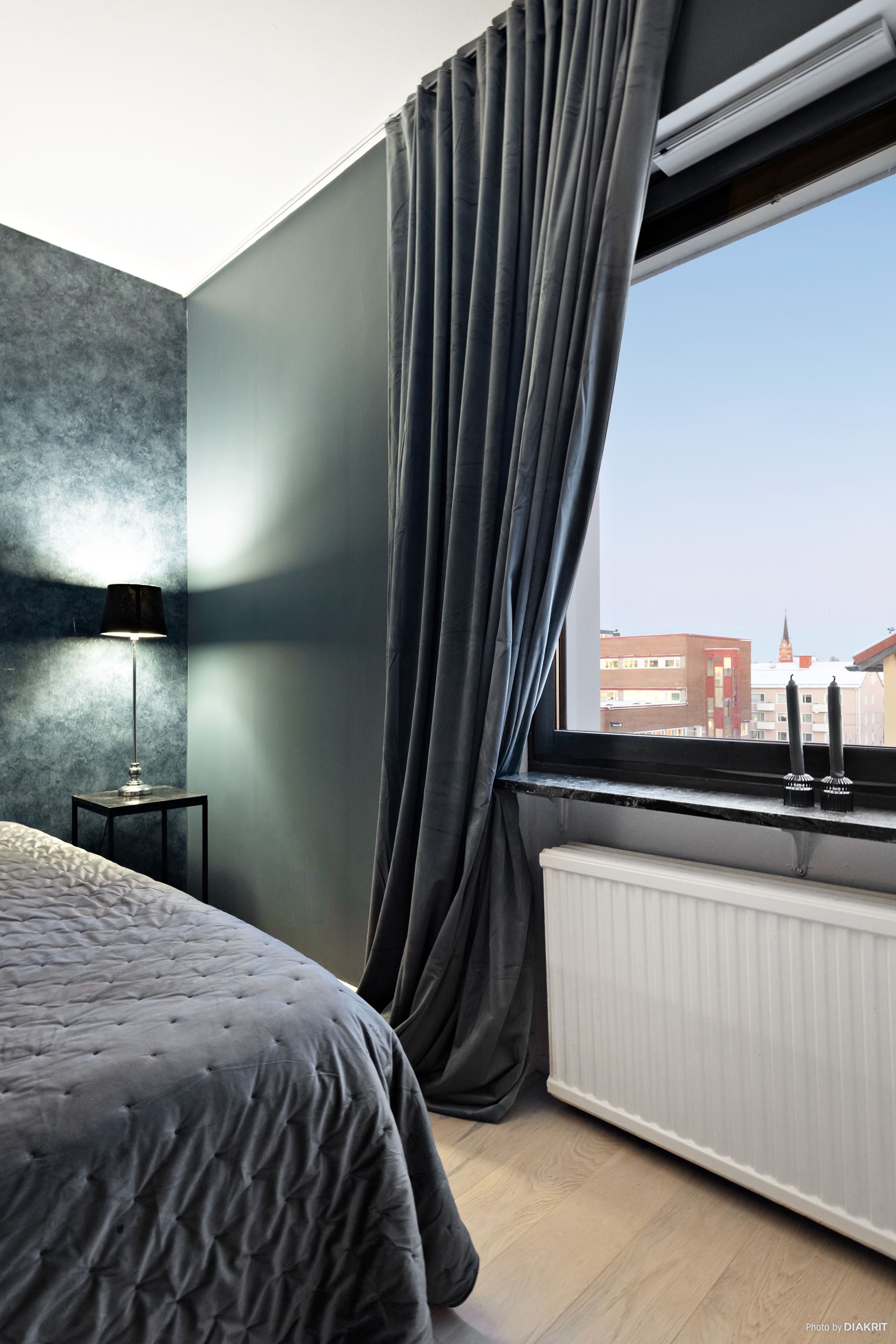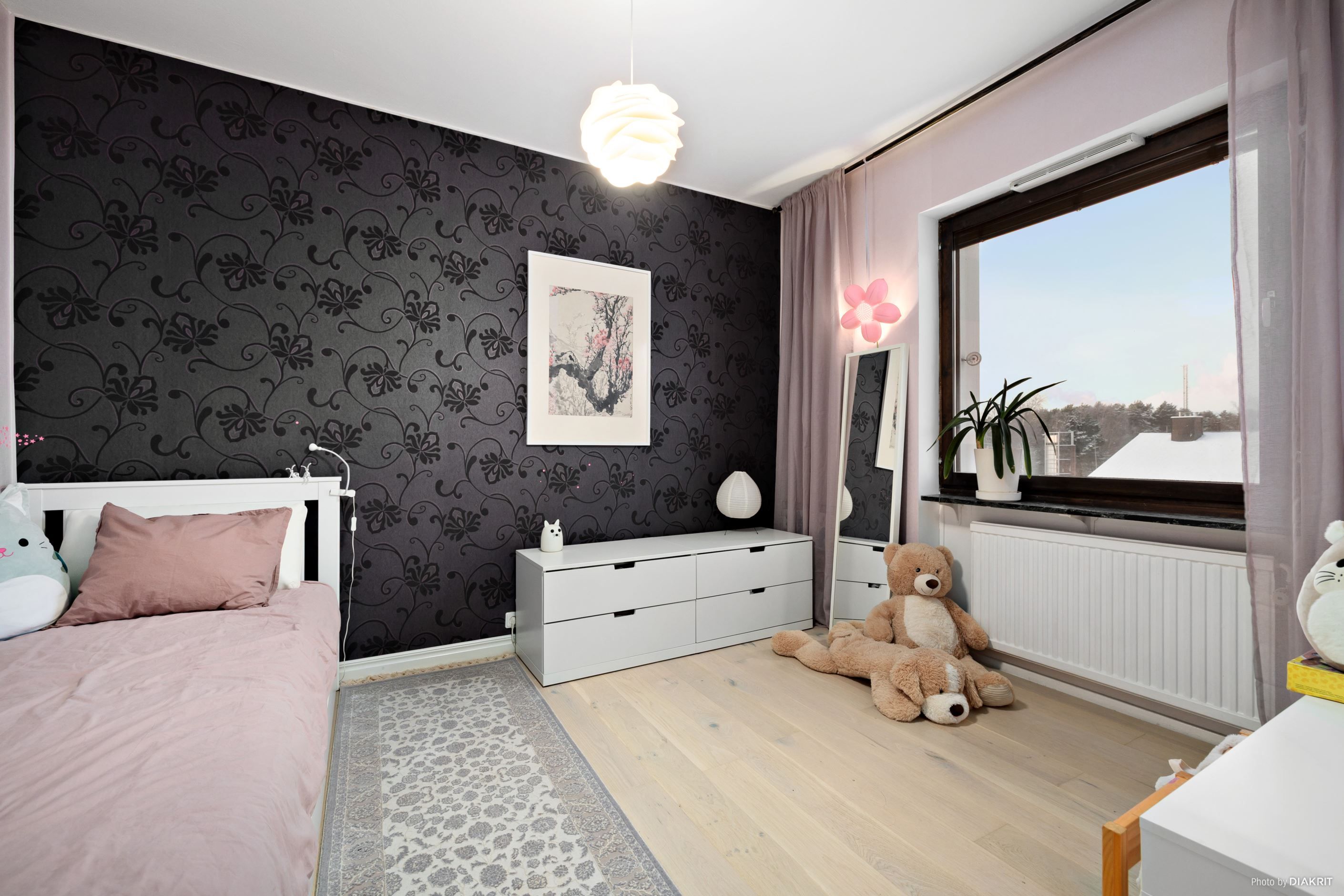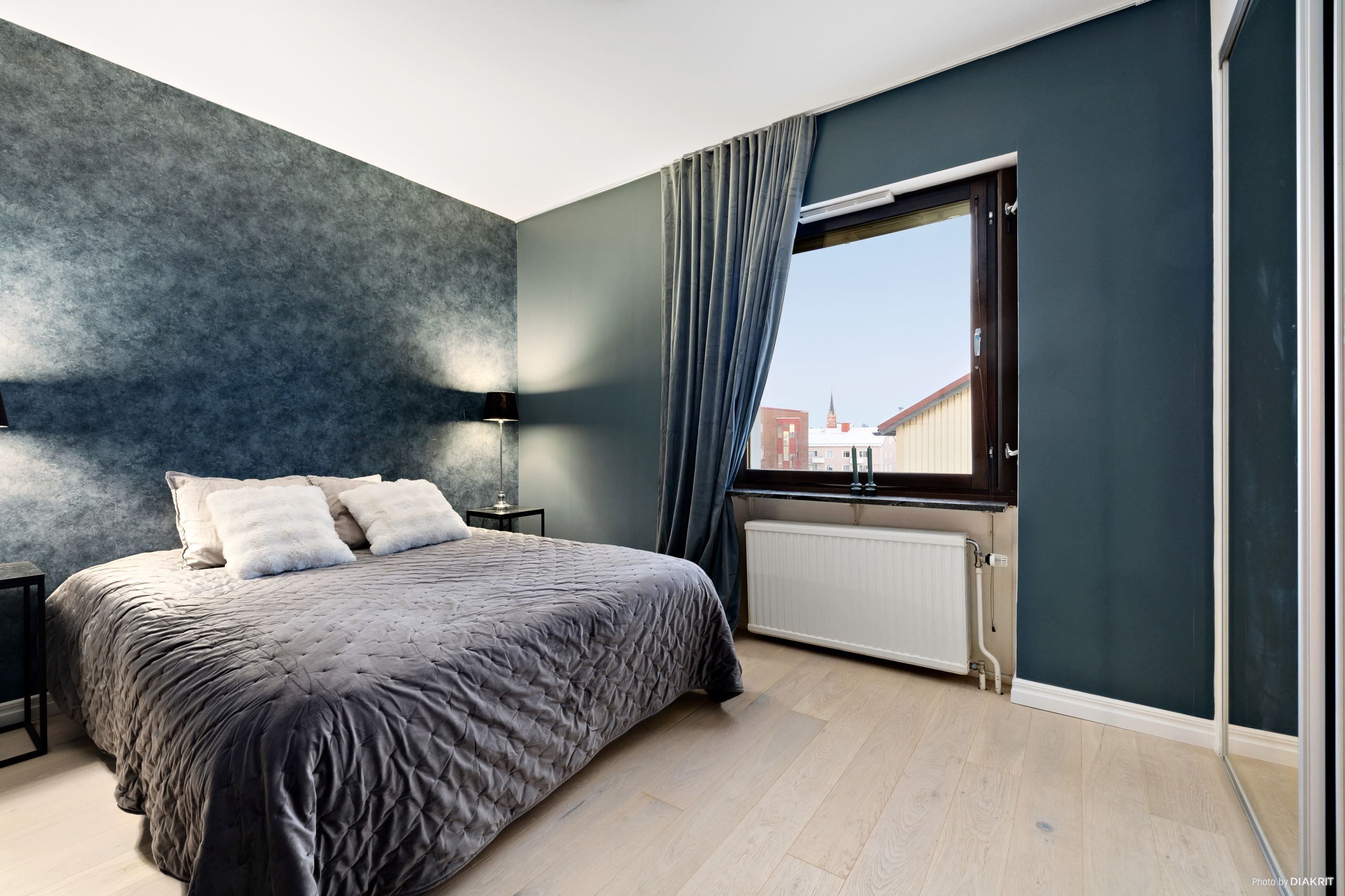 Bostaden rymmer två sovrum i bra storlek och har plats för både säng och förvaring.