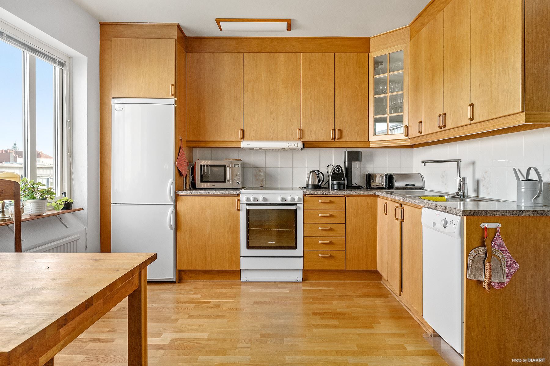 Välkommen till denna fantastiska 5-rumslägenhet om 108 kvm, perfekt för dig som söker ett rymligt och välplanerat boende. Lägenheten ligger på 2:a våningen och har genomgående parkettgolv som skapar en elegant och enhetlig känsla. Här finns en ljus och trivsam planlösning med rymliga rum, ett kök med plats för matbord och stora fönster som vetter mot innergården och stadens hustak – en utsikt som skapar en magisk atmosfär på kvällarna. Den inglasade balkongen i eftermiddagssol är en extra höjdpunkt, perfekt för avkoppling eller umgänge.