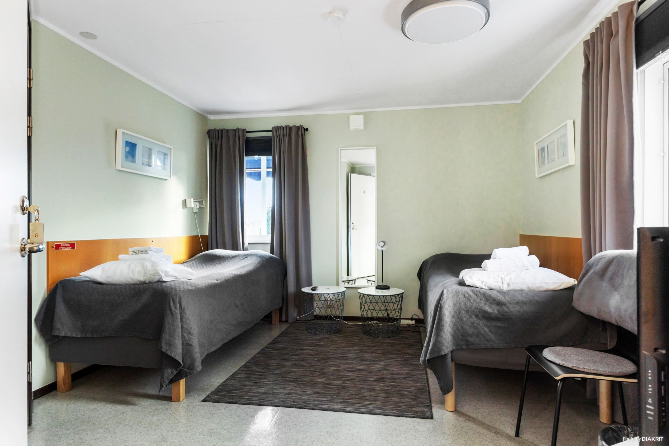Byggnaden omfattar åtta övernattningsrum, samtliga utrustade med egen WC/dusch, samt personalutrymmen, förråd och gemensamma ytor anpassade för tågpersonal.