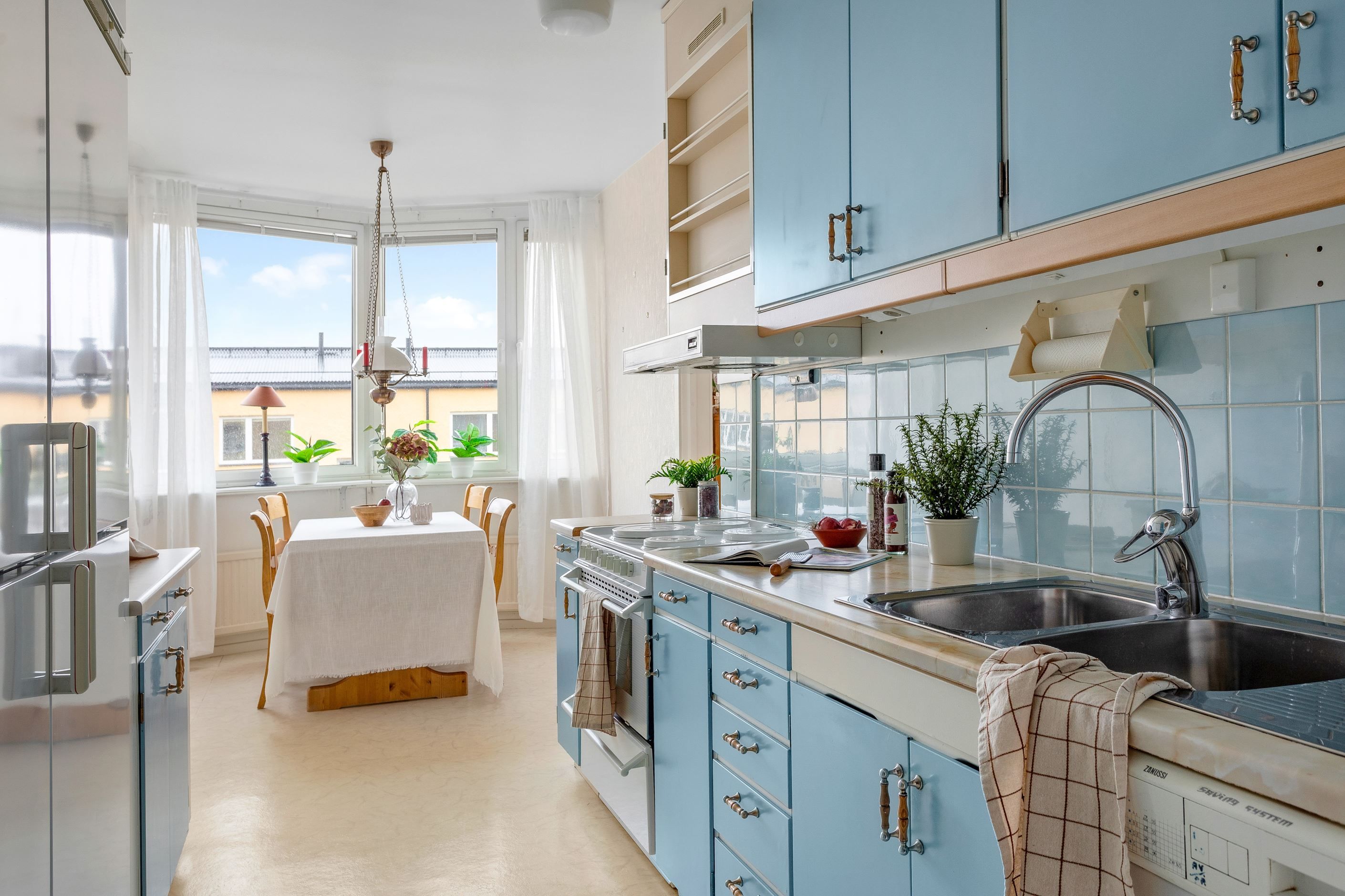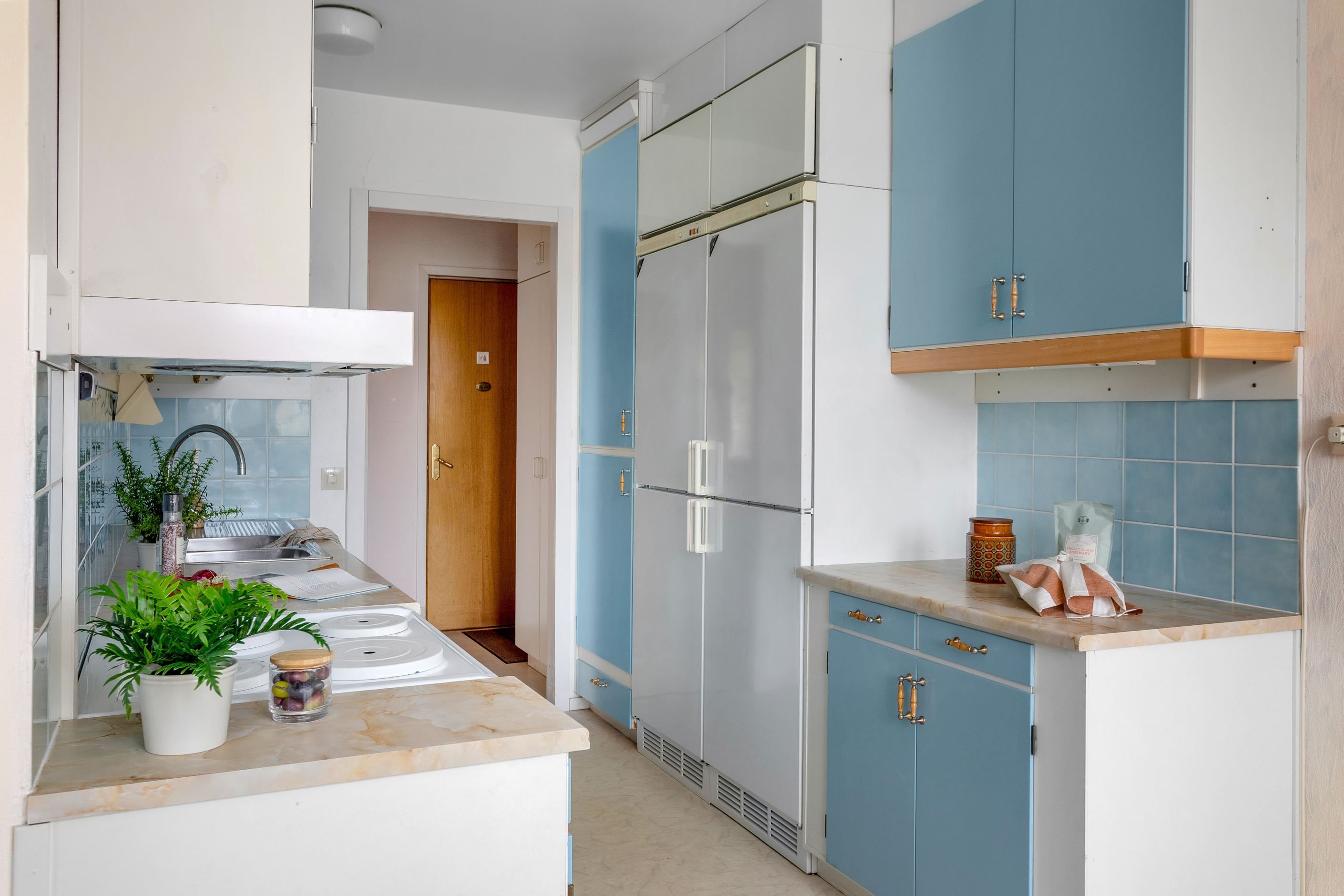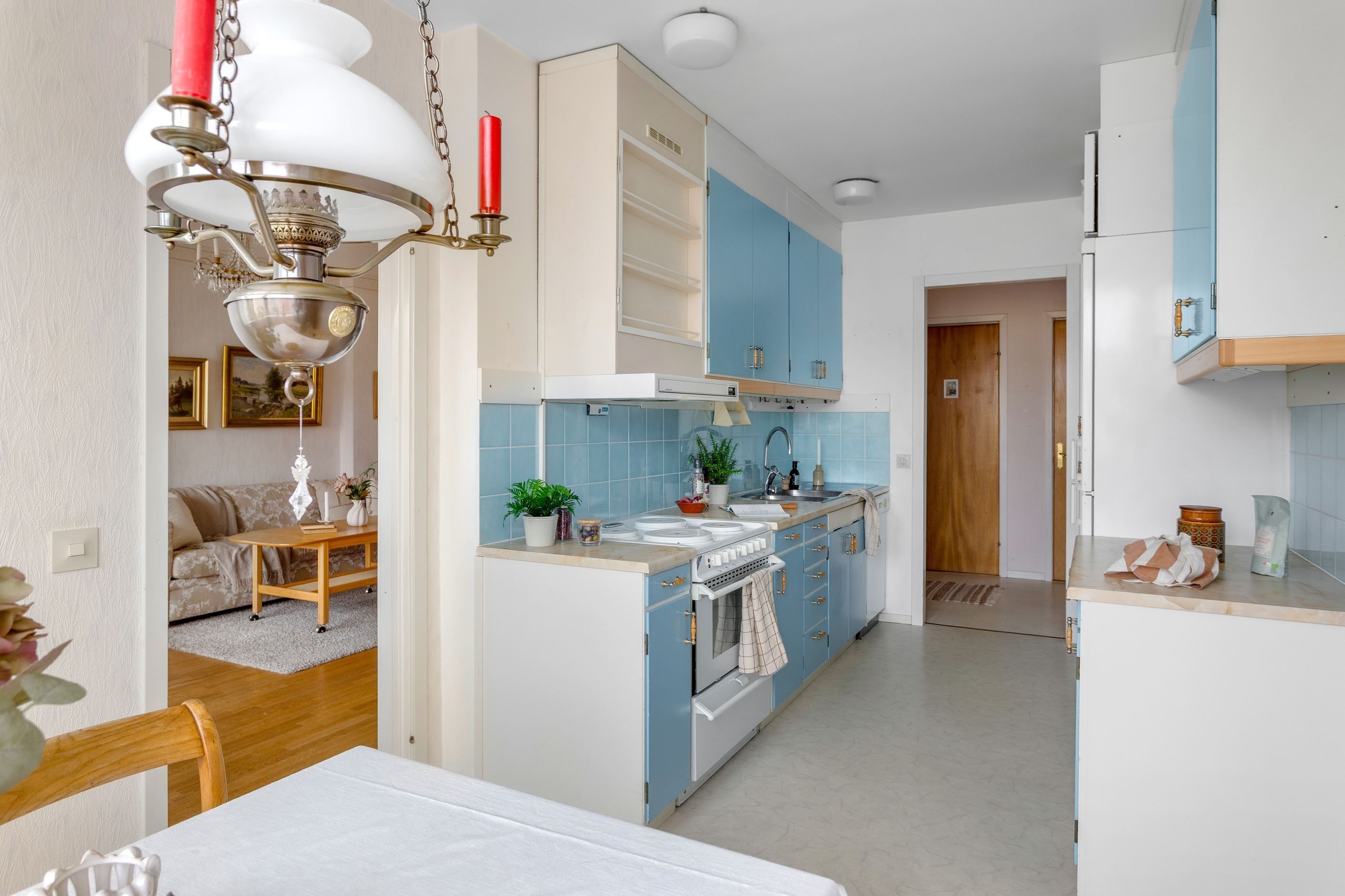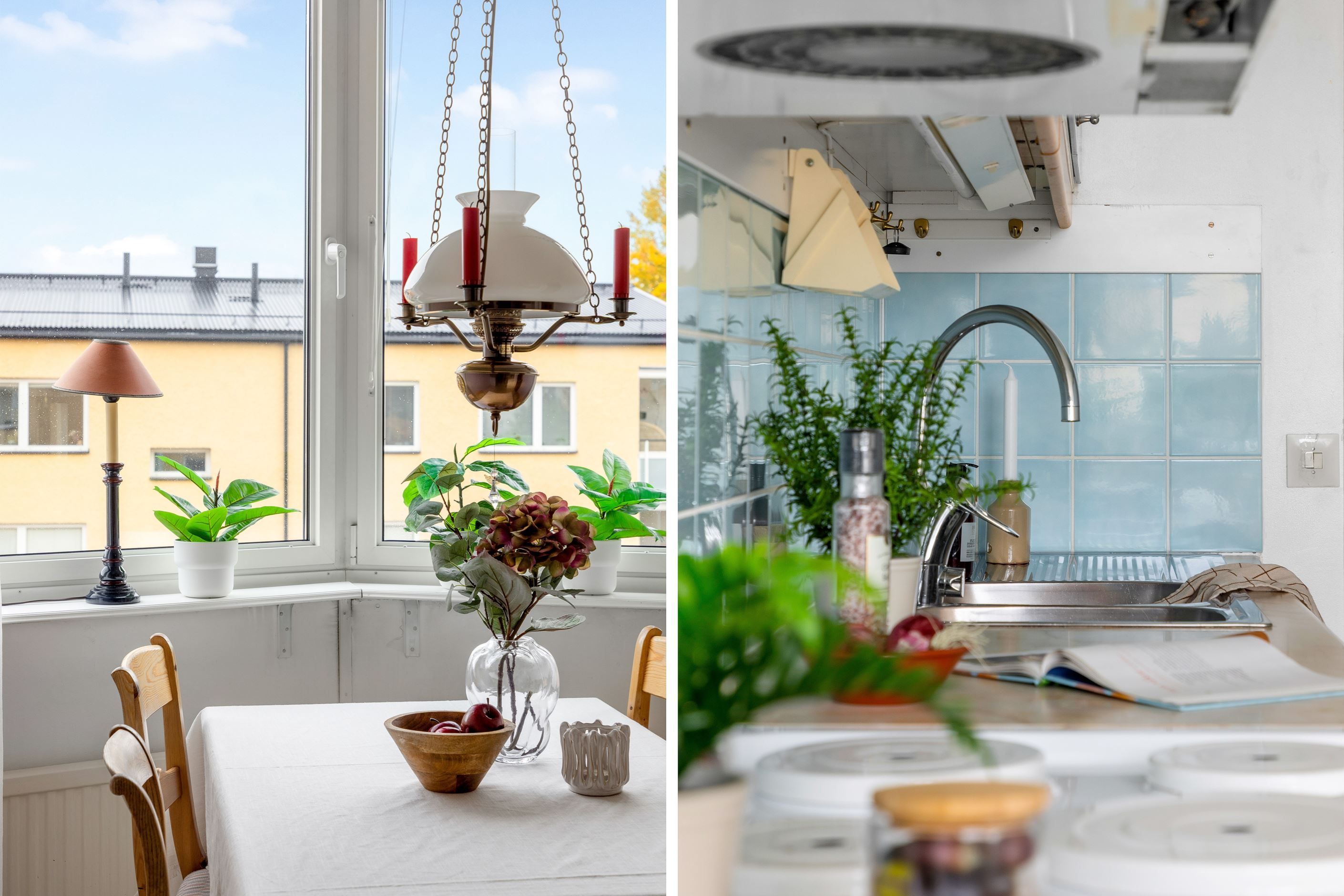 När ni tar första klivet in genom entrédörren välkomnas ni av den inbjudande hallen som vägleder er in till samtliga rum i bostaden. Intill hallen finner ni både ett stambytt wc/badrum och gäst-wc. I anslutning till hallen finner ni ett hemtrevligt och ljust kök med härligt burspråk som ger en ombonad känsla. I köket finns det matplats för ca 4–6 personer.