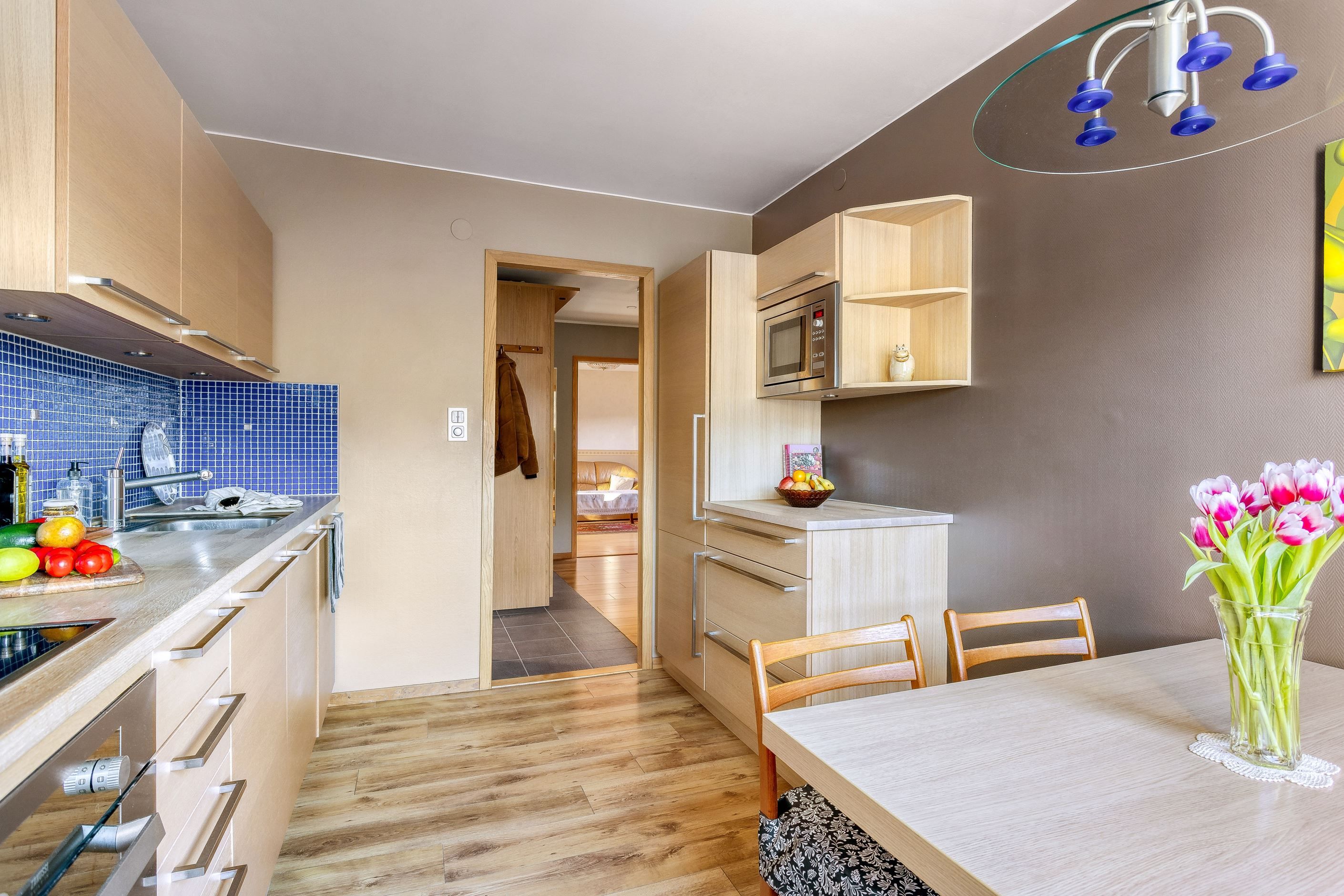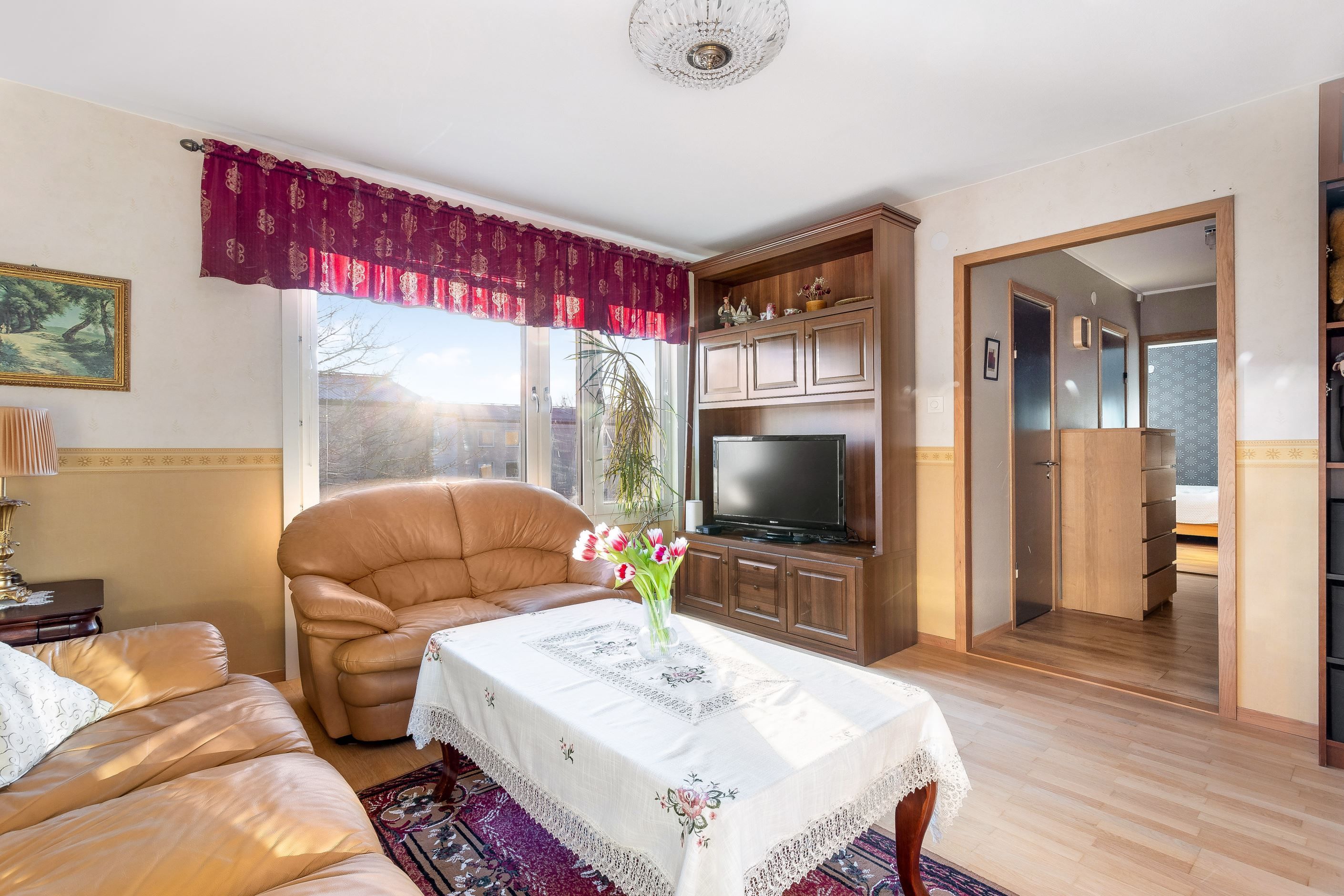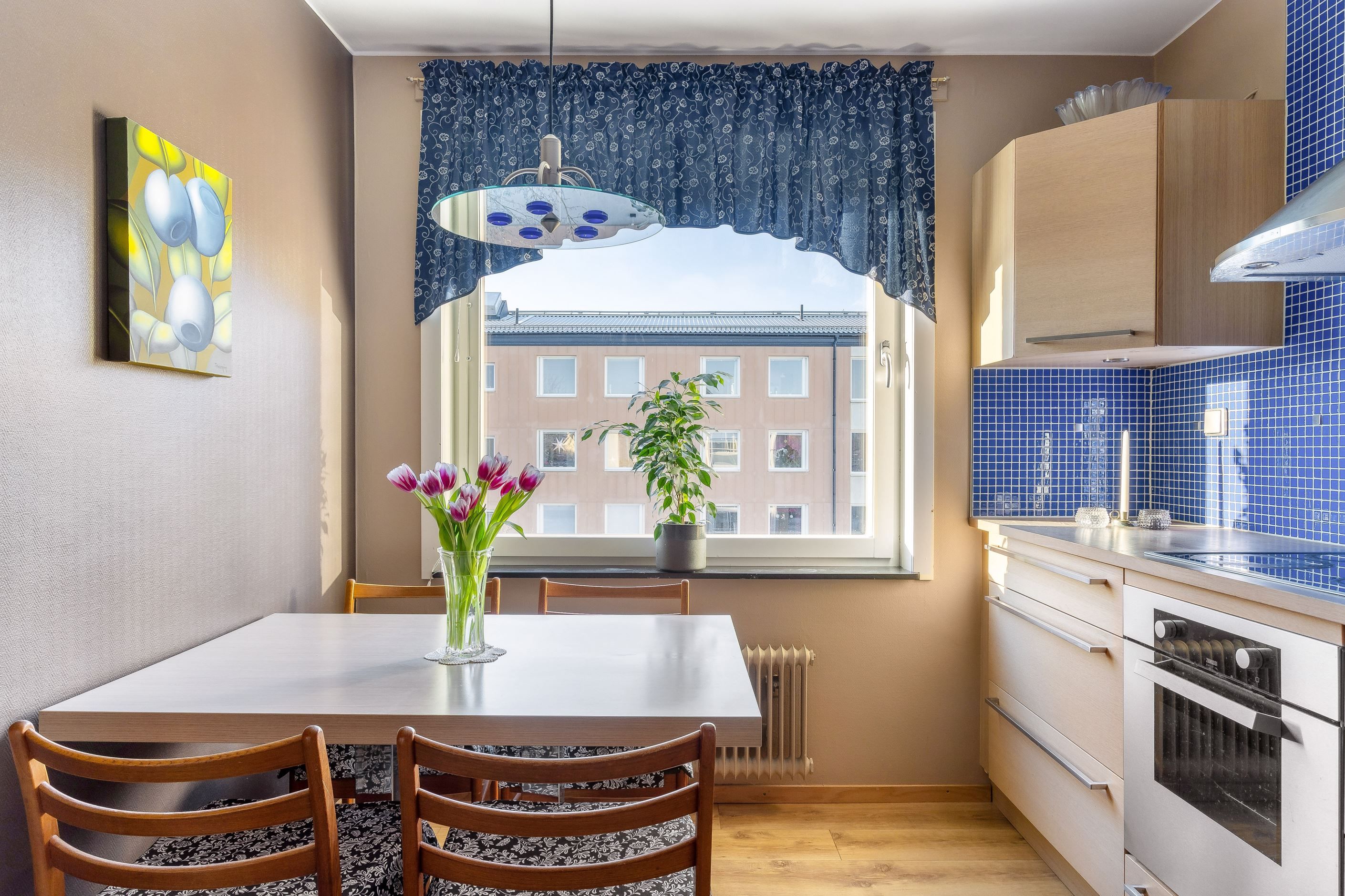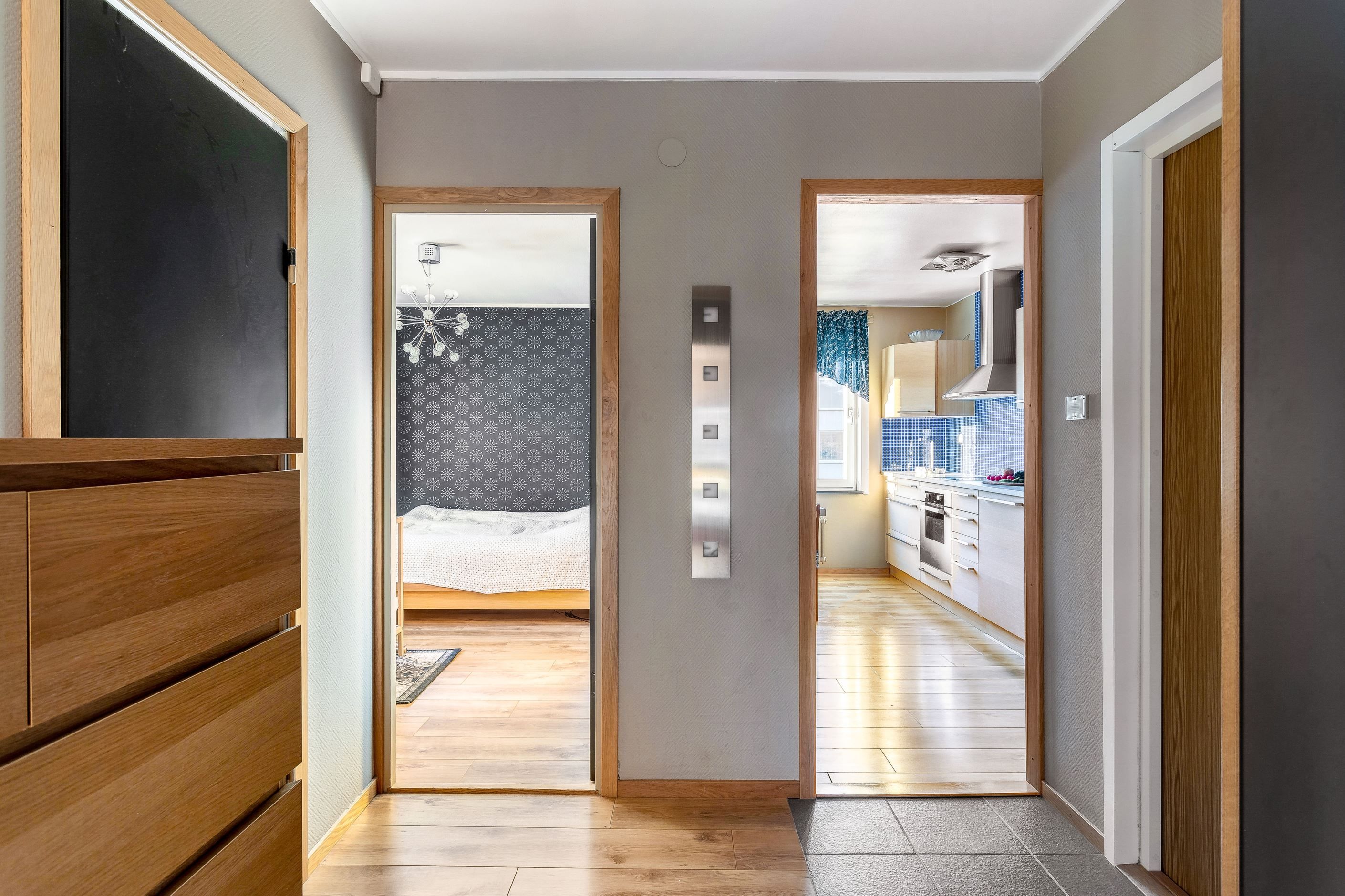 Vi välkomnas av en inbjudande och rymlig hall med goda avhängningsmöjligheter i en garderobsvägg. Här finns ett rymligt vardagsrum med flera fönster, ett sovrum samt ett praktiskt "minikontor". I bostadens rymliga renoverade kök finns allt man behöver för att laga en riktigt god festmåltid för familj och vänner. Köket har gott om plats för matbord och har bra förvaringsmöjligheter bakom snickerier i trä och arbetsbänkar i ek. Lägenhetens stambytta helkaklade badrum har badkar och vägghängd Wc.