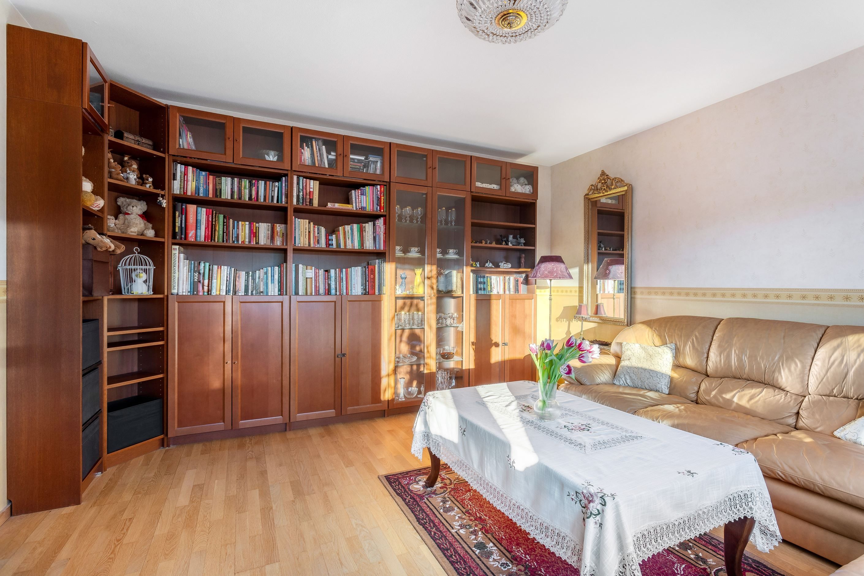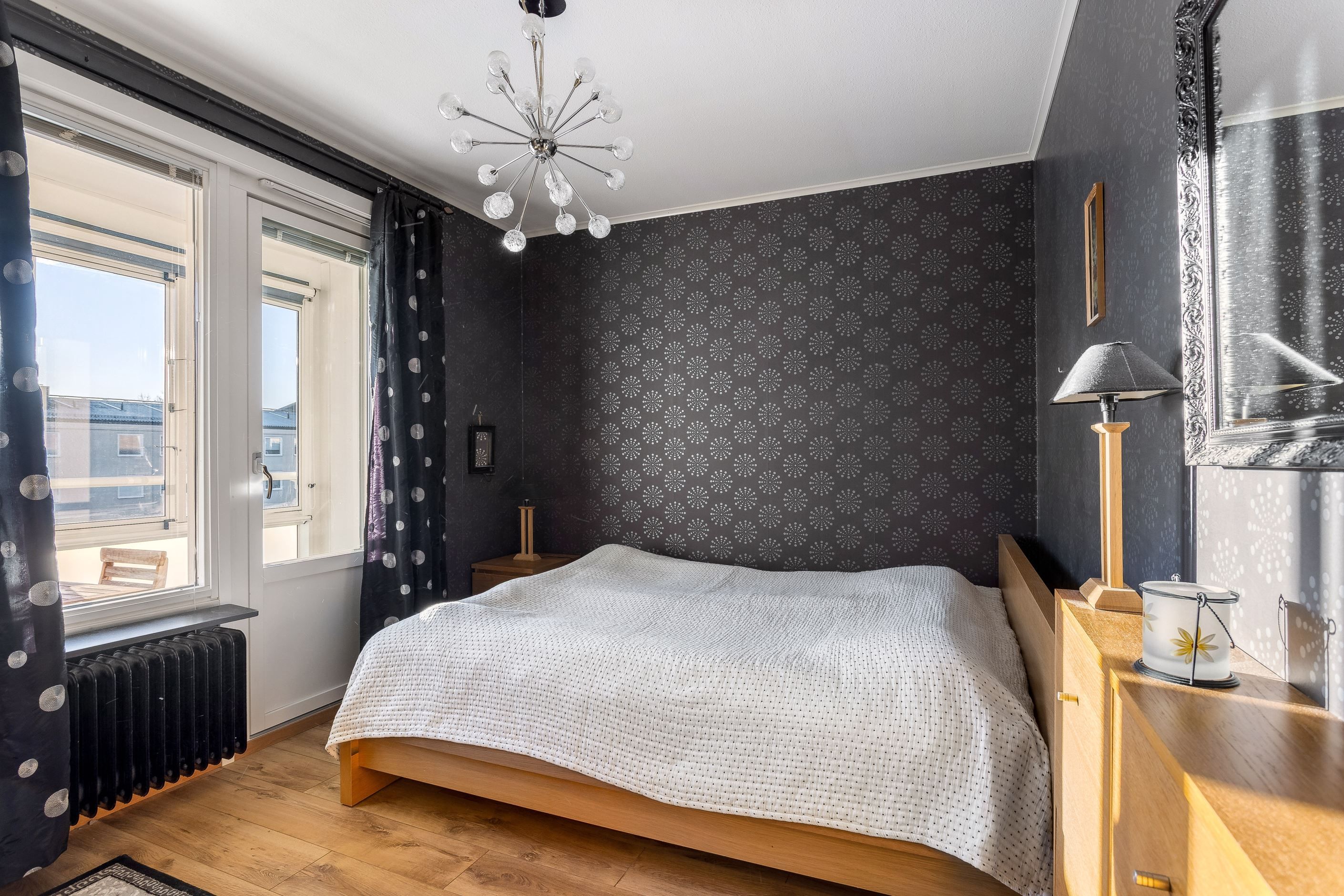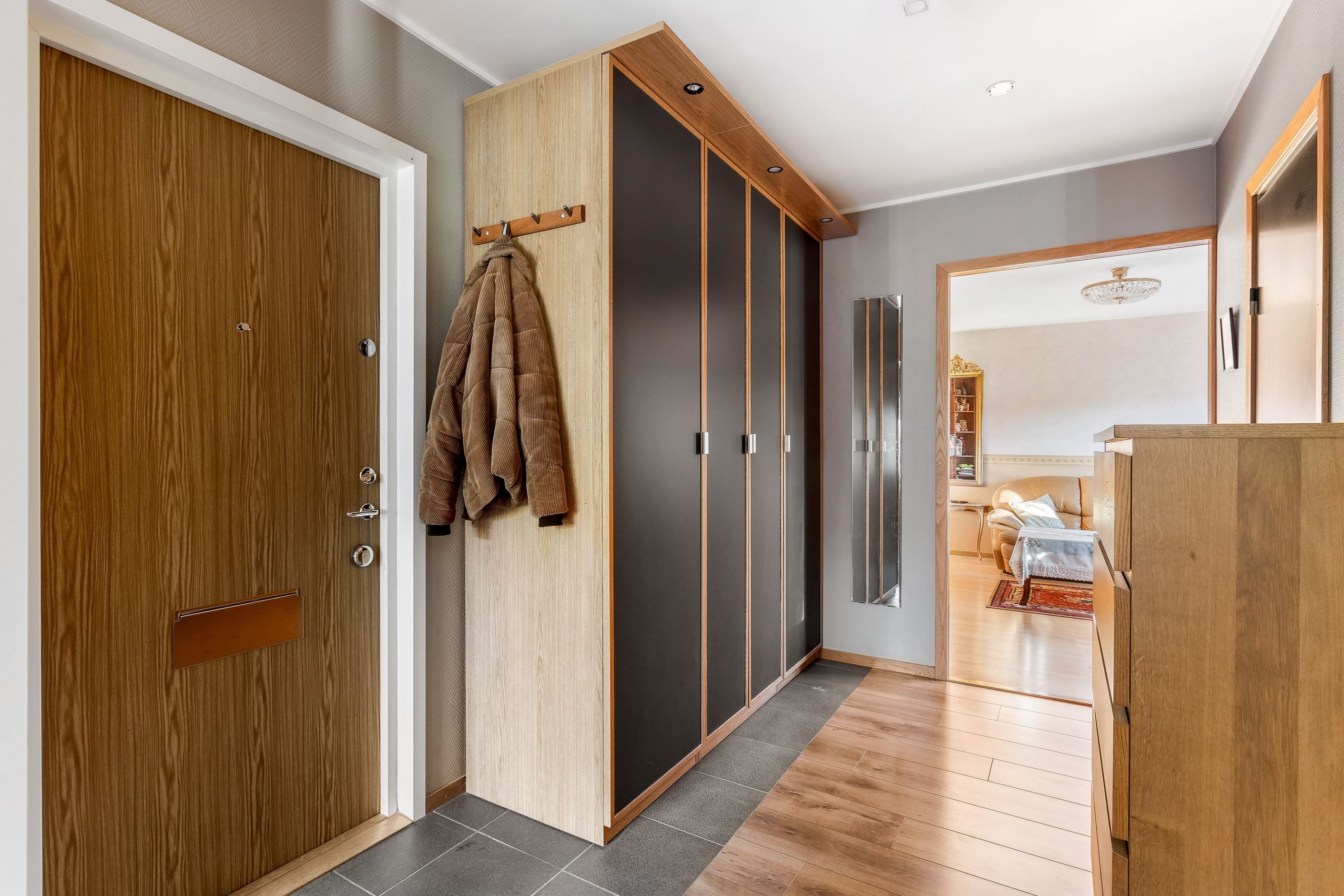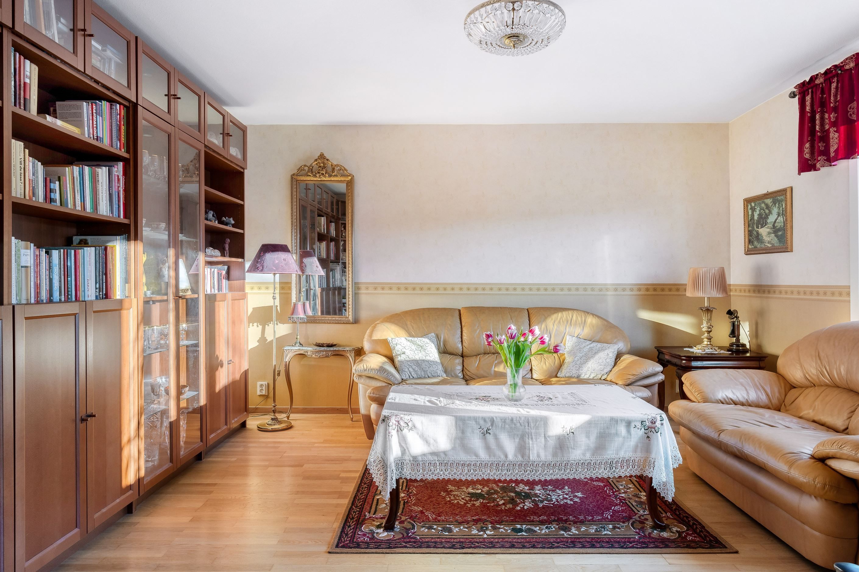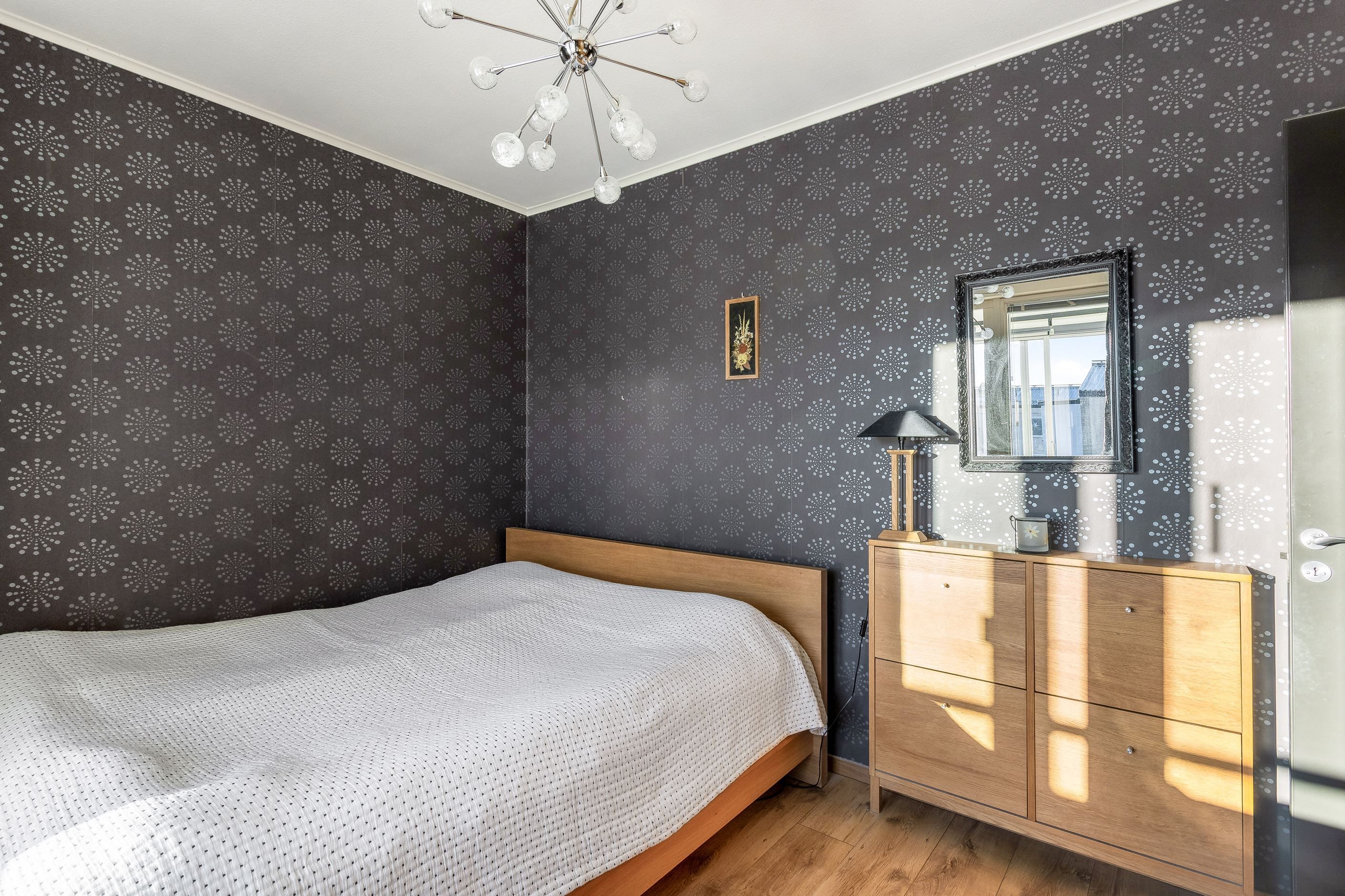 Vi välkomnas av en inbjudande och rymlig hall med goda avhängningsmöjligheter i en garderobsvägg. Här finns ett rymligt vardagsrum med flera fönster, ett sovrum samt ett praktiskt "minikontor". I bostadens rymliga renoverade kök finns allt man behöver för att laga en riktigt god festmåltid för familj och vänner. Köket har gott om plats för matbord och har bra förvaringsmöjligheter bakom snickerier i trä och arbetsbänkar i ek. Lägenhetens stambytta helkaklade badrum har badkar och vägghängd Wc.