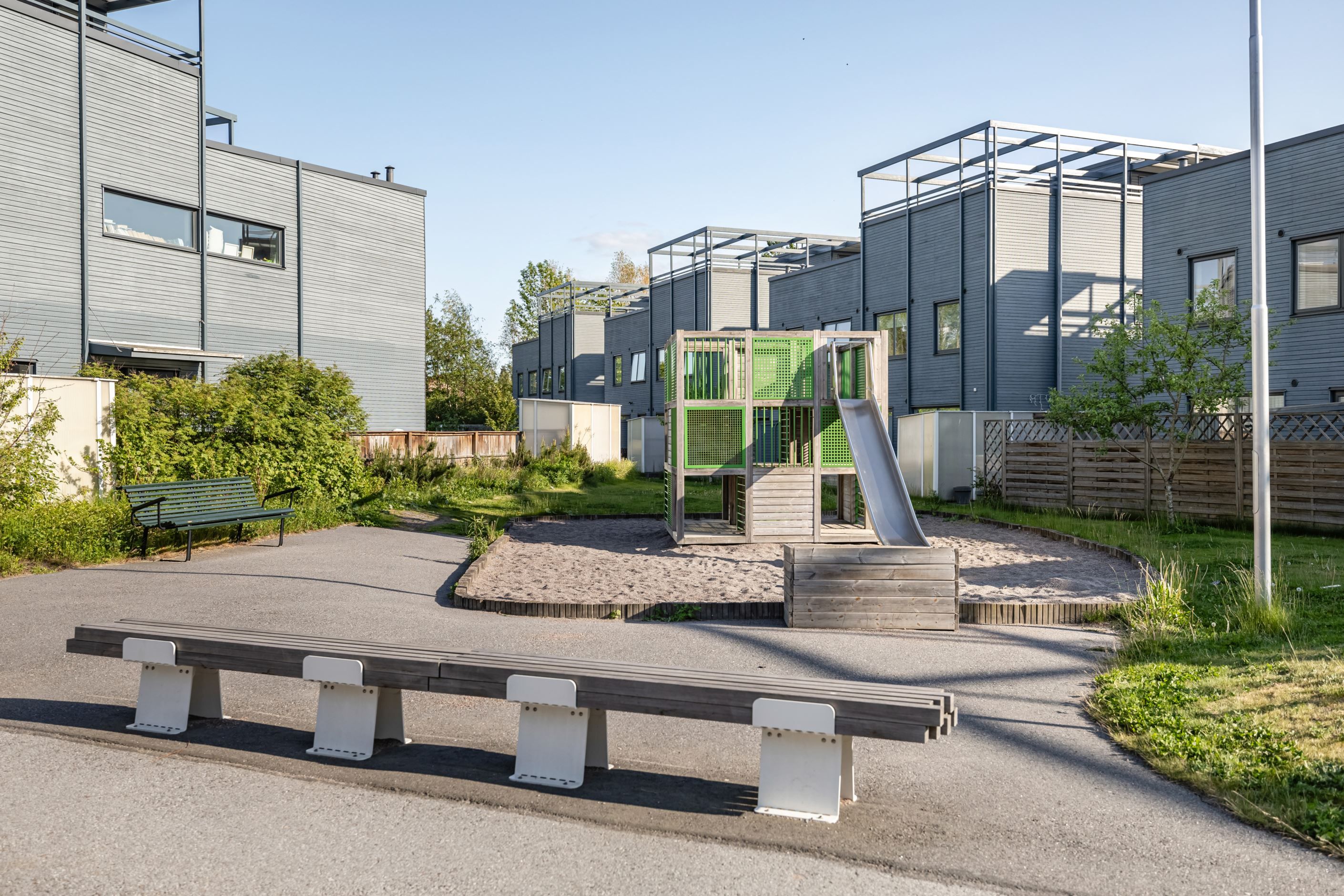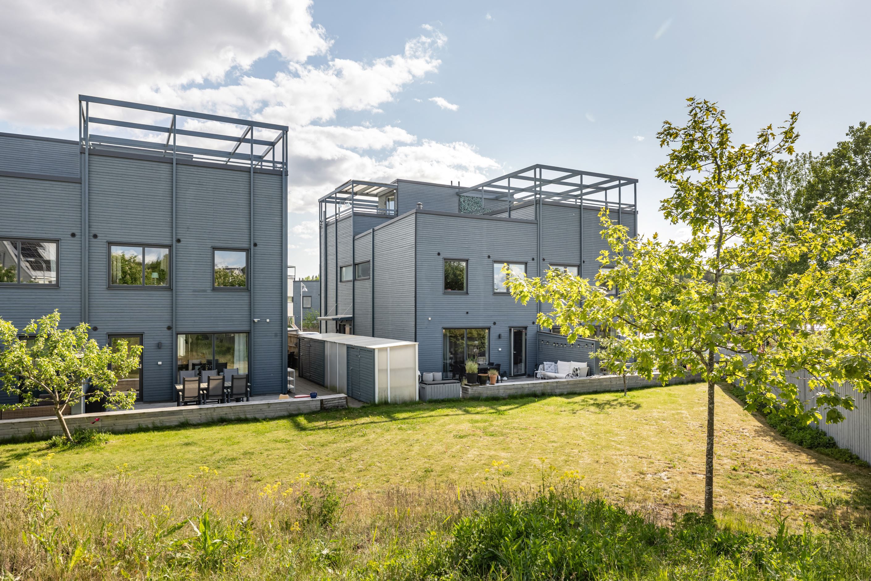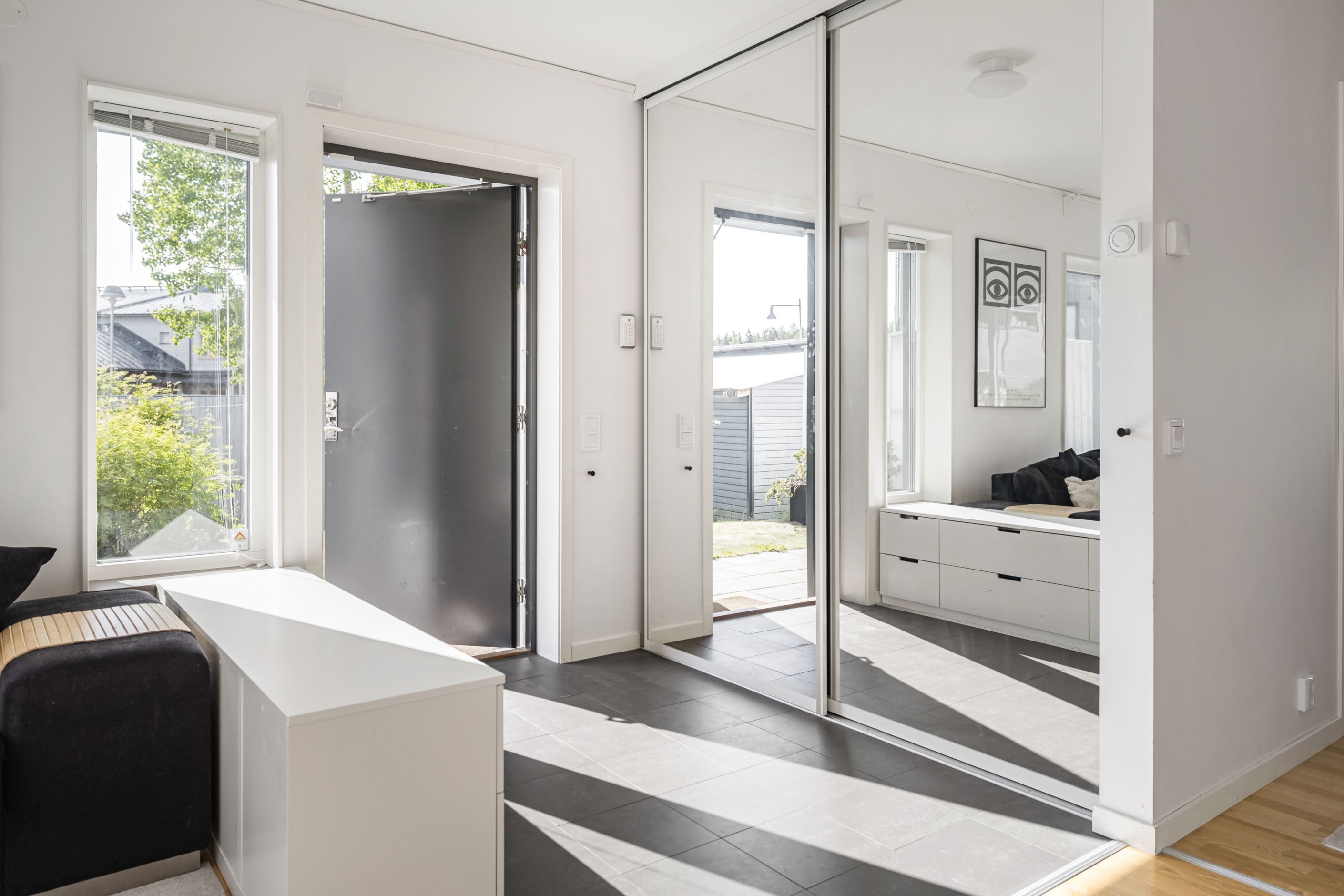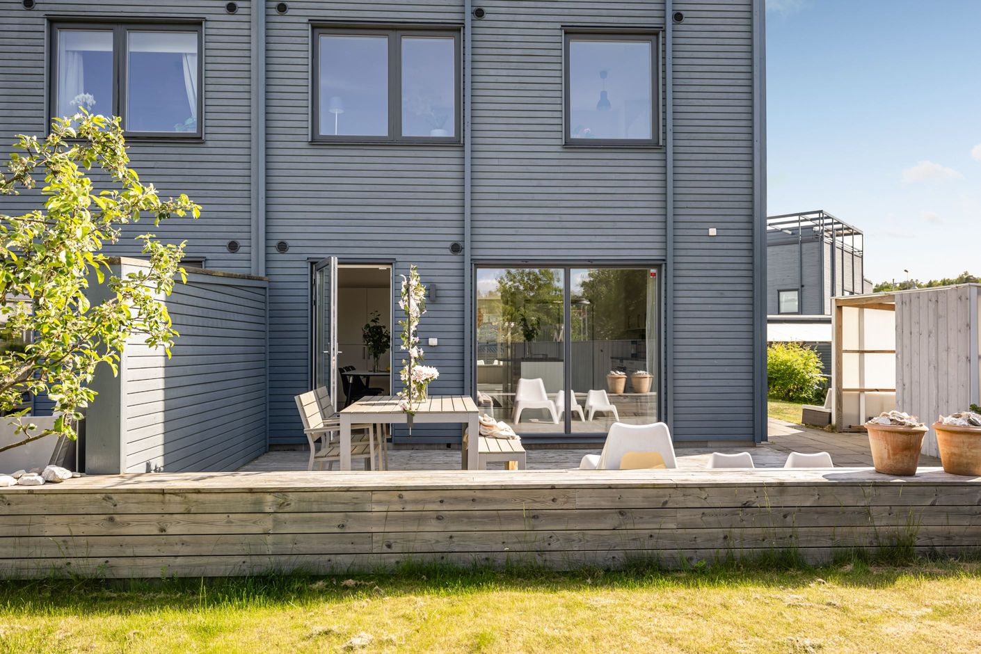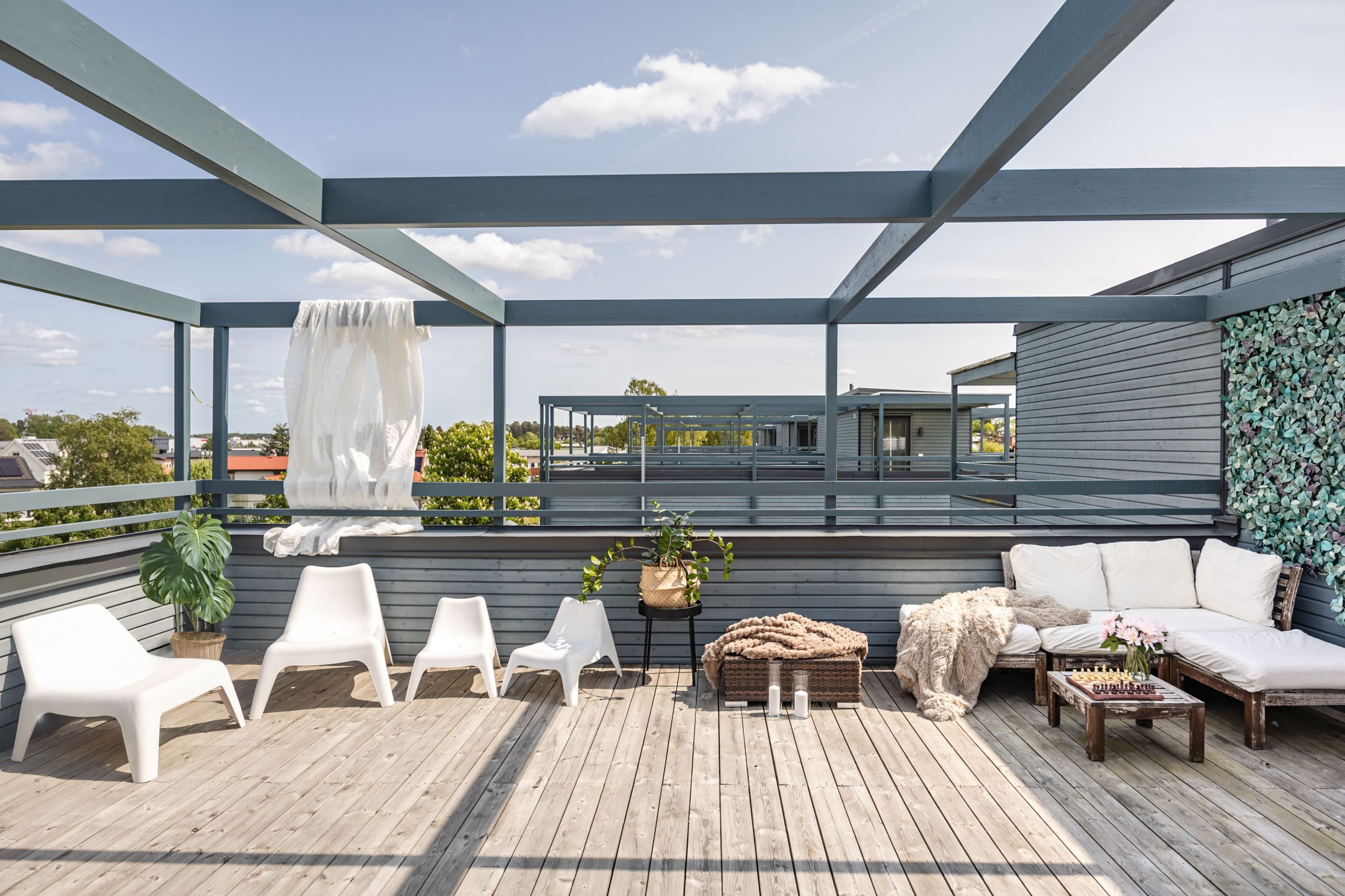 Äntligen är huset med troligtvis det bästa läget på gatan till salu! Nummer ett ligger givetvis med det bästa läget i området, på gaveln och med en stor gräsyta på sidan av huset samt en insynsskyddad baksida med morgonsol och eftermiddagssol. På framsidan av huset finns parkering för 2-3 bilar. På sidan av huset erbjuds en stor gräsmatta och här finns sol större delar av dagen. När kvällen kommer och man vill vara lite privat förflyttar man enkelt middagen till baksidan av huset. Baksidan är insynsskyddad och perfekt för den som vill avnjuta middagen i lugn och ro med vänner. Som om läget på huset inte var bra nog - här har du en makalös takterrass på 43 kvm; den större varianten i området. Takterrassen är väldigt uppskattad av dom boende i området, här får du plats med både matbord och loungegrupp.