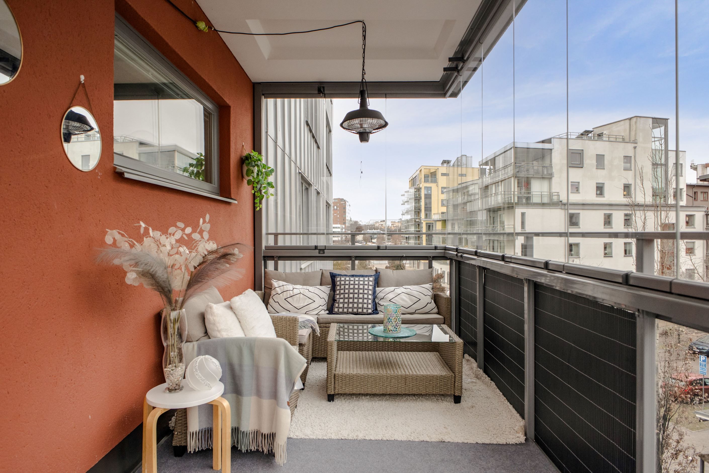 Den stora, inglasade balkongen blir snabbt hemmets favoritplats med utsikt över Mälarens glittrande vatten från två håll. Perfekt för morgonkaffet, mysiga kvällar eller härligt sociala stunder. Balkongen nås enkelt från ett av sovrummen med rofyllt läge mot innergården.