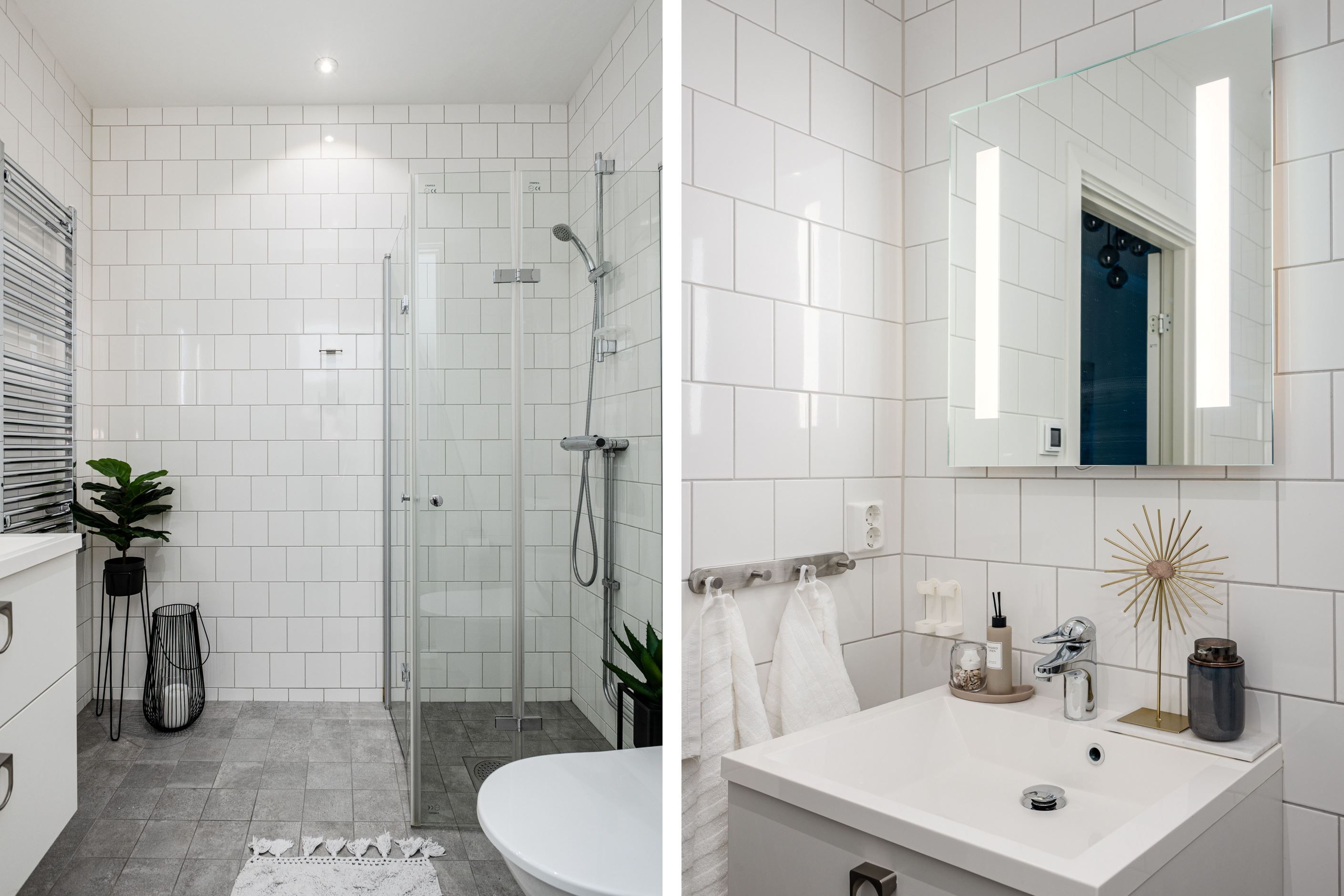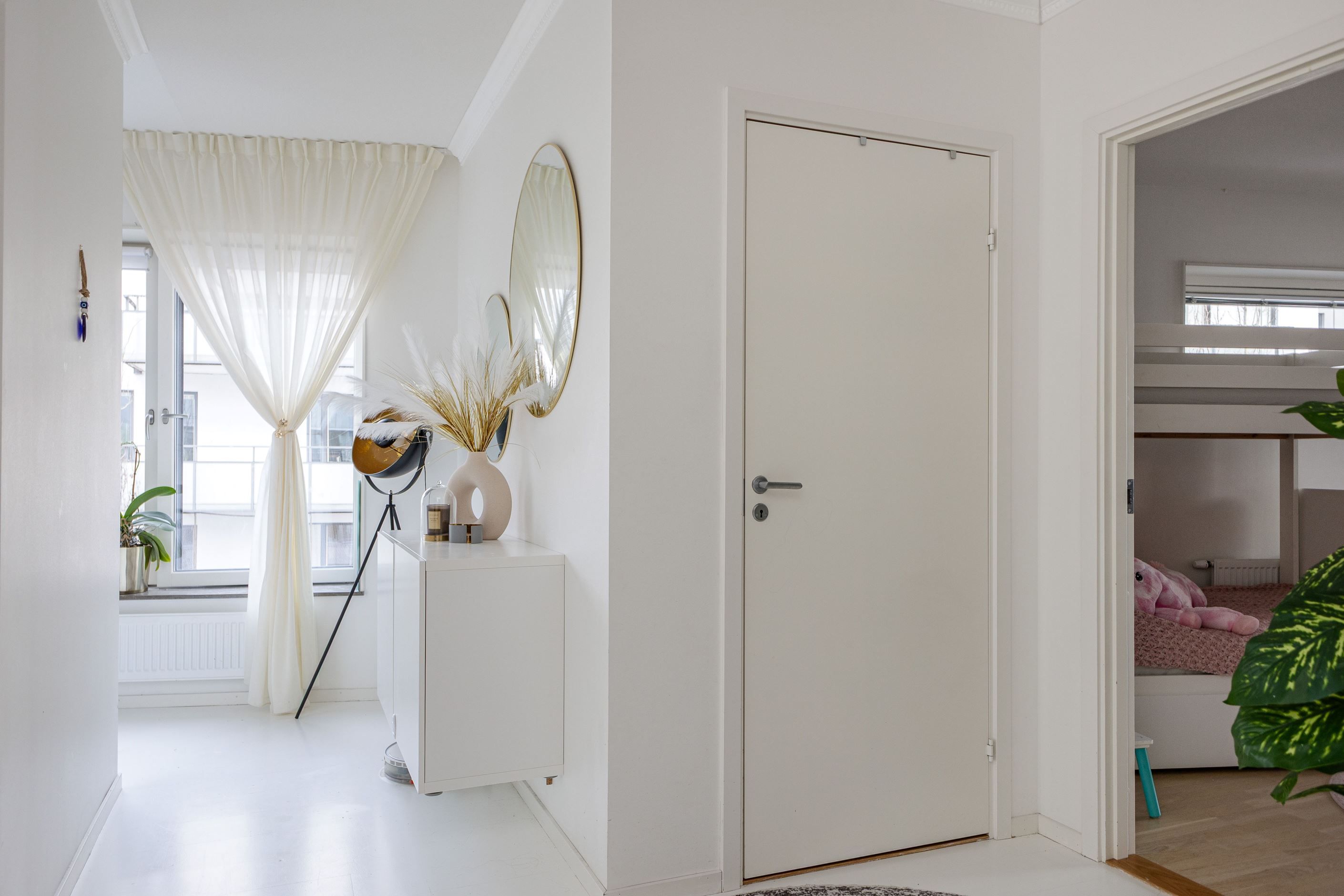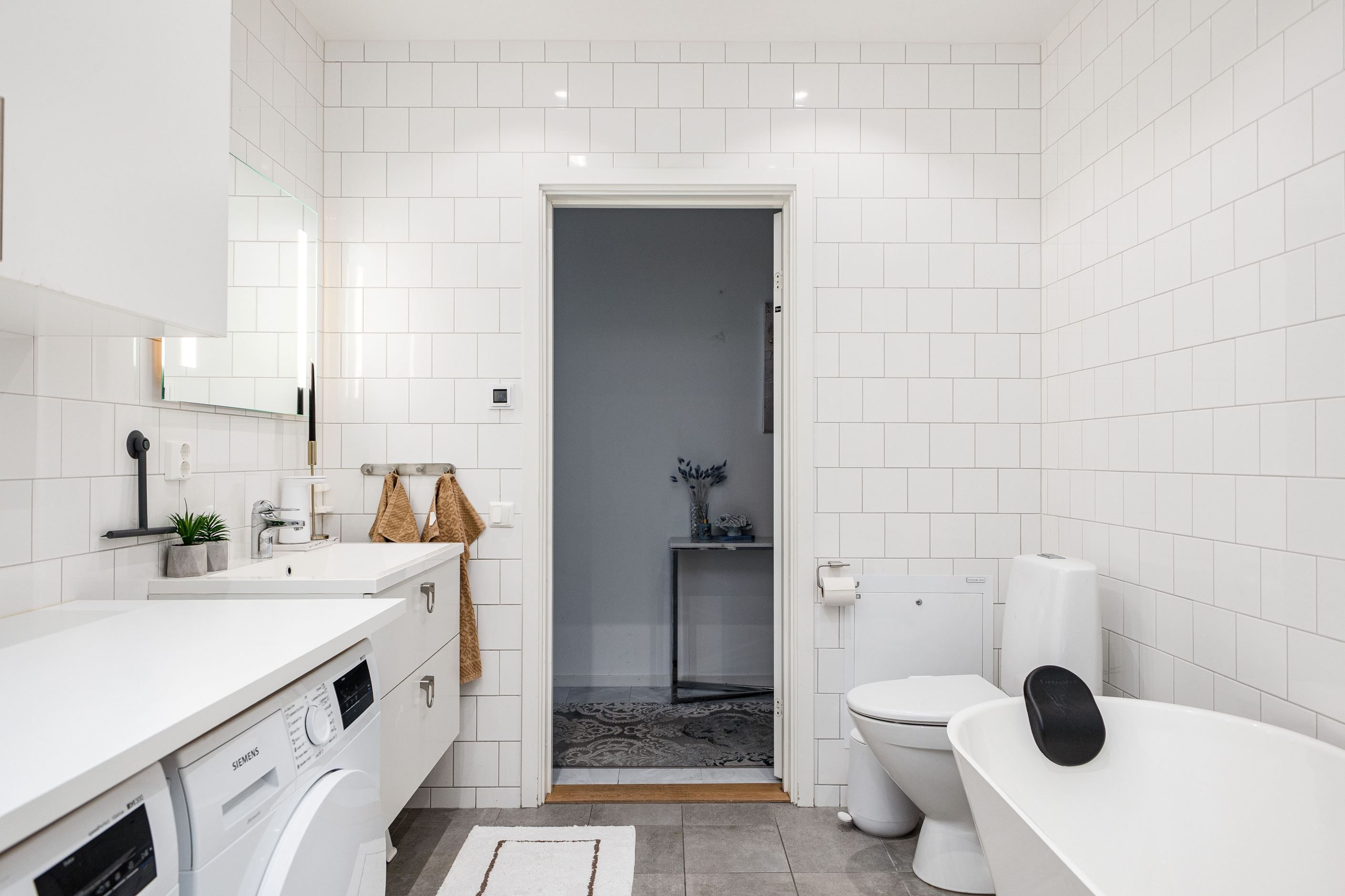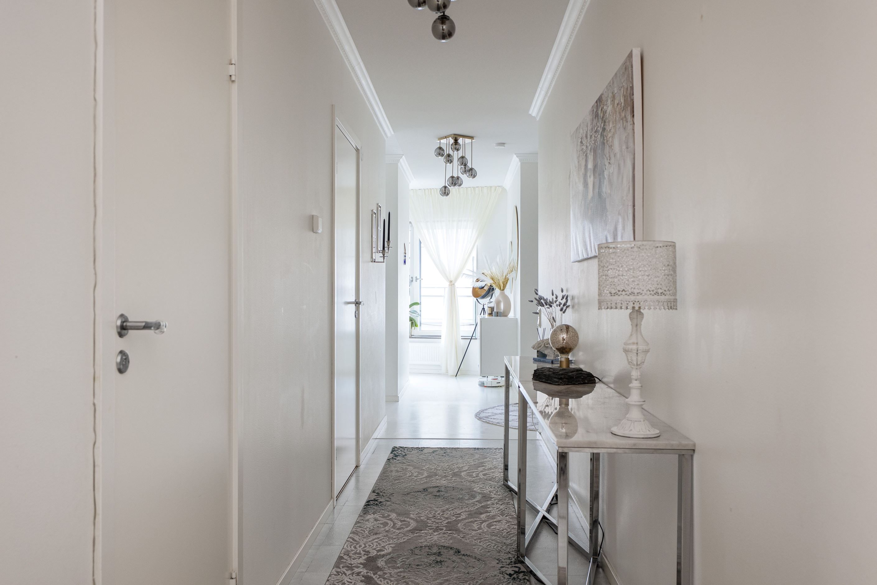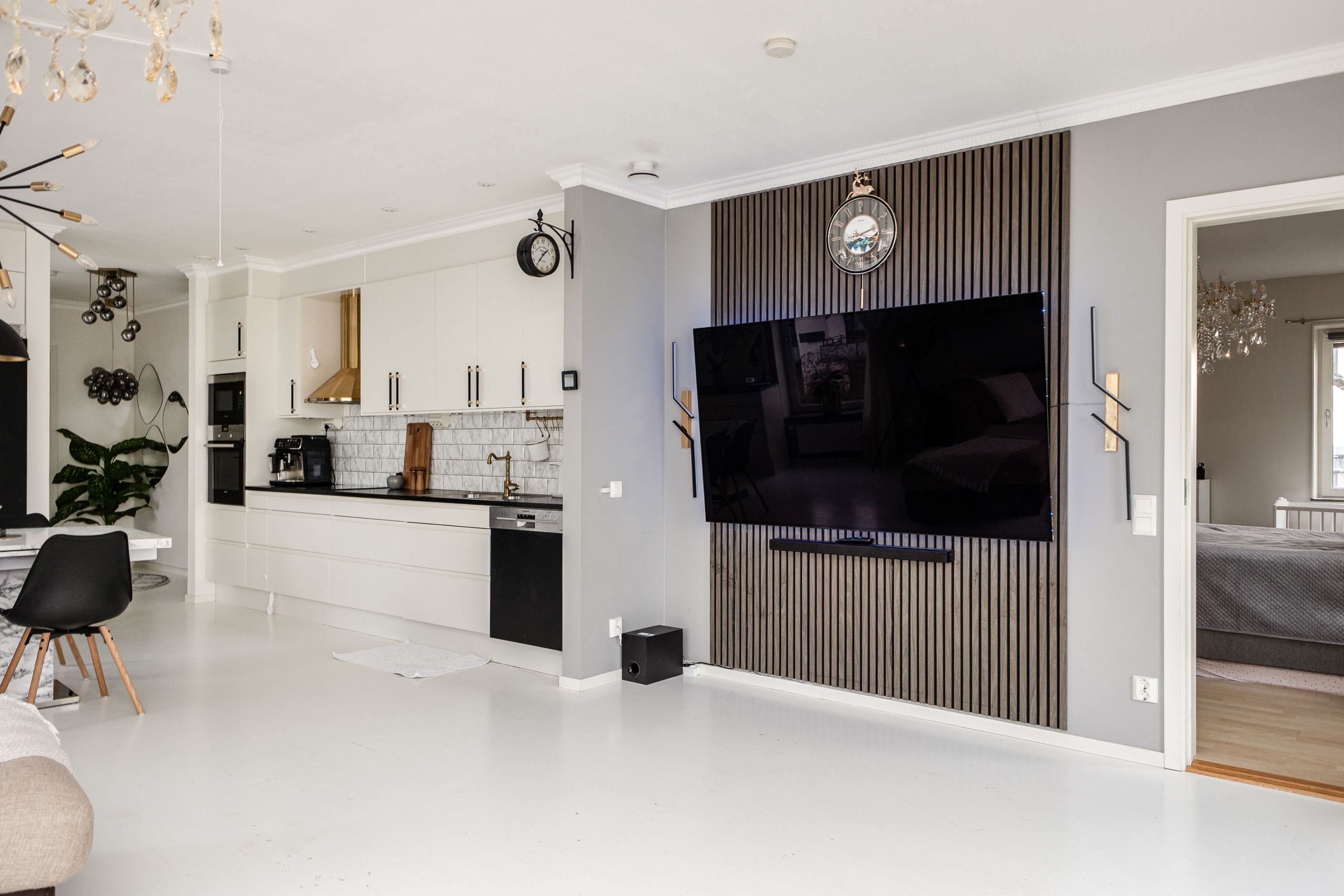 Hallen med goda förvaringsmöjligheter välkomnar dig in i bostaden och följer dig vidare in i det öppna köket och vardagsrummet. Här skapas en perfekt plats för middagar, umgänge och avkoppling, där varje kvadratmeter är genomtänkt in i minsta detalj. De tre rymliga sovrummen erbjuder gott om yta och flexibilitet för både familjeliv, hemmakontor eller gästrum. Bostaden har dessutom två stilfullt helkaklade badrum, varav ett med en smart integrerad tvättavdelning.