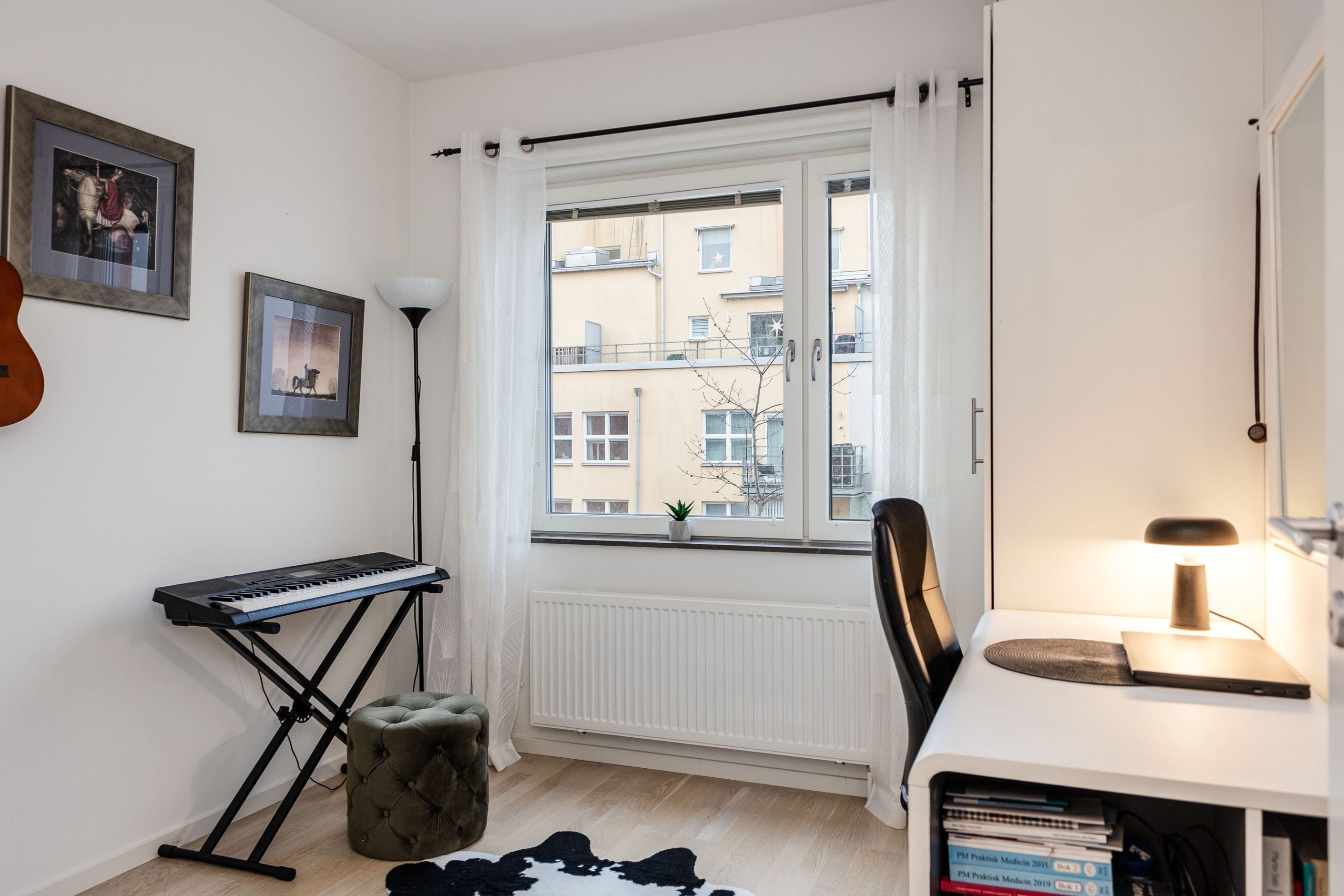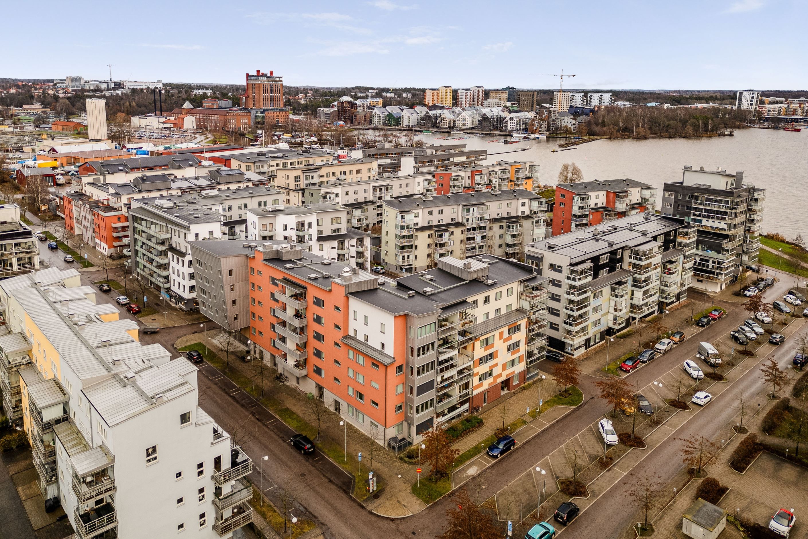 Här bor du i en välskött förening och med det bästa av två världar - lugnet från vattennära miljöer och direkt närhet till stadens puls. Endast en kort promenad tar dig till centralstationen, citykärnan och ett brett utbud av restauranger och service.