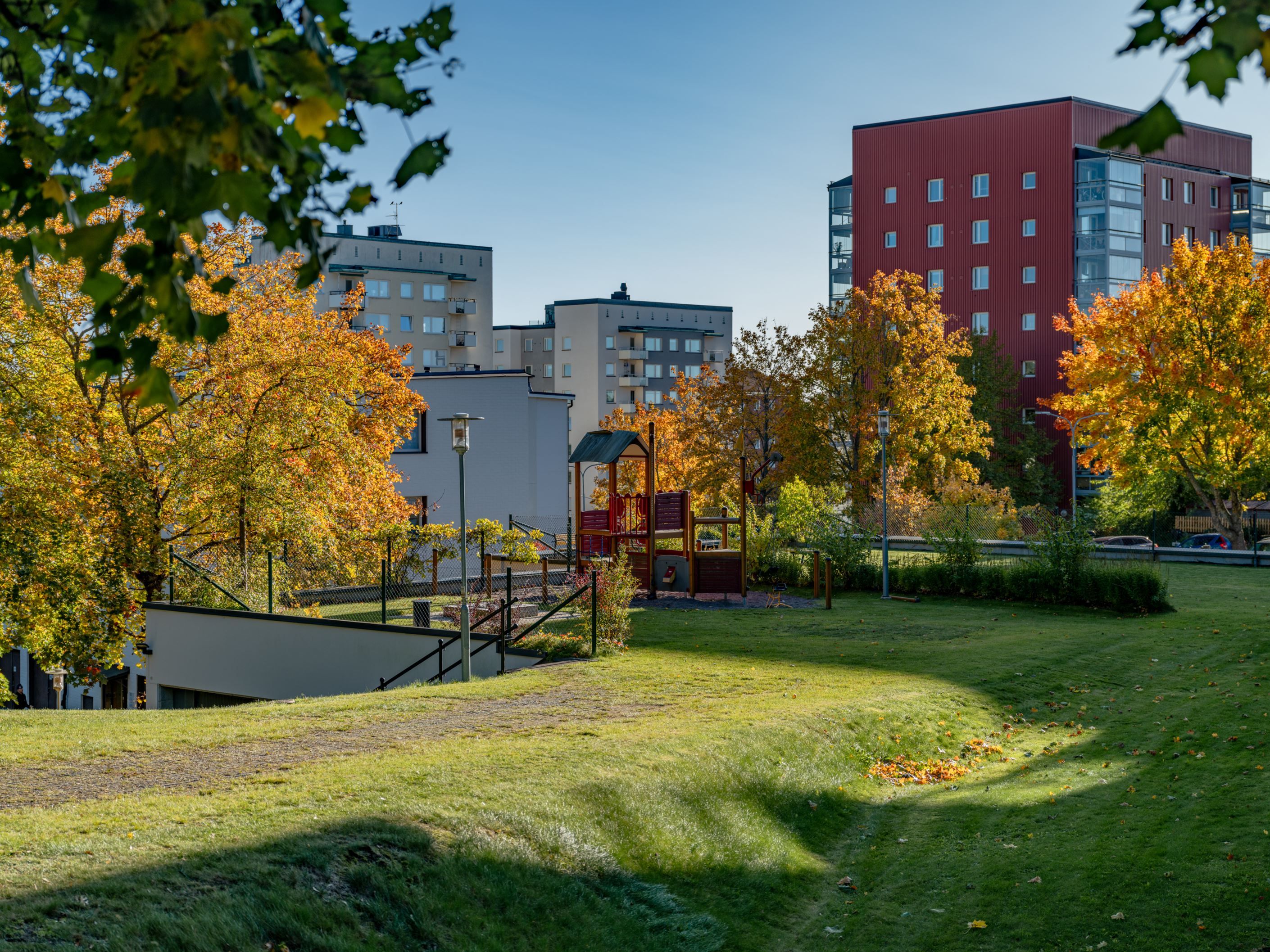 På Näset bor du i ett lugnt, familjevänligt och naturnära område på norra Lidingö. Här omges du av vackra grönområden med fina promenad- och joggingstråk samt närhet till Kyrkvikens och Askrikes vatten med flera badplatser. För den som gillar ett aktivt liv finns gott om fritidsmöjligheter – fotbollsplan, skidspår, golfbana, utegym och tennishall ligger alla i närområdet. Kyrkvikens småbåtshamn är en självklar plats för båtälskare, medan Grönsta gärde lockar med Lidingöloppets klassiska spår och det mysiga Lidingö Musteri & fik. Centralt i området ligger Källängstorget, som erbjuder en ICA-butik, restauranger och annan service. Kommunikationerna är mycket goda, med buss 203 till Ropsten på ca 8 minuter eller bilresa till Stockholms city på 15 minuter. Cykelvägen till Ropsten är snabb och smidig, och med buss 238 når du enkelt flera knutpunkter på Lidingö så som Hersby gymnasium, Lidingö Centrum, Torsvik, Millesgården och Bodal. Området är perfekt för barnfamiljer, med ett brett utbud av skolor och förskolor i närområdet.
