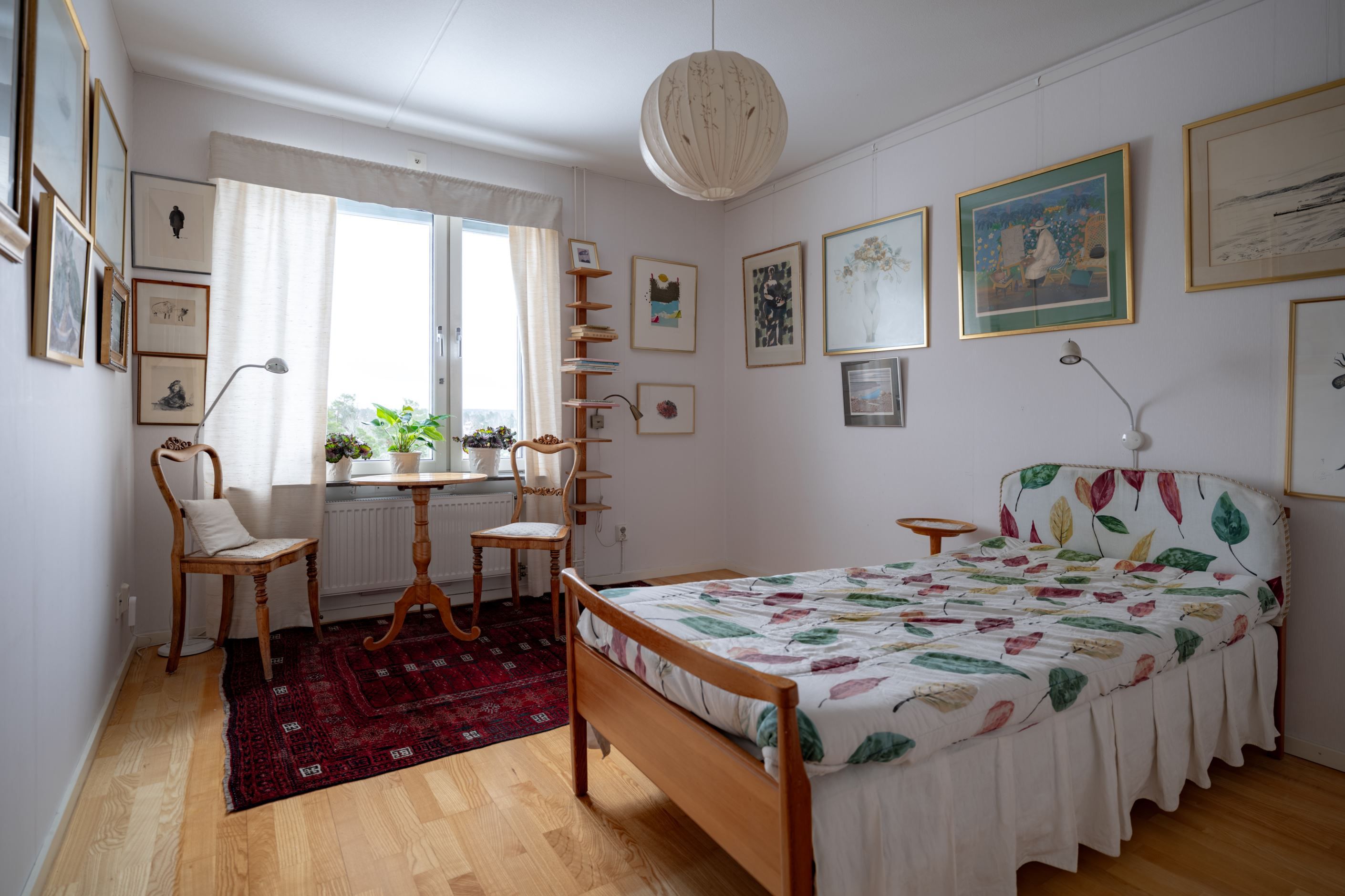 Det nuvarande sovrummet är rofyllt och utrustat med garderob, medan hallen erbjuder en praktisk och rymlig klädkammare. Badrummet är helkaklat med tvättmaskin och bra förvaringslösningar. Genomgående ljusa ytskikt, vackra trägolv och stilrena materialval skapar ett enhetligt och modernt intryck.