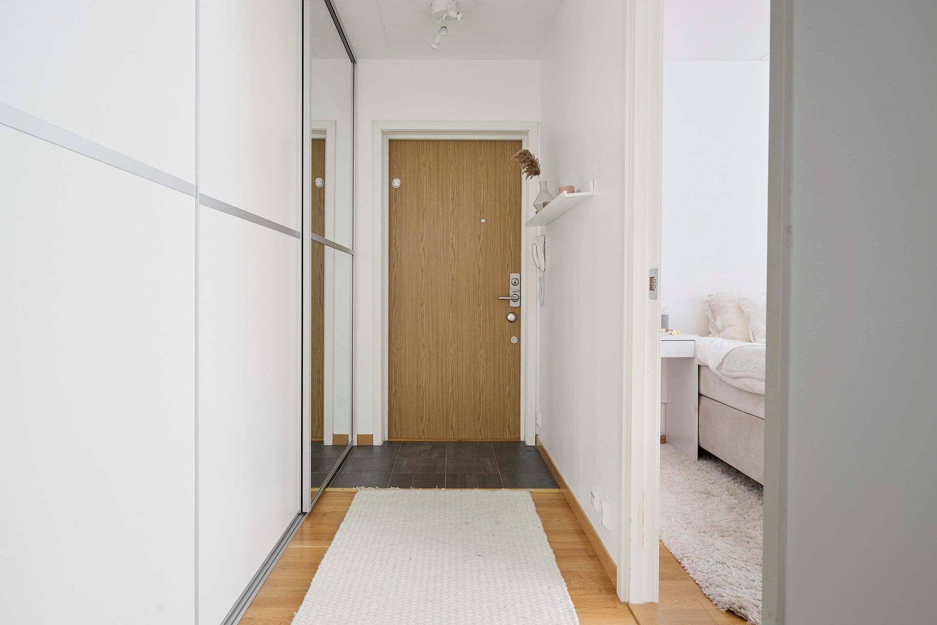 Lägenheten är genomgående i gott skick, kök med ljusa luckor och bänkskiva i trä. Öppen planlösning med matplats och vardagsrum med gott om utrymme för stort bord och soffgrupp.