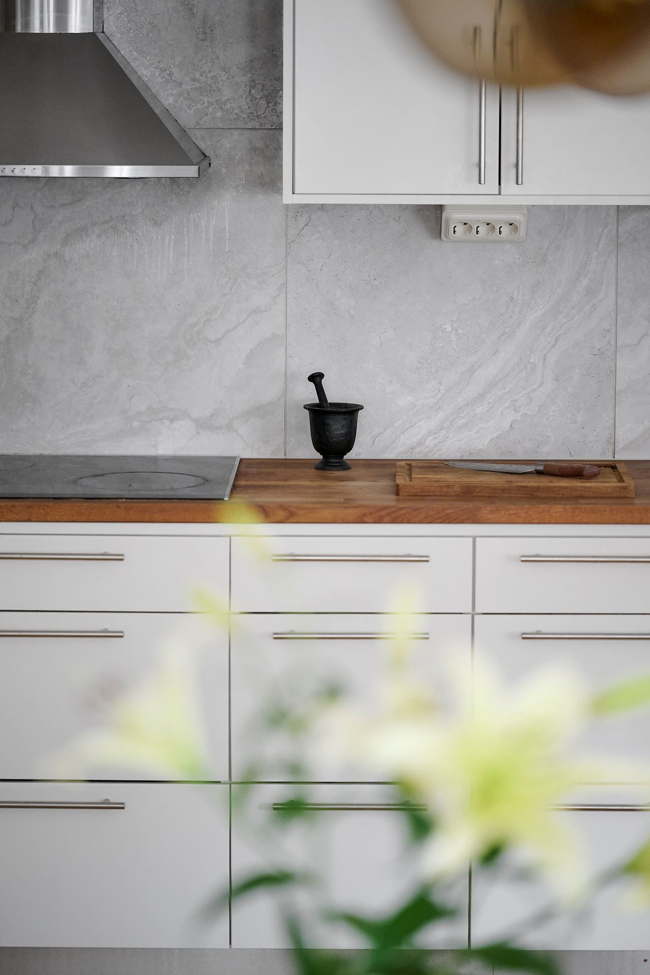 Lägenheten är genomgående i gott skick, kök med ljusa luckor och bänkskiva i trä. Öppen planlösning med matplats och vardagsrum med gott om utrymme för stort bord och soffgrupp.