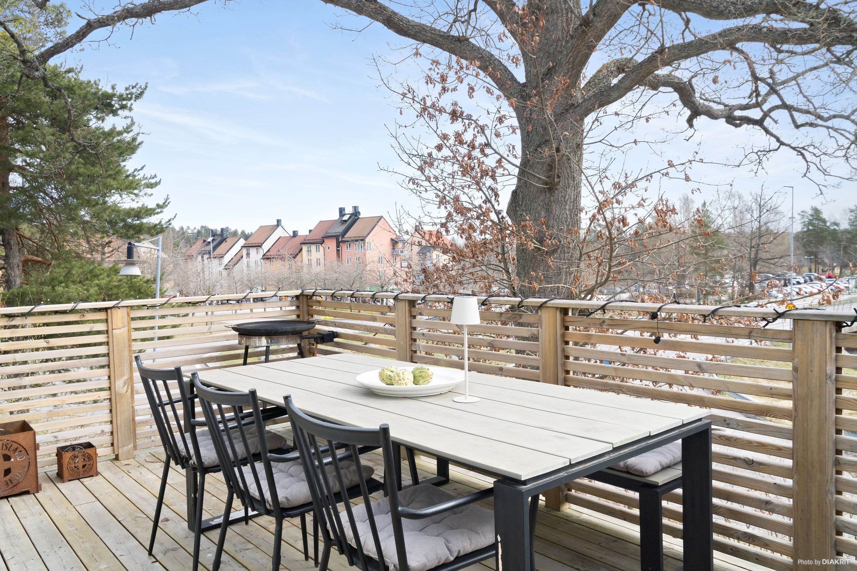 Läget är optimalt med Strandtorget bara någon minuts promenad bort, där du finner matbutik, café och restauranger, samt närhet till skolor, förskolor och goda kommunikationer med direktbussar till Gullmarsplan och Stockholm City. För den naturintresserade finns skärgård, naturreservat, badplatser och Alby friluftsområde inom bekvämt avstånd, liksom Tyresö Slott och Notholmen som erbjuder uppskattade utflyktsmål.