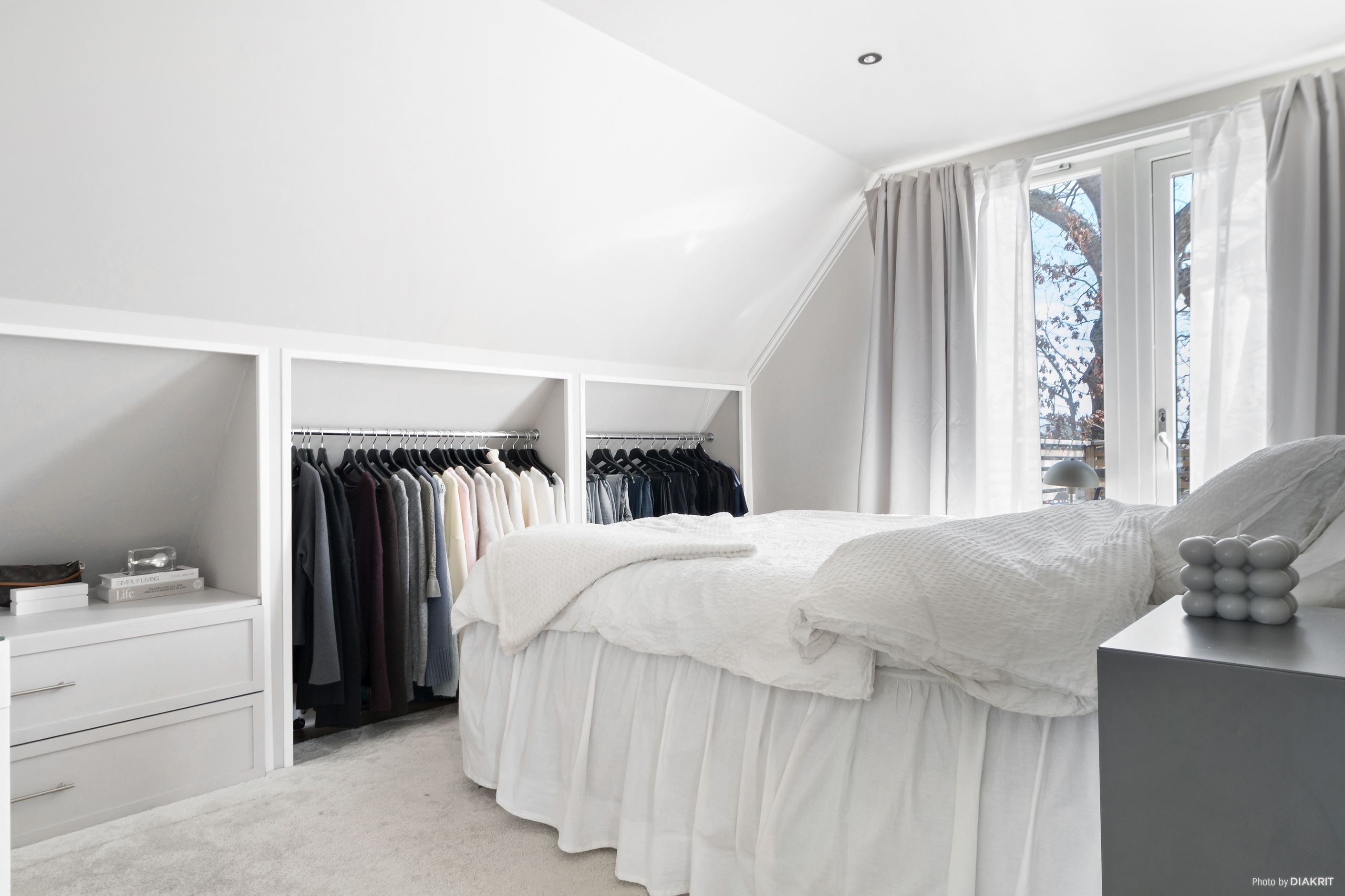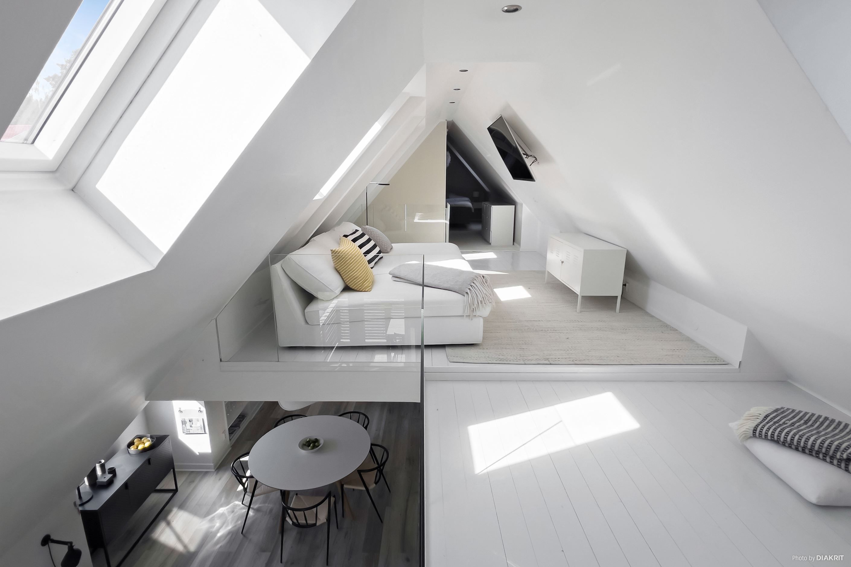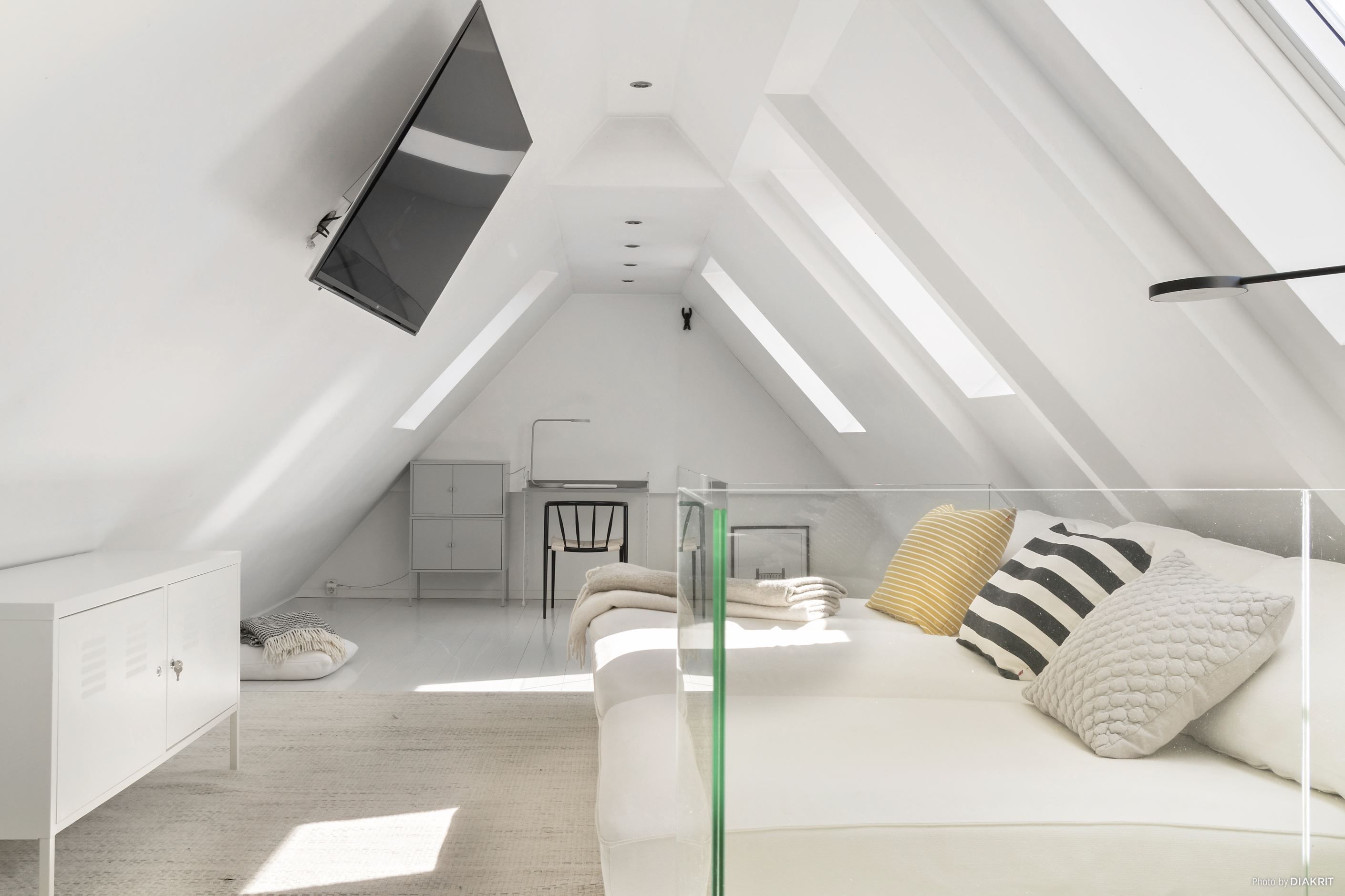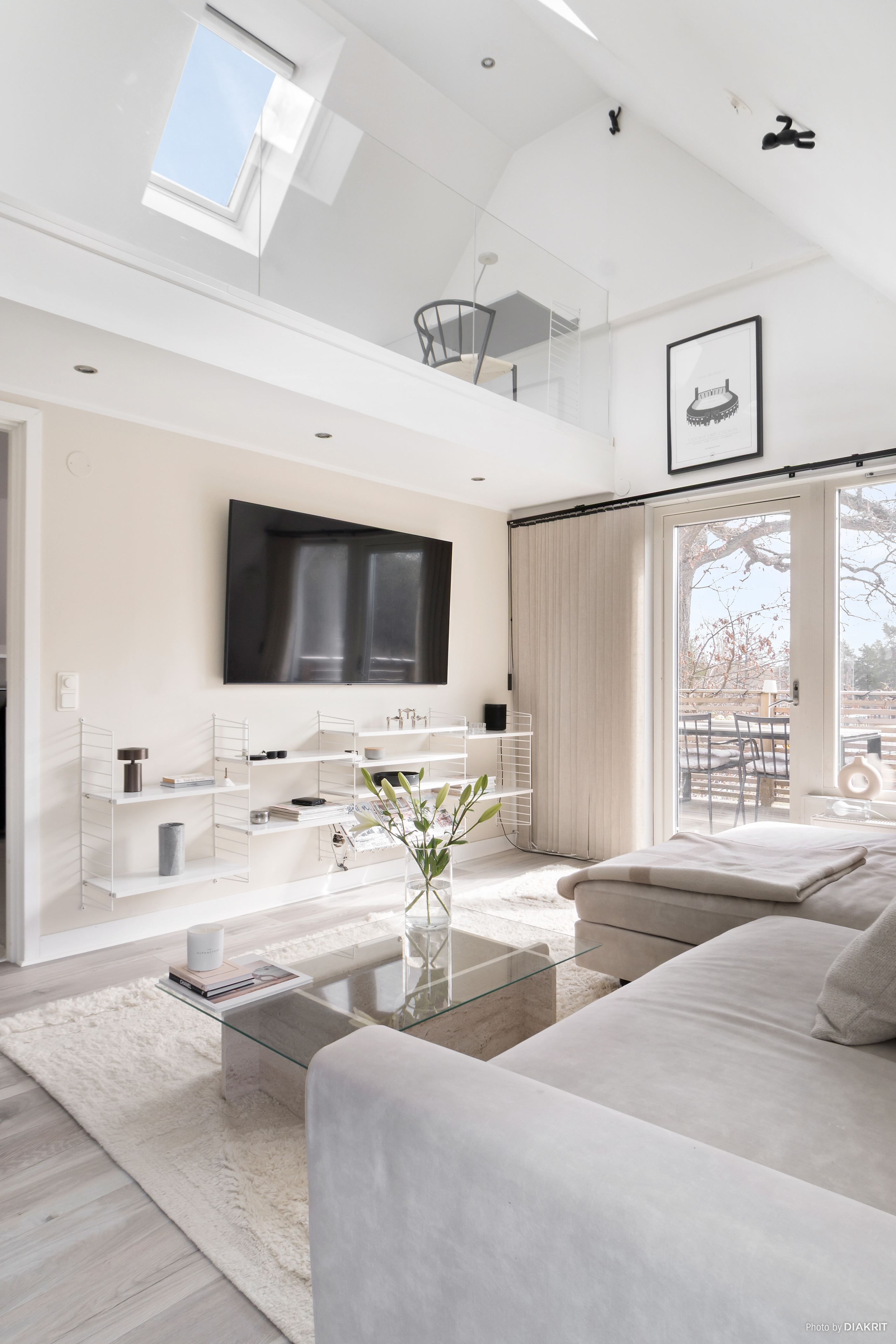 På entréplanet finns två rogivande sovrum med fint ljusinsläpp i skyddat läge. Vidare öppnar bostaden upp sig i ett stort och luftigt vardagsrum med härliga ljusflöden och en imponerande takhöjd som samspelar med loftplanet ovan. En trappa upp möts du av vindsvåningen med flexibla ytor som passar lika bra som allrum eller hemmakontor, samt ytterligare ett sovrum med tillhörande walk-in-closet. Till bostaden hör även en trivsam balkong med plats för både loungegrupp och matbord, och föreningen erbjuder gemensamma uteytor. Två tillhörande parkeringsplatser gör boendet både bekvämt och ekonomiskt fördelaktigt.