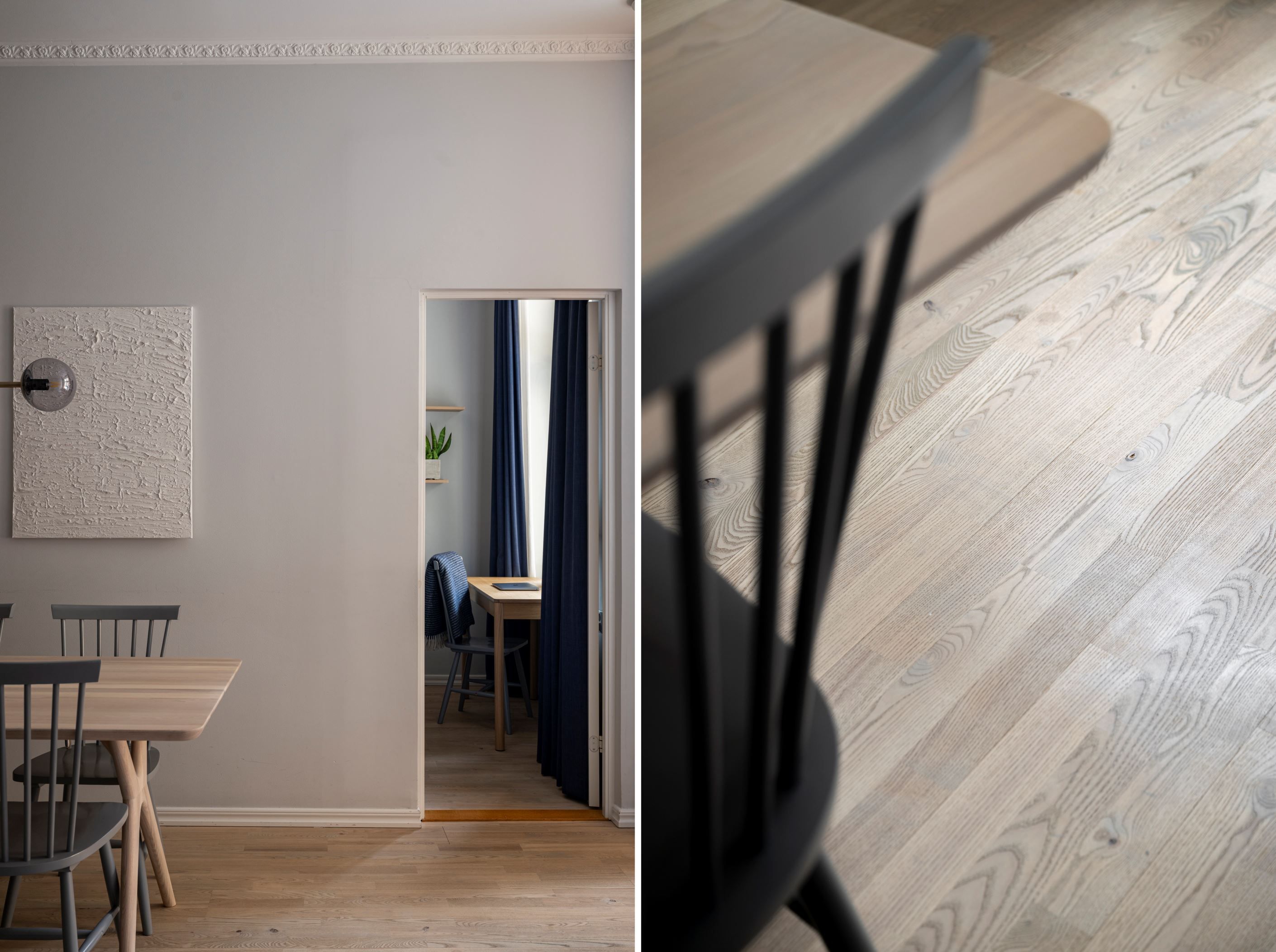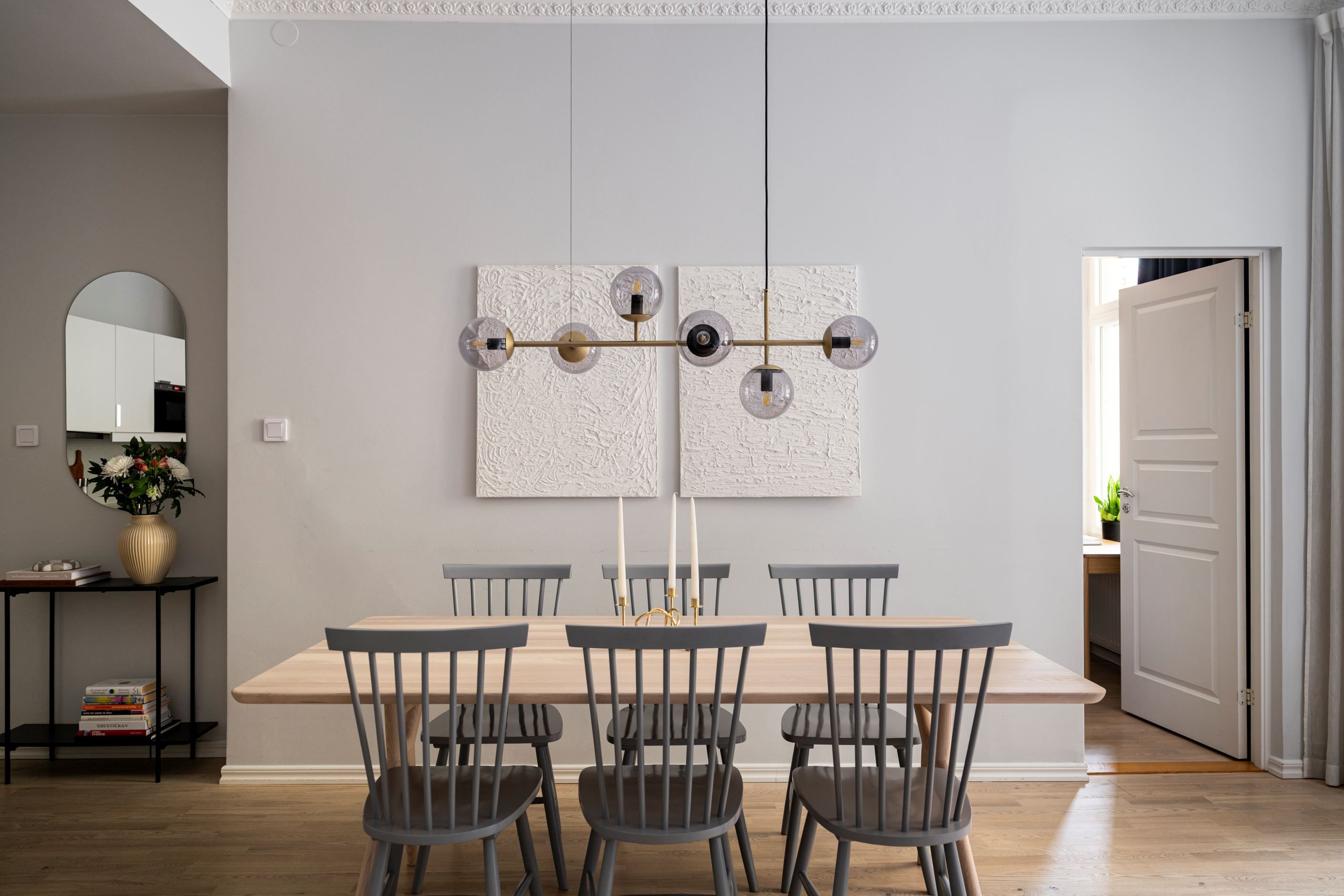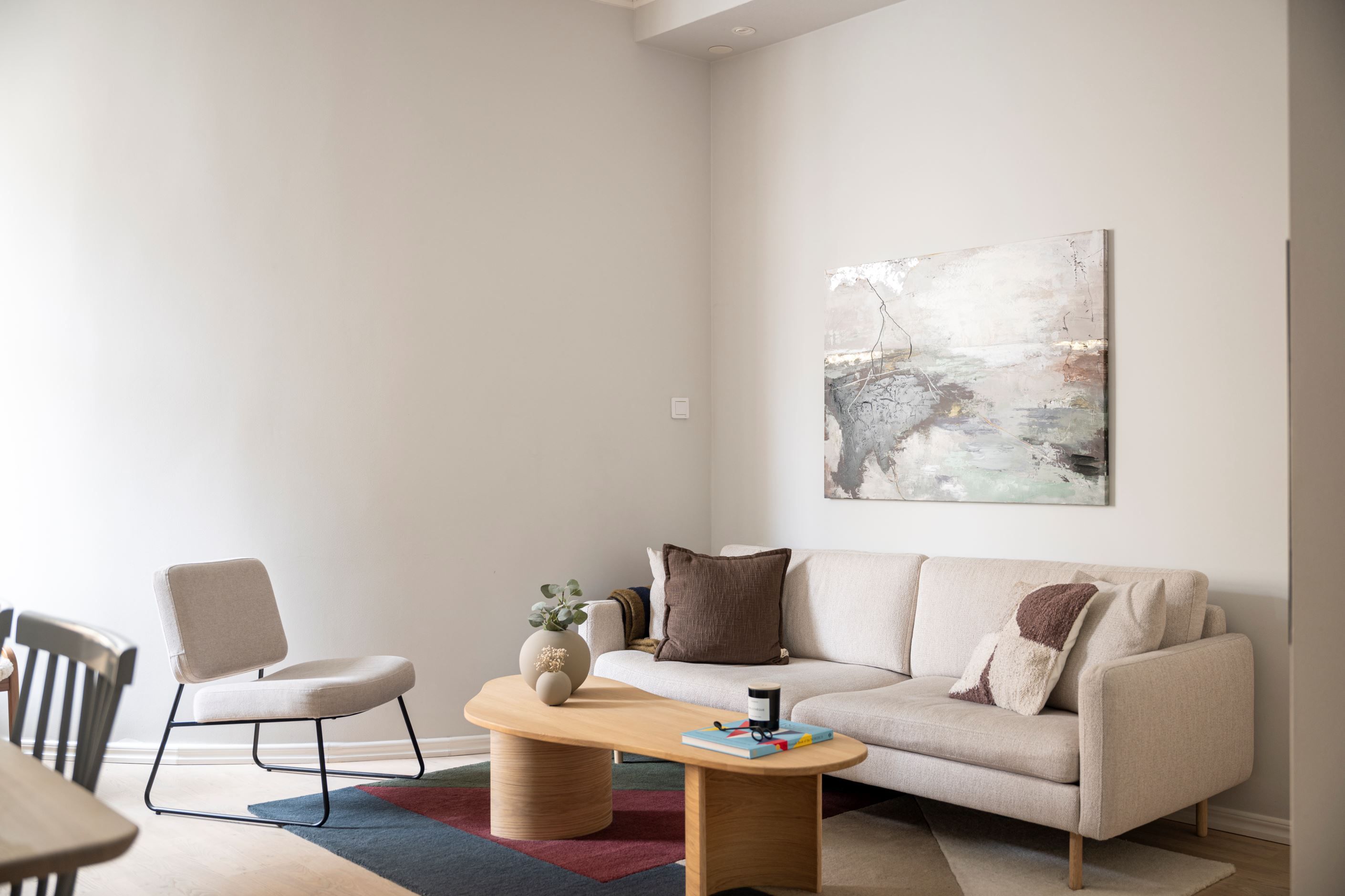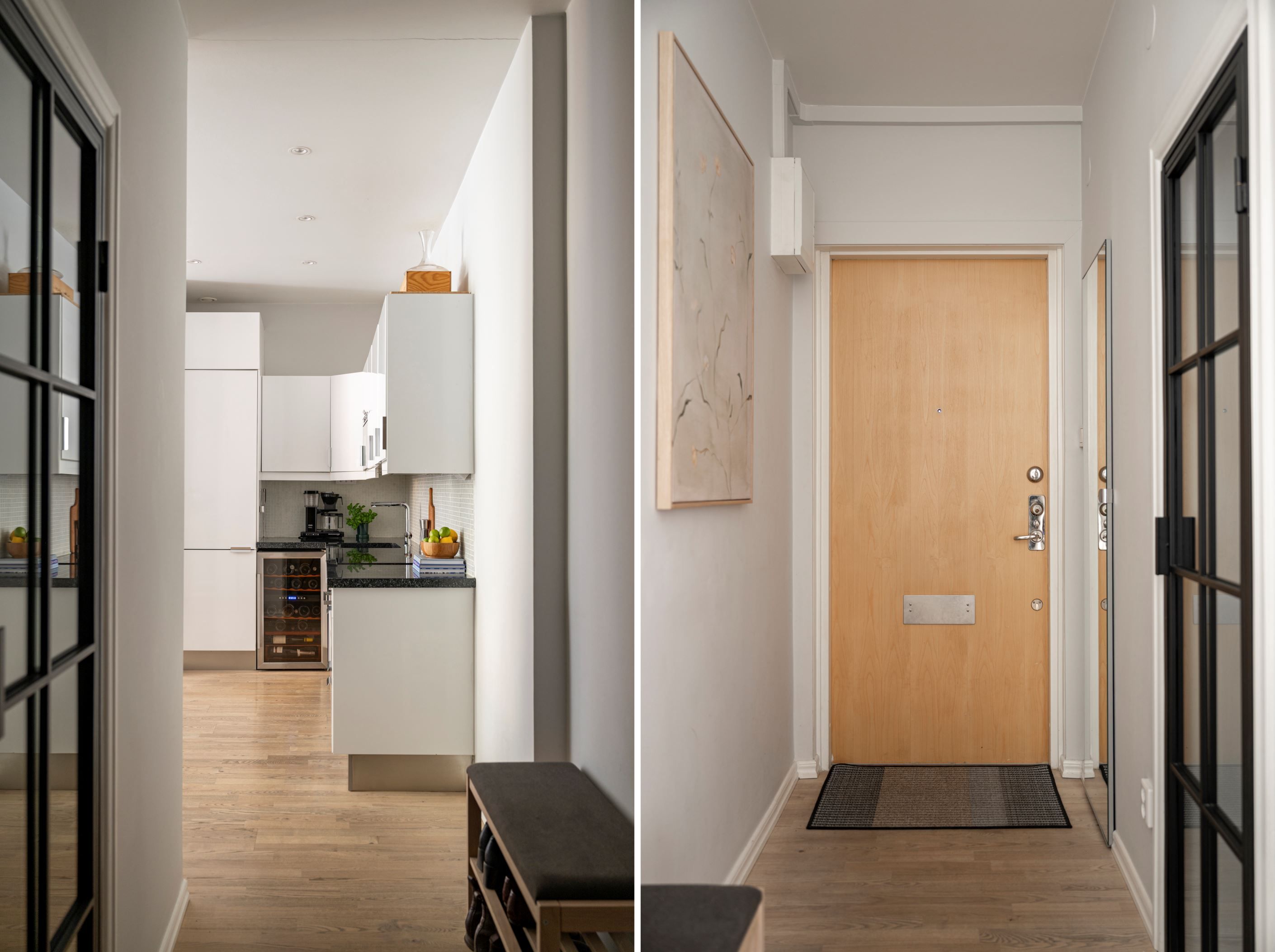 Lägenheten präglas av vackra originalattribut såsom generös takhöjd, fina golv och stora fönsterpartier som vetter mot en lugn och grönskande innergård och skapar ett fantastiskt ljus. Den genomtänkta planlösningen erbjuder öppna och sociala ytor mellan kök och vardagsrum – en perfekt miljö för både vardag och fest. Det stilrena köket är fullt utrustat med moderna vitvaror, inklusive diskmaskin och vinkyl, och bjuder in till matlagning och umgänge.