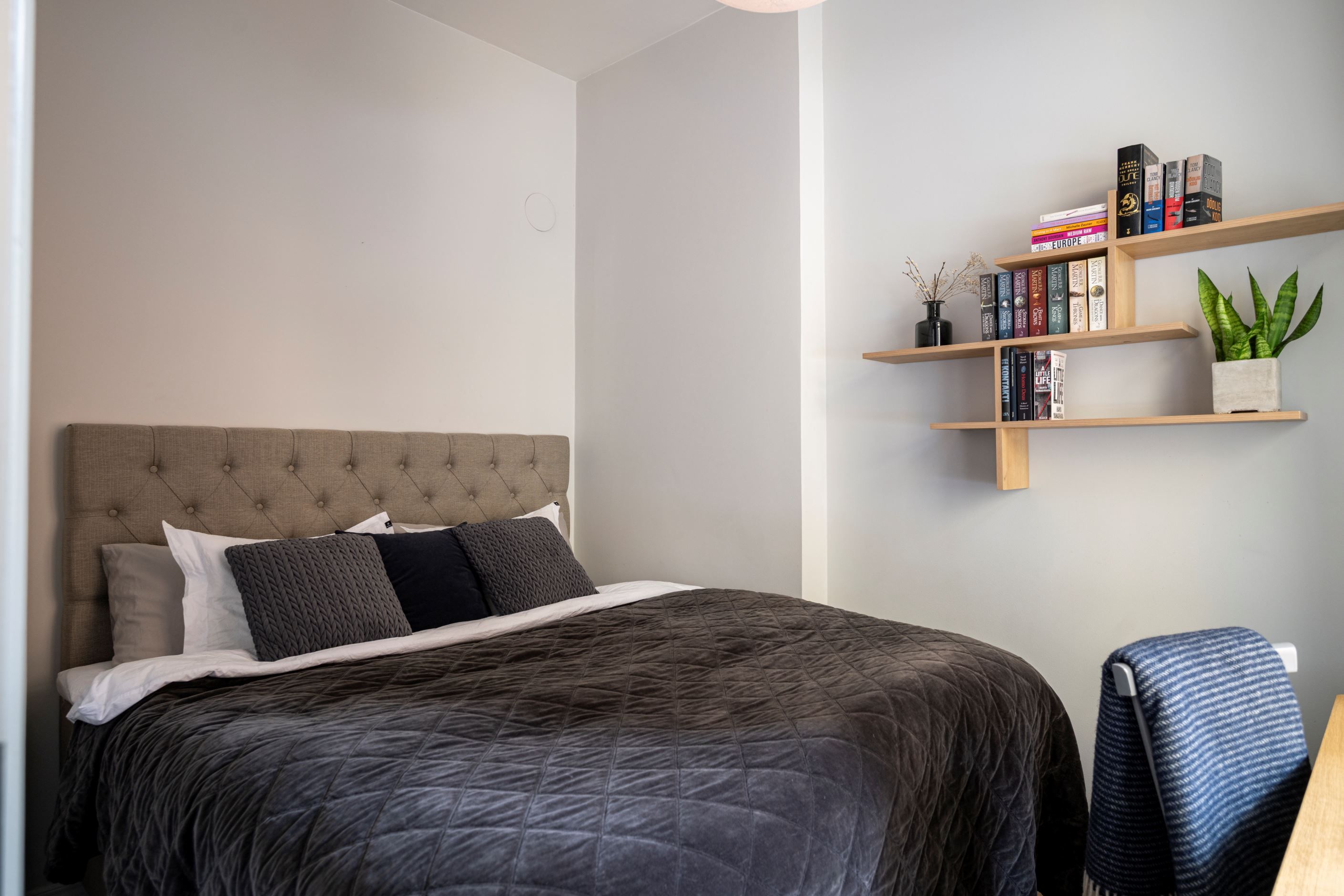 Här finns ett rofyllt master bedroom med fönster mot innergården samt en praktiskt inredd walk-in-closet som ger gott om förvaring. Det rymliga badrummet är smakfullt utformat och erbjuder plats för tvättmaskin.