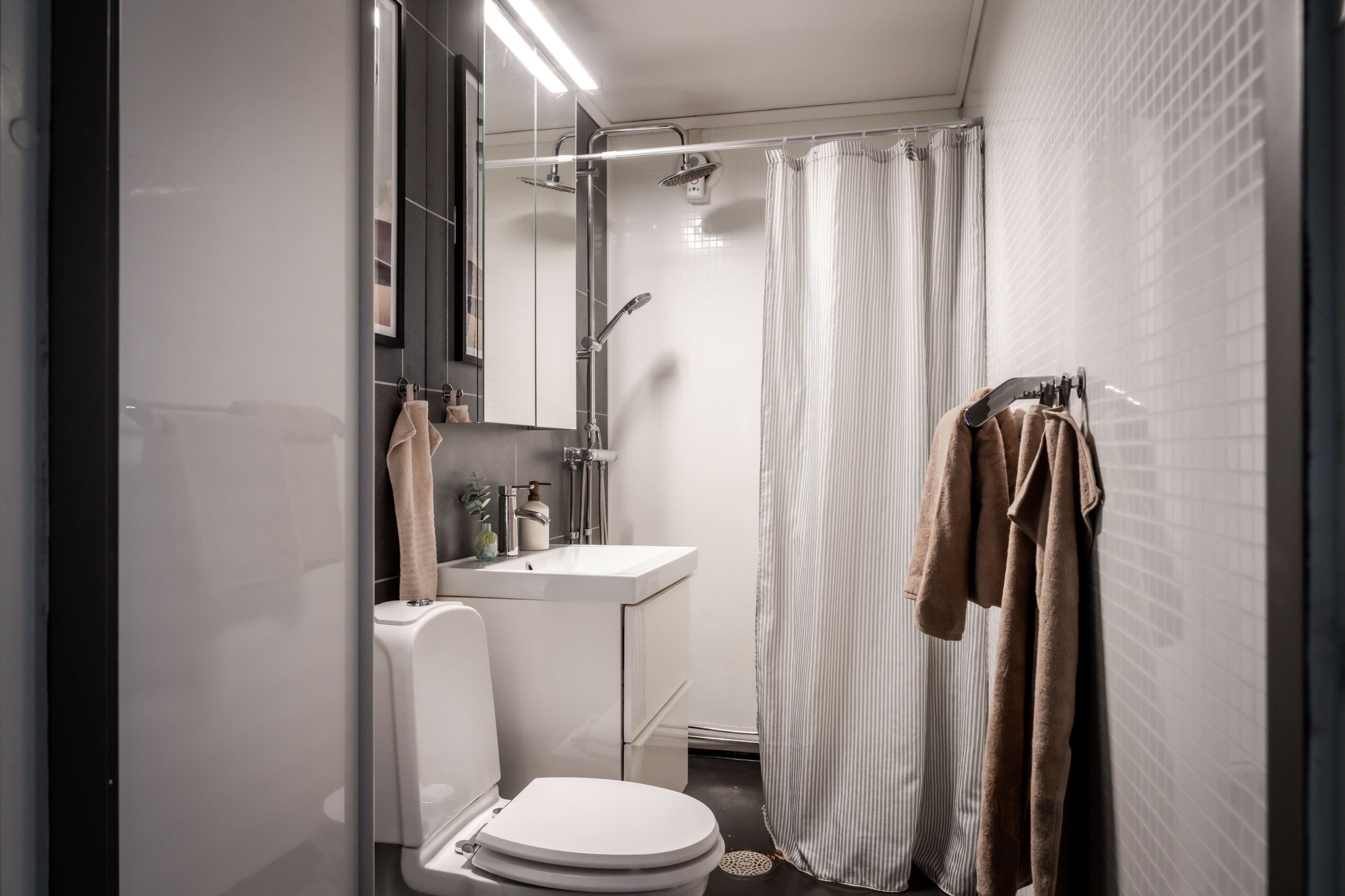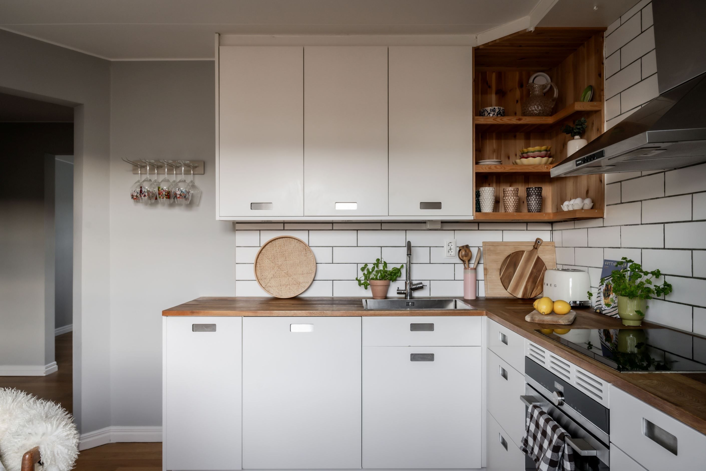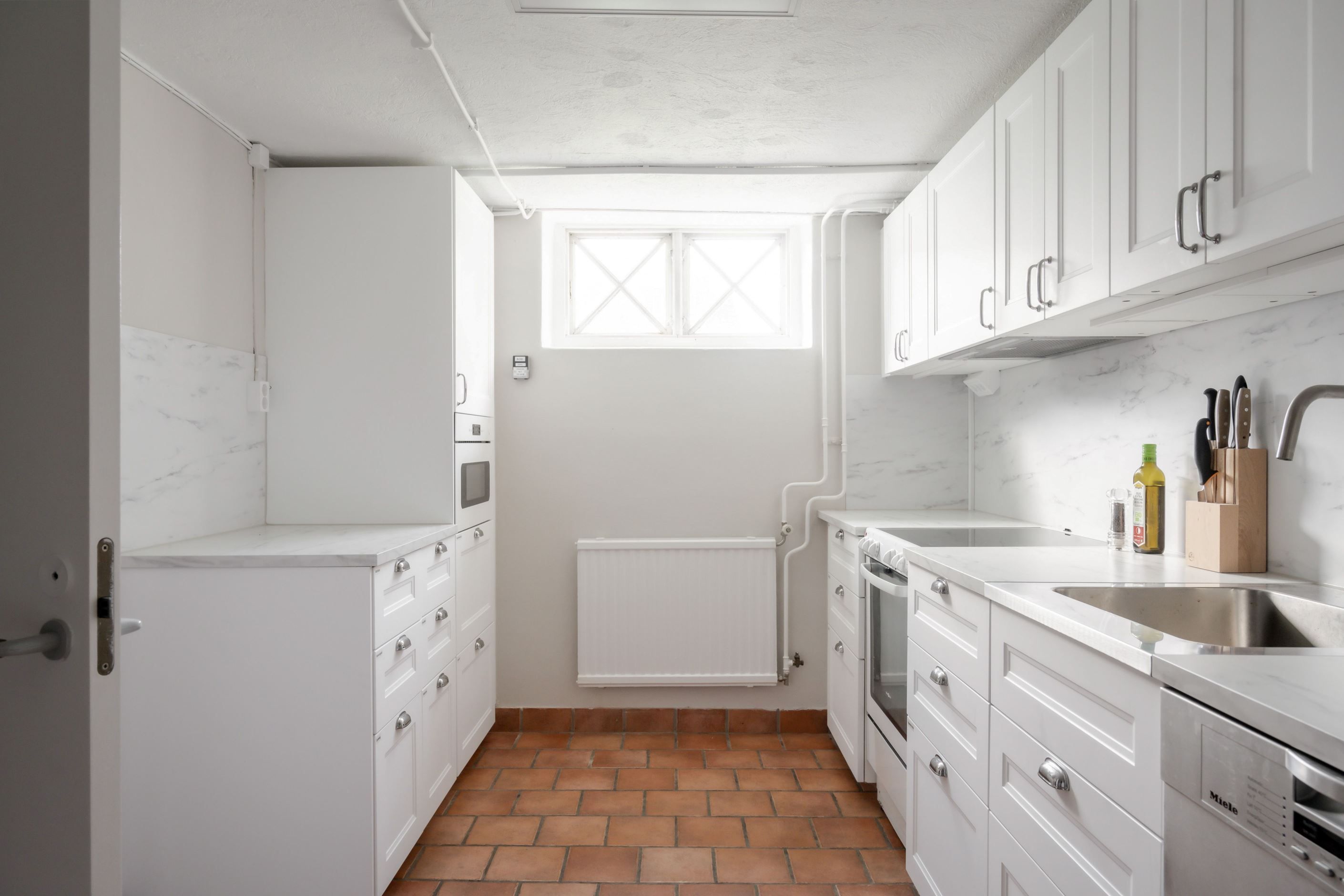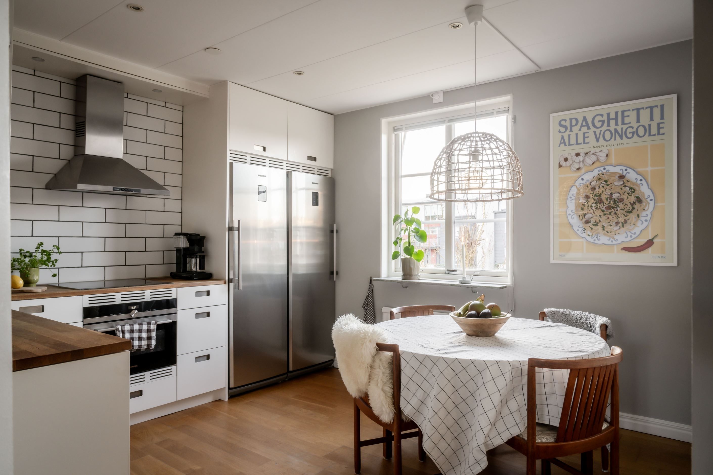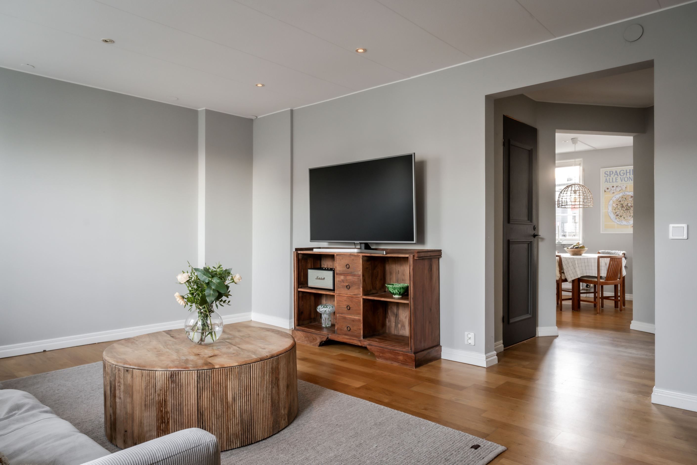 Planlösningen är genomtänkt med lättmöblerade ytor och ett naturligt samband mellan bostadens alla delar. Köket är tidlöst utformat med vita släta luckor, träbänkskiva och komplett maskinell utrustning, samtidigt som det finns plats för matgrupp intill fönster. Förvaringen är väl tillgodosedd genom en rymlig klädkammare i anslutning till sovrummet, och bostaden präglas i stort av ett väl omhändertaget och genomgående välhållet utförande. Badrummet är funktionellt utformat med bland annat dusch och kompletterar bostadens helhet på ett naturligt sätt.