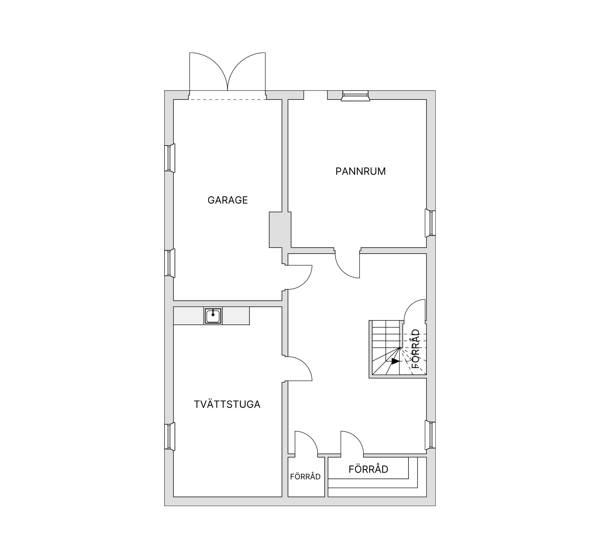 Källarplanet, med en takhöjd om cirka 2,1 meter, erbjuder stora och flexibla ytor. Här möts du av en rymlig hall, ett pannrum med en ny installerad bergvärmepump, garage med direktaccess, generös tvättstuga, matkällare och flera extra förvaringsutrymmen – idealiskt för både hobby och förvaring.
