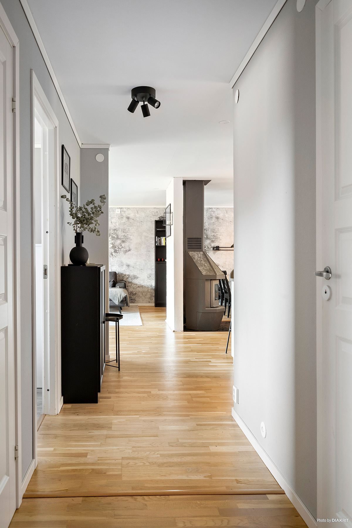 På Villavägen 7 i Eket ligger denna rymliga och renoverade enplansvilla i vinkel med stort vidbyggt garage, trevlig trädgård och inglasat uterum. Villan har blivit utbyggd och renoverad under åren med både stora som små uppdateringar gjorda. Ytan om 148 kvm är fördelat på 6 rum och kök varav 4 är sovrum. Entréhallen erbjuder gott om förvaring i garderober och plats för avhängning. Vidare in ligger kök och vardagsrum i halvöppen planlösning med en härlig kamin i mitten som kompletterar det vattenburna systemet bra under de kallare månaderna. Köket och vardagsrummet blev totalrenoverat 2024 med nya ytskikt och plejdbelysning. Från köket kommer man också direkt ut till uterummet med öppen spis. Vidare in ligger två sovrum, klädkammare och badrummet med kakel & klinker. Här finns även separat tvättstuga med gott om plats för förvaring och torkning samt en gästtoalett. Vinkeldelen av huset är ett trappsteg ner med två sovrum och ett allrum med egen entré och nedgång till mindre källare. Med den egna entrén kan detta bli en perfekt del för gäster, det egna företaget eller för de äldre barnen. Här finns också pannrum med ett mindre badrum. Här ges helt enkelt plats för den stora familjen eller den som önskar ett större hus på ett plan. Möjligheterna är många! Tomten är lättskött med gräsmatta på baksidan samt ett trädgårdsförråd och växthus. Här ramas trädgården in av slänten mot vägen och ger en lummig känsla med träden och murgrönan på sommarhalvåret. Välkomna att anmäla ert intresse!
