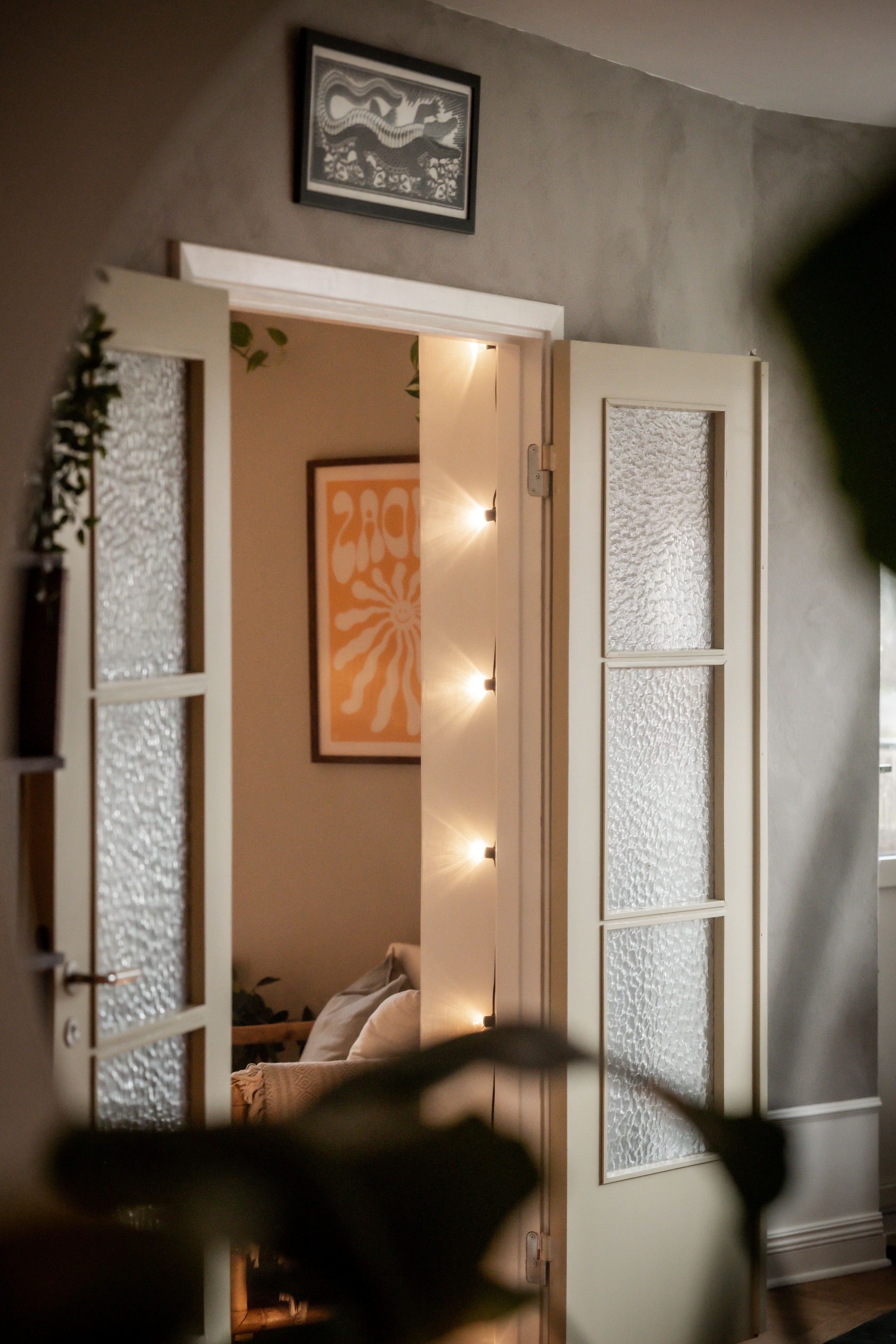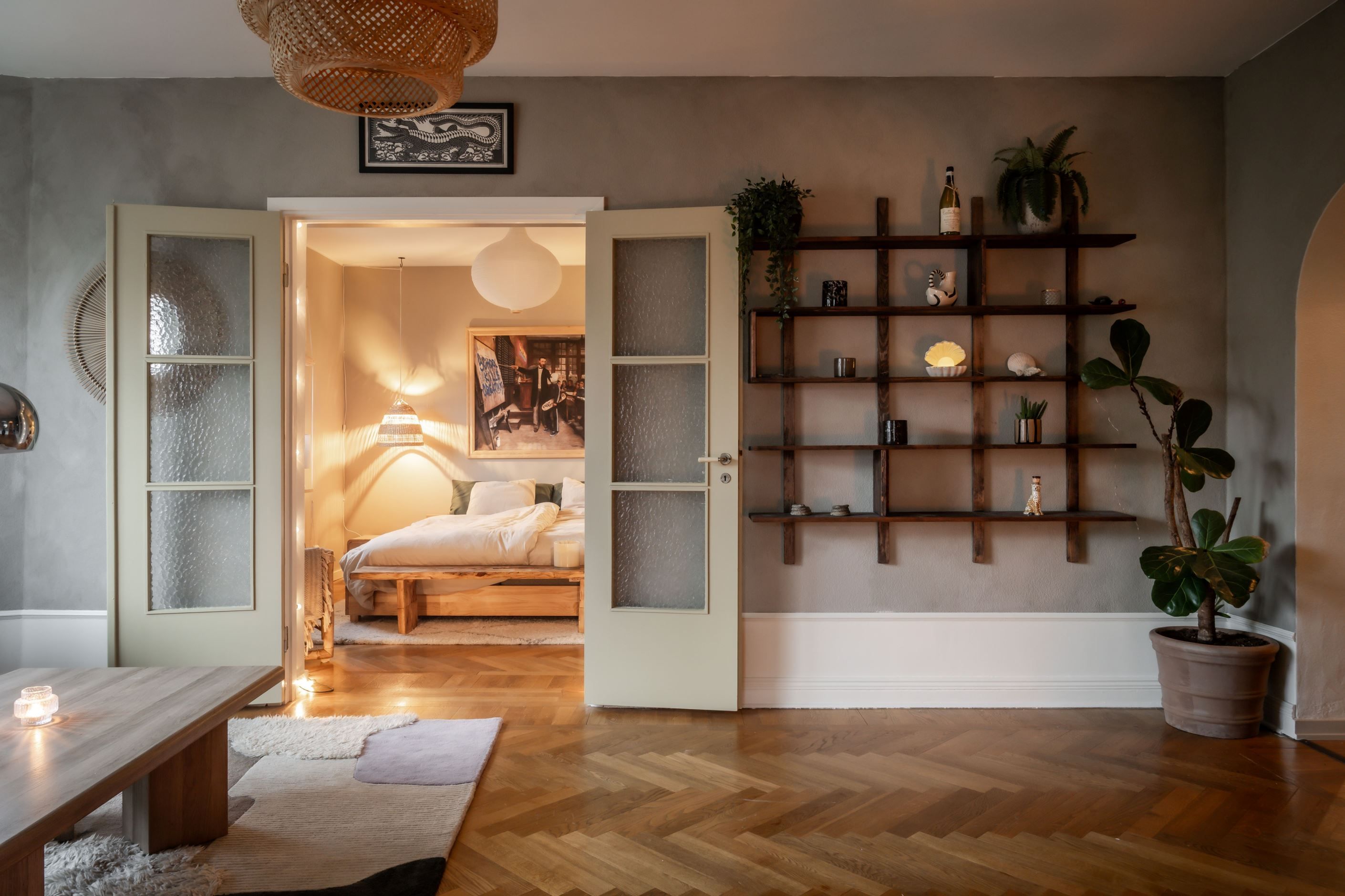 Planlösningen ger gott om plats för umgänge, med ett stort vardagsrum som pryds av en elegant fiskbensparkett och en eldningsbar öppen spis. Vardagsrummet karaktäriseras dessutom av charmiga dubbeldörrar med glaspartier samt ett stort valv som förstärker bostadens klassiska uttryck. Den västvända balkongen erbjuder en behaglig plats där eftermiddagssolen dröjer sig kvar.