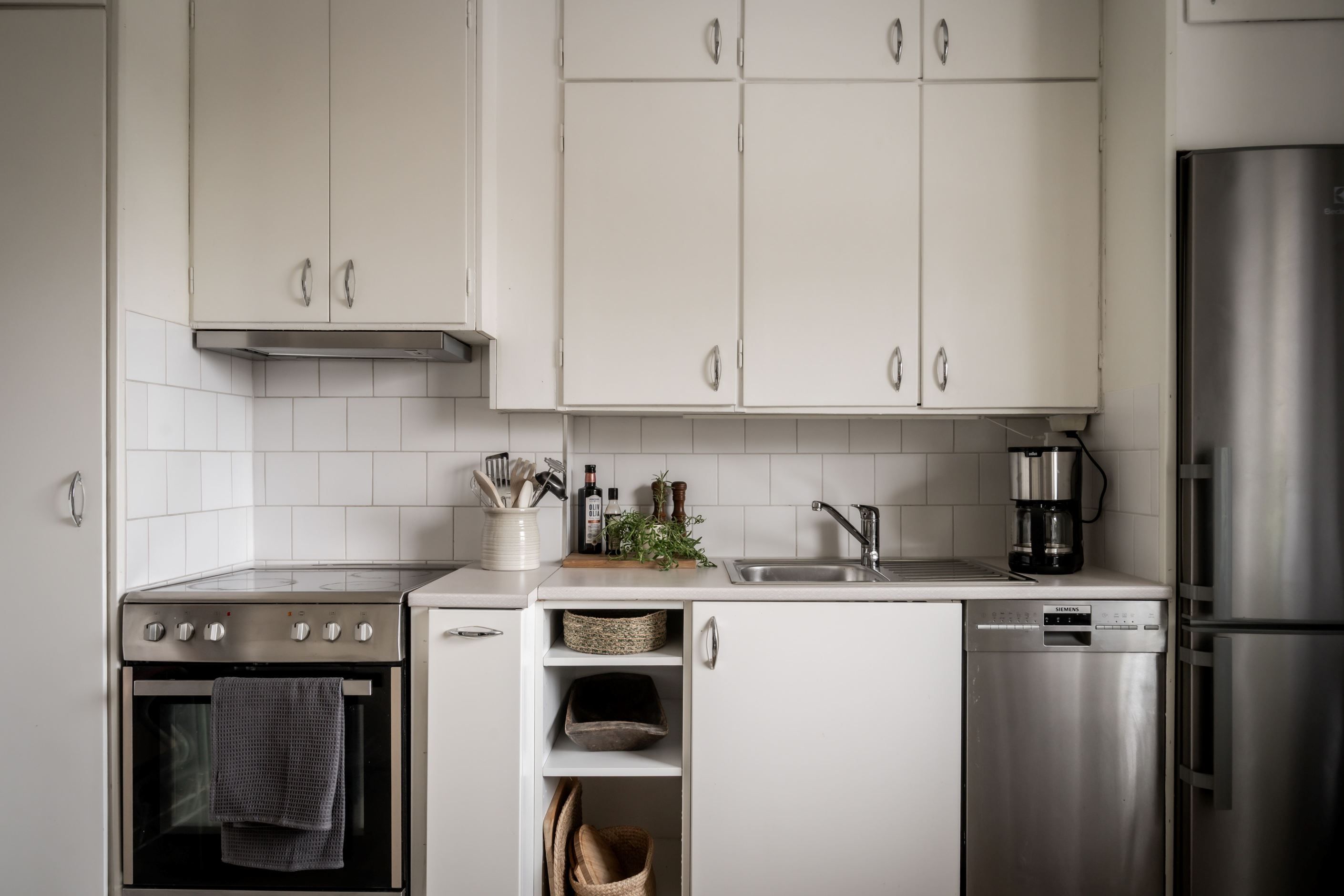 Vindsförråd för extra förvaring finns en trappa upp. Tvättstuga, cykelförråd och matkällare finner ni på källarplan.