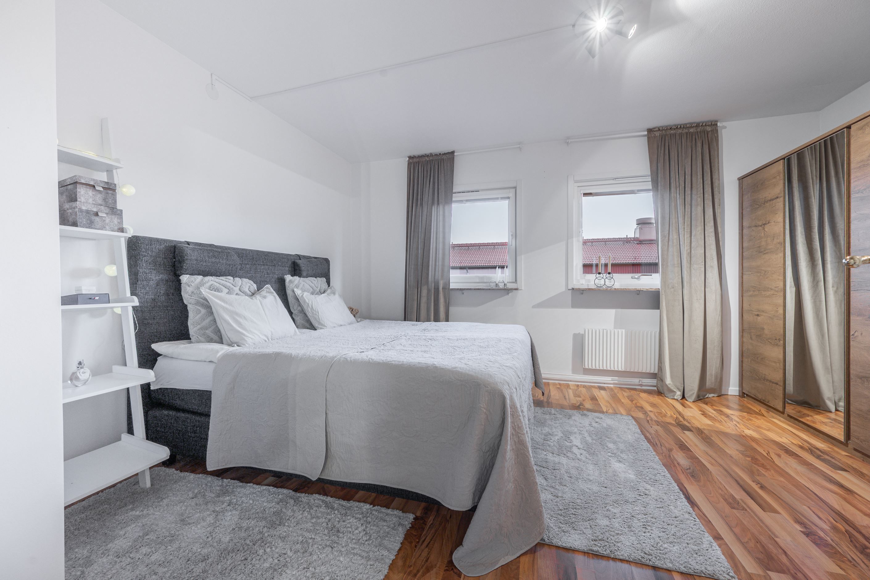 Denna bostad är smakligt renoverad med moderna materialval där ni välkomnas direkt av en rymlig hall med goda förvaringsmöjligheter. I anslutning med hallen finner ni ett rymligt vardagsrum där ni kan samla hela sällskapet och även når ut till den rofyllda balkongen i sydväst läge. Längre in finner ni ett stilrent nyrenoverat kök med gott om arbetsytor och rymligt plats för matbord. Dessutom hittar ni ett mysigt sovrum intill. Vidare till övervåningen finner ni två stora sovrum och ett påkostat badrum med snygga detaljer.