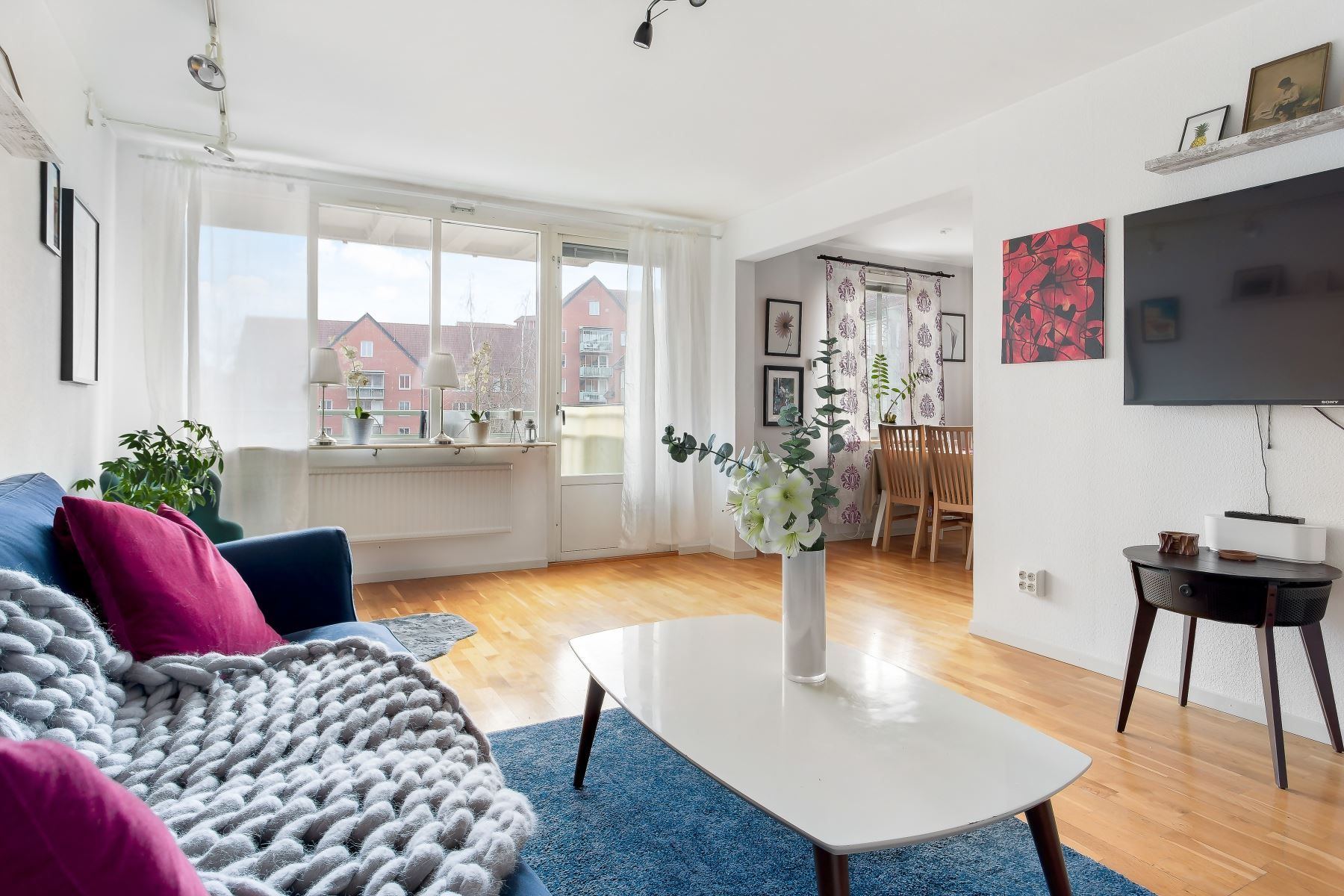 Bostaden bjuder på generösa ljusinsläpp samt en tilltalande planlösning med delvis öppen yta mellan vardagsrum och kök med gott om plats för ett större matbord. Genomgående fräscha ytskikt i de väldisponerade rummen med mycket goda förvaringsmöjligheter i både sovrum och hall.